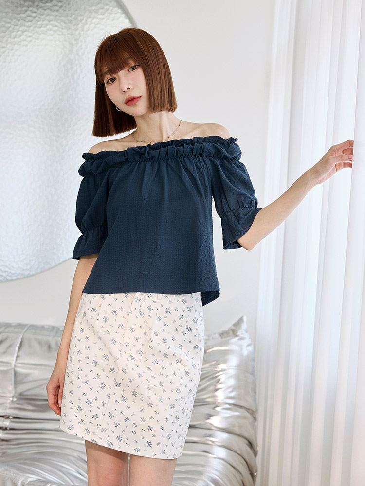 Product Feature: โ Features a versatile neckline that can be worn as a round neck or off-shoulder style. โ Made from textured fabric for an elevated look. โ Designed with an elastic neckline for a flexible fit.