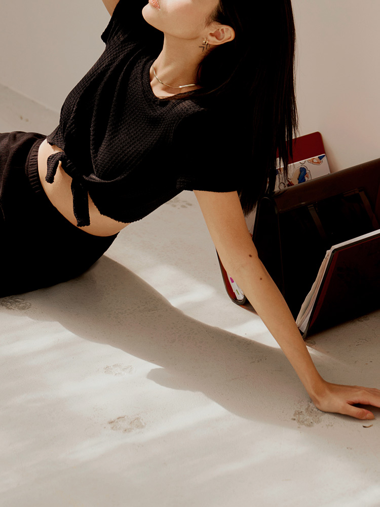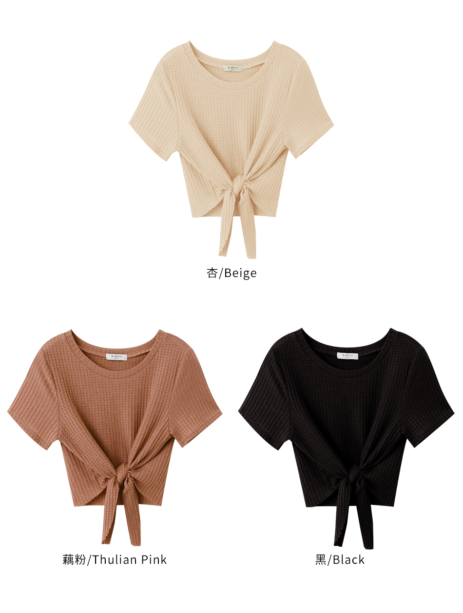 Waffle Knit Tie-Front Crop Top