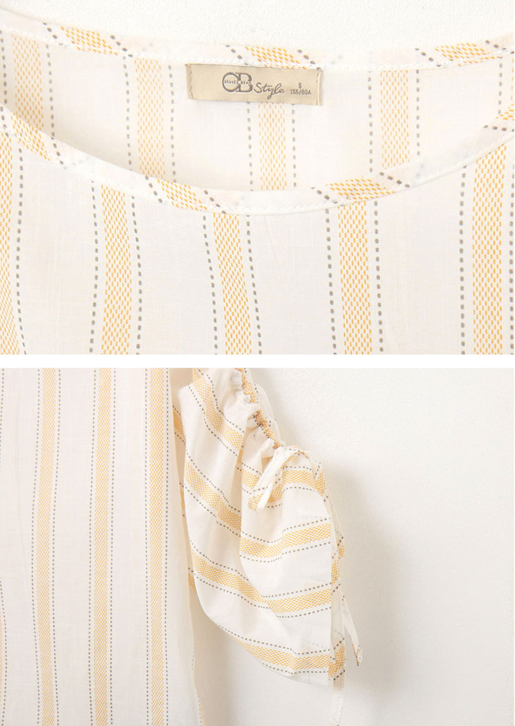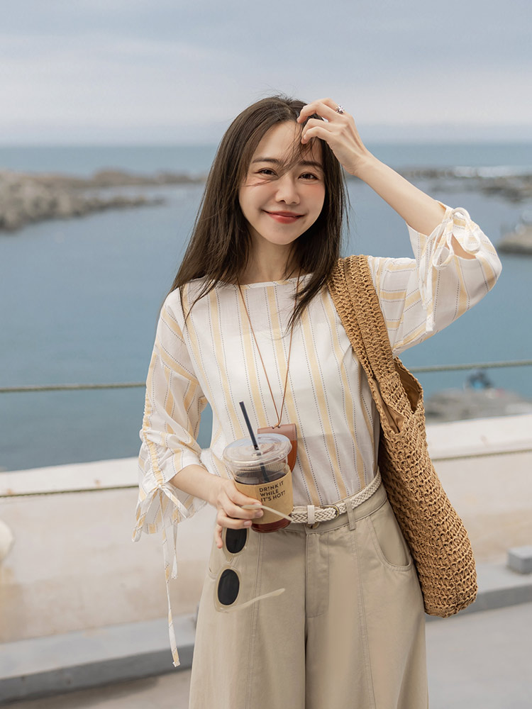 Product Feature: โ Crafted from breathable, high-cotton fabric for gentle comfort. โ Features a flattering 3/4 sleeve with adjustable drawstring detail. โ Designed with a striped pattern for added visual appeal.
