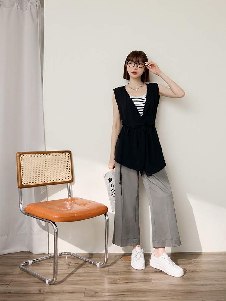 Product Feature: โ Crafted from lightweight, breathable textured fabric. โ Features an adjustable, detachable tie for a custom fit. โ Designed with an irregular lapel. โ Tailored in a flattering, slim-fit silhouette.