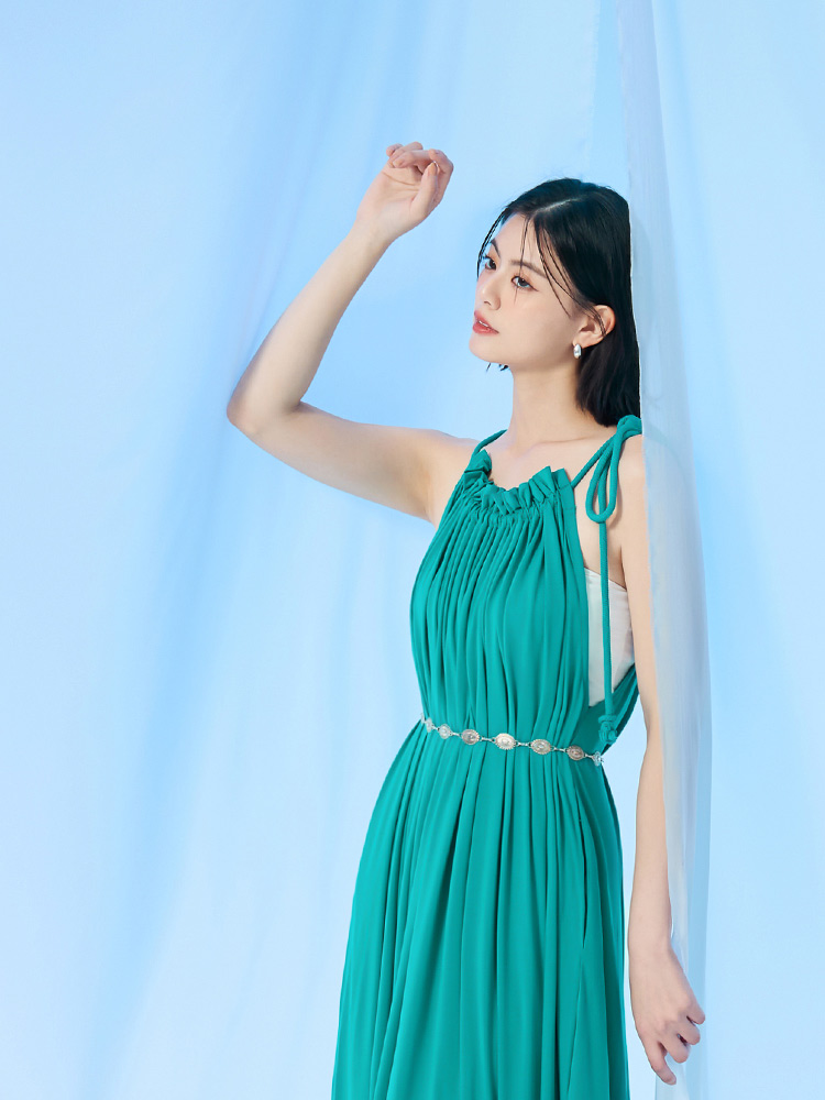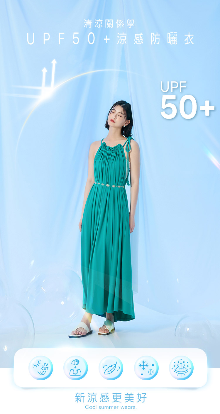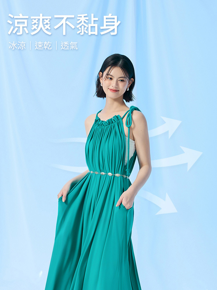 Product Feature: โ Features cooling, breathable ice silk fabric โ Adjustable tie straps for a perfect fit โ Designed with a flattering, flowing maxi skirt โ Offers sun protection in a lightweight design