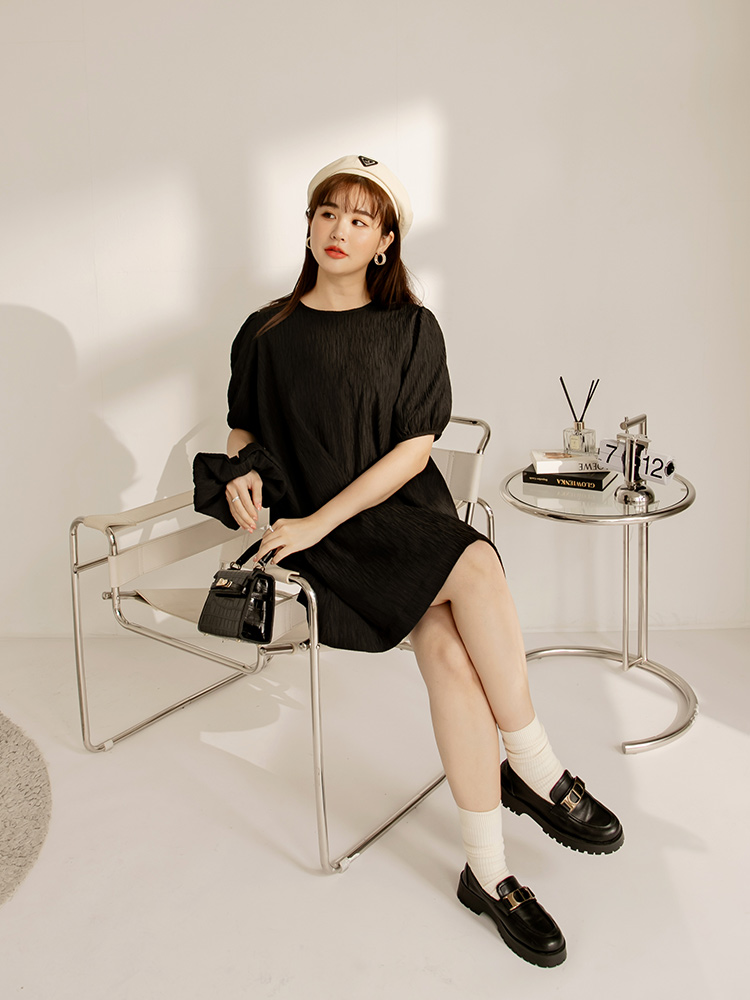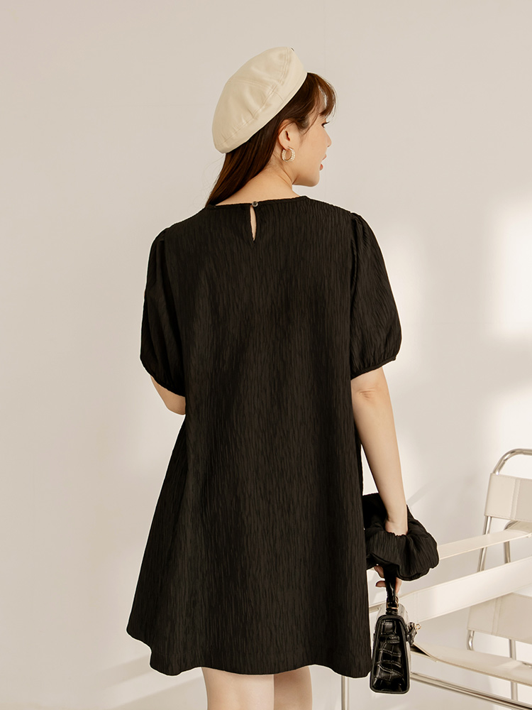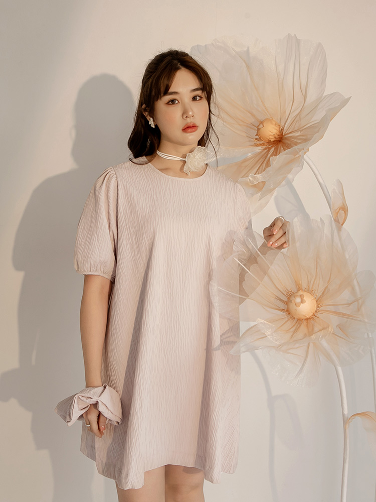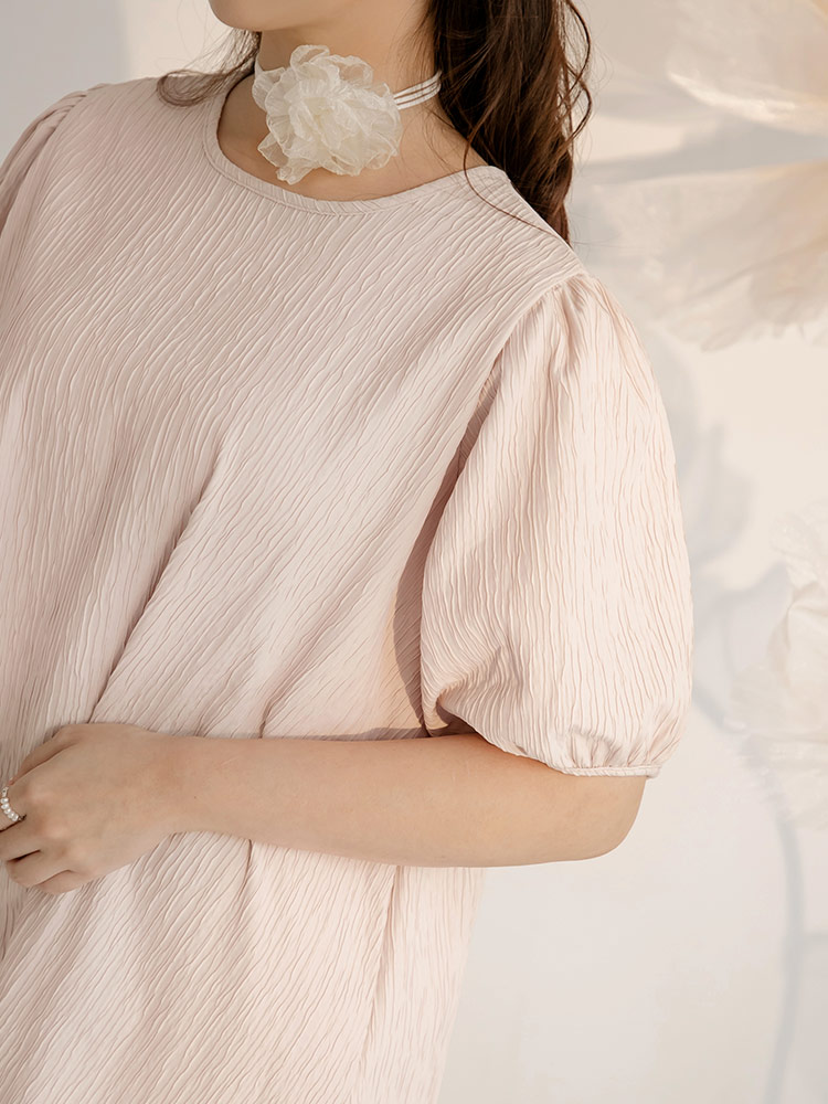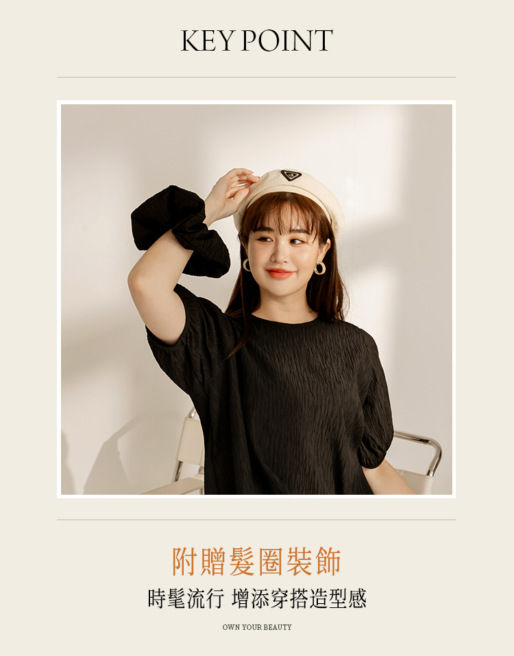 Product Feature: โ Crafted from a finely textured fabric. โ Features flattering puff sleeves. โ Includes a matching hair tie to complete the look.