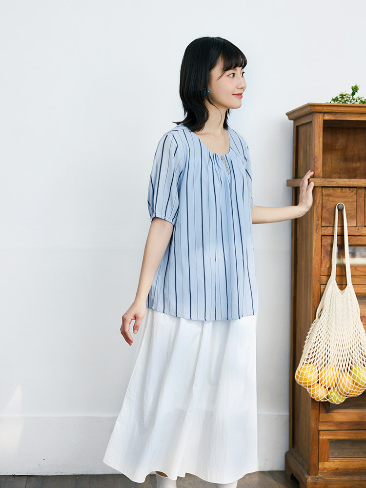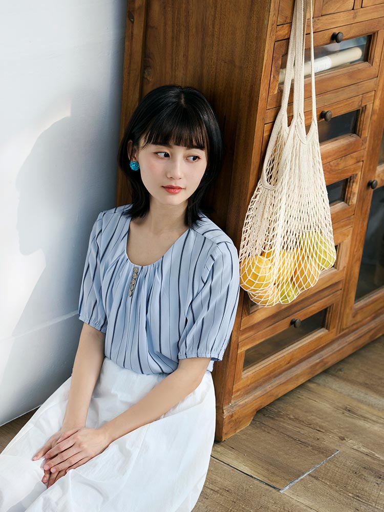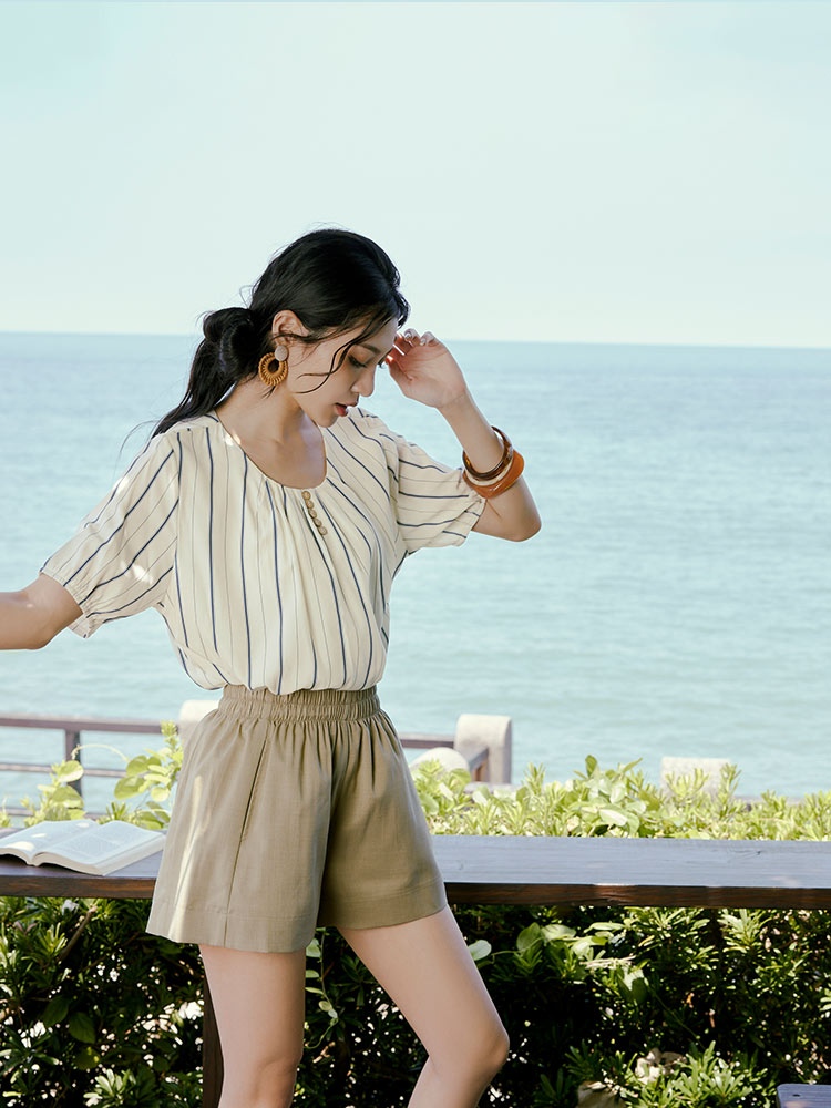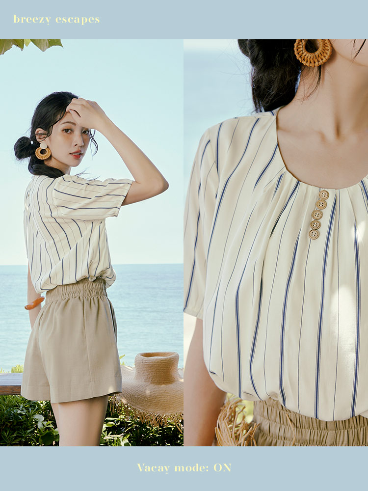 Striped Top with Wooden Buttons