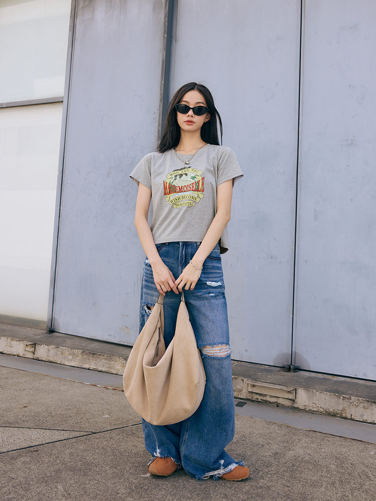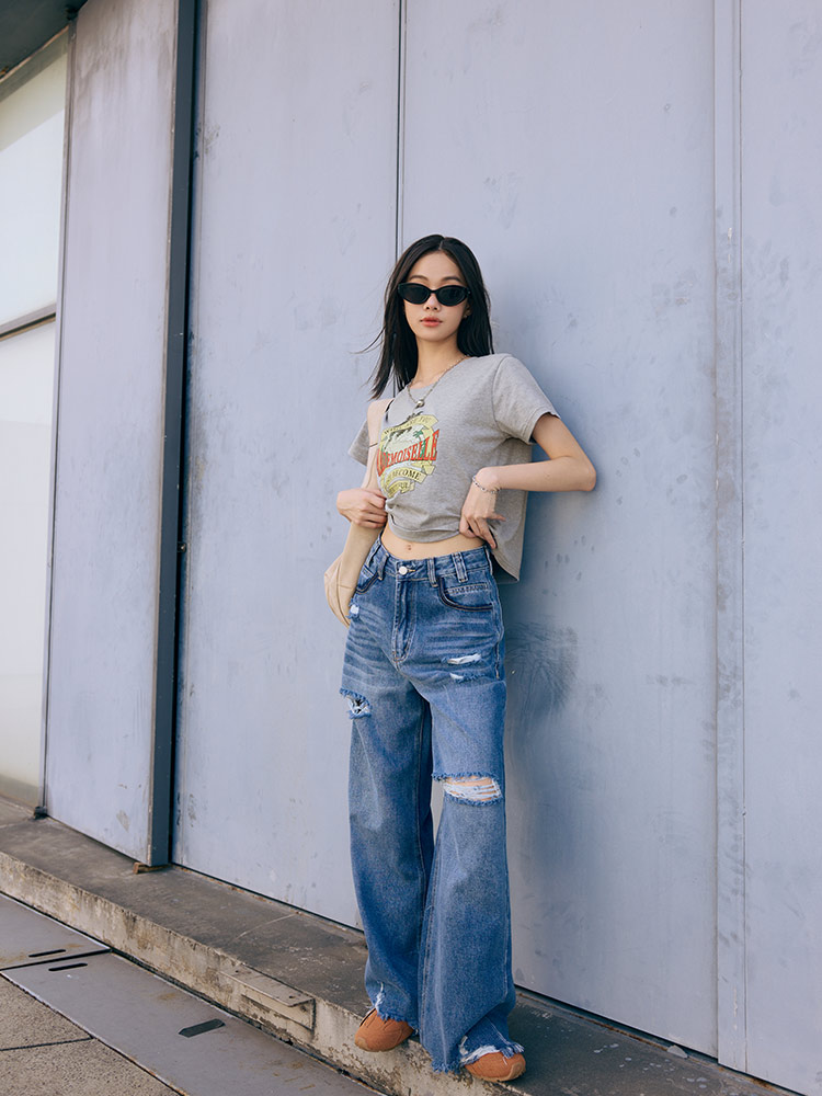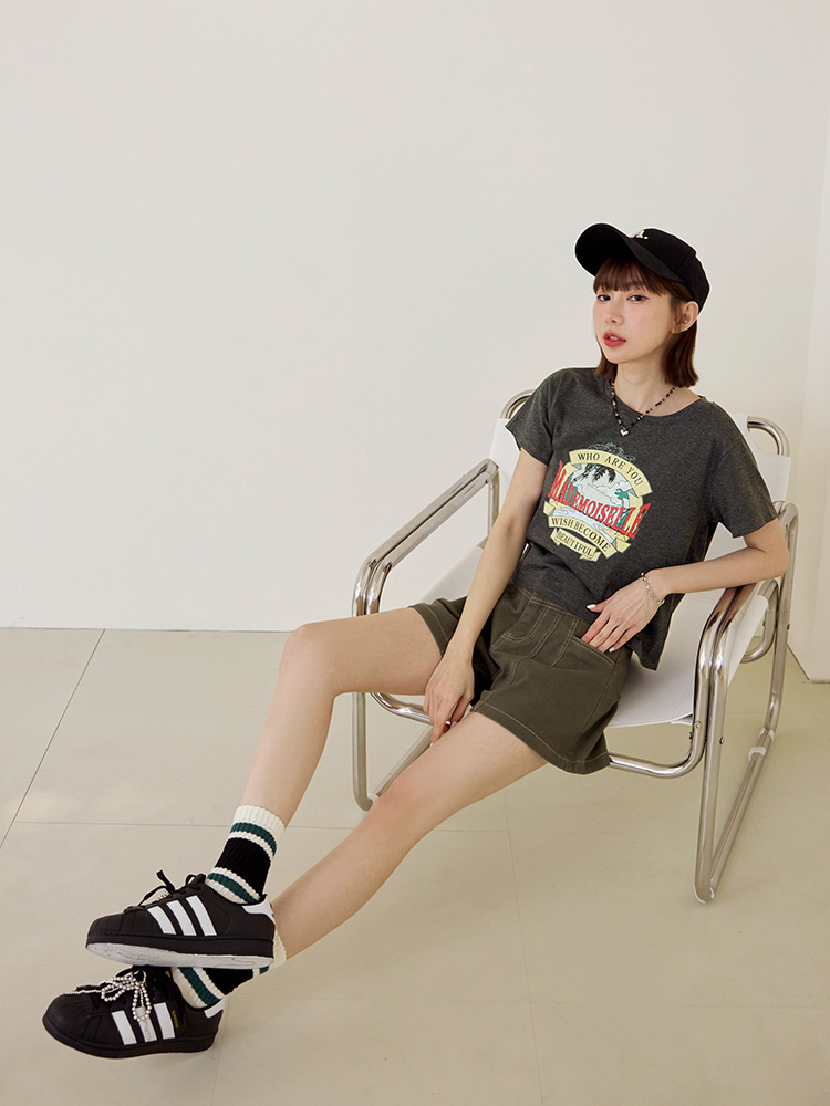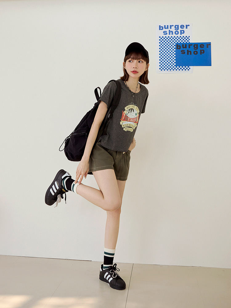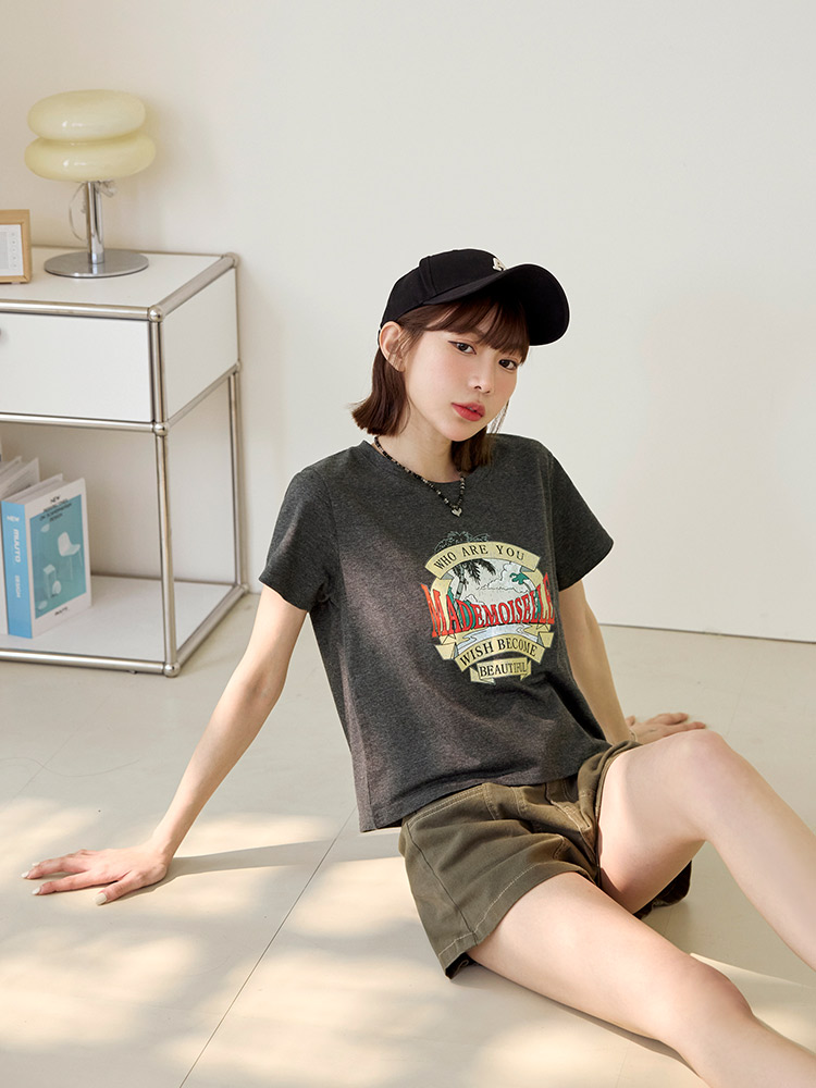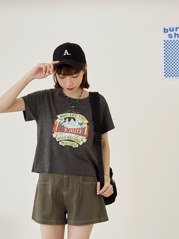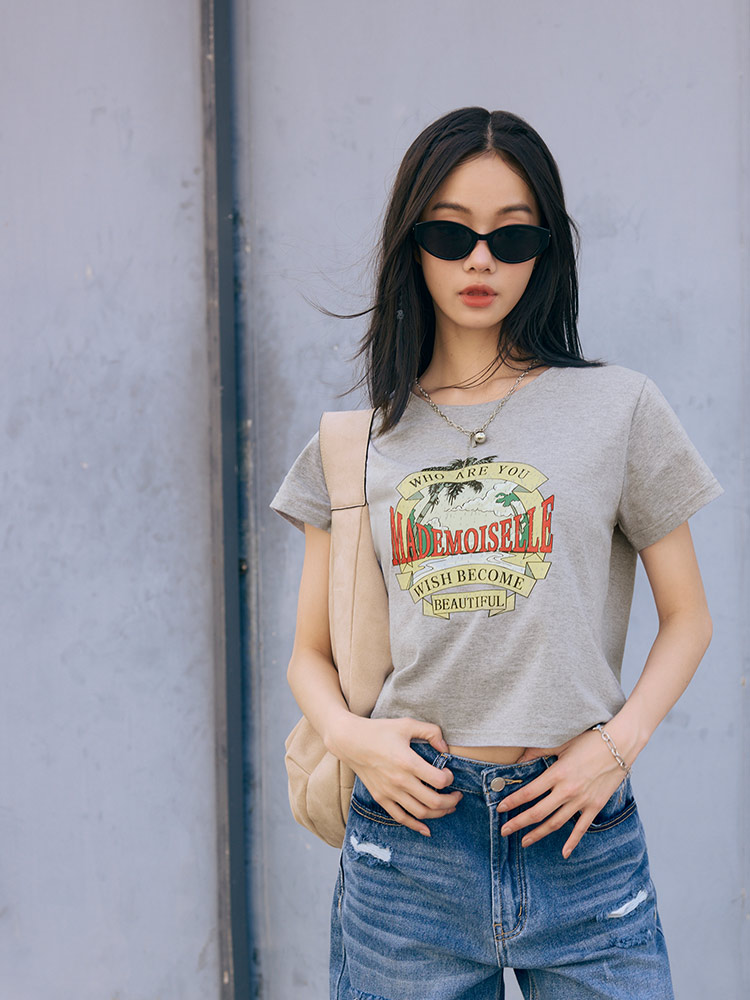 Product Feature: โ Crafted from a soft, skin-friendly cotton blend. โ Features a trendy American vintage print. โ Cropped design to elongate your figure.