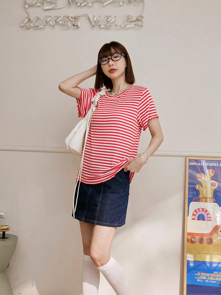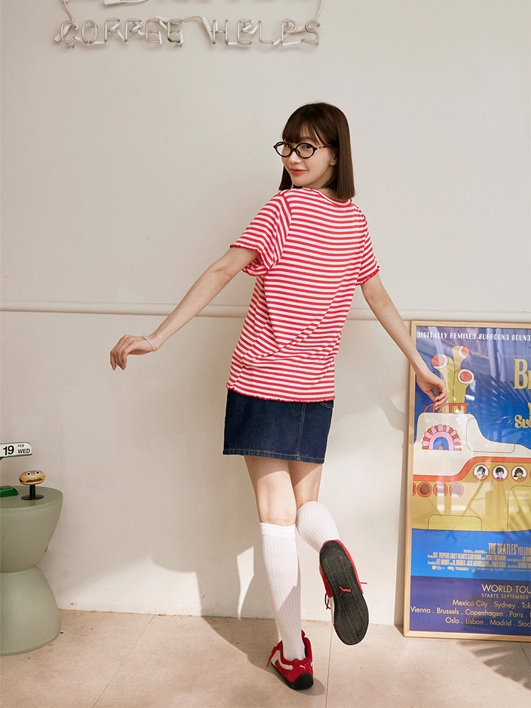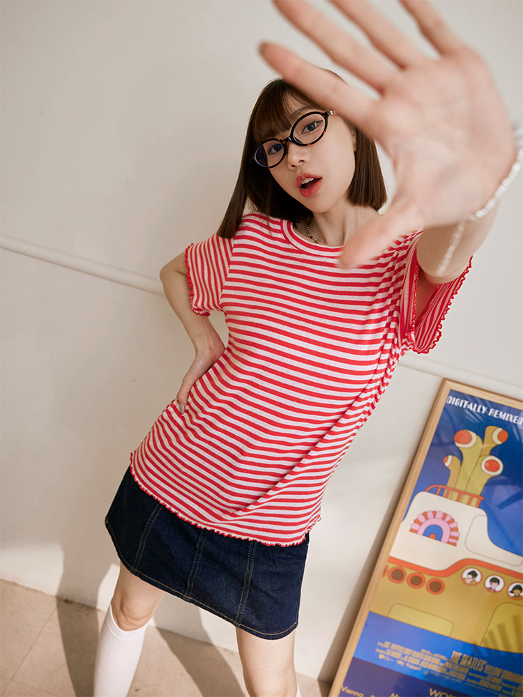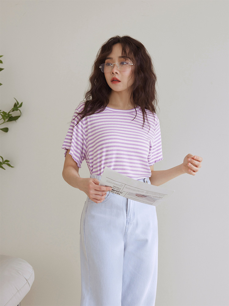 Frill Trimmed Striped Top (2XL~3XL)