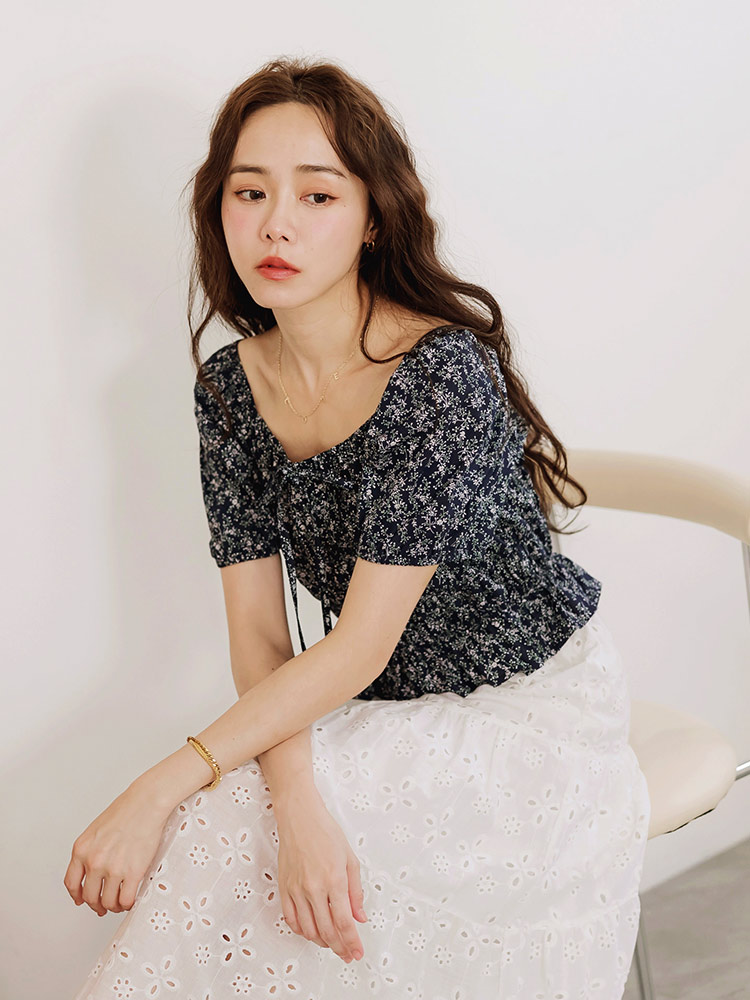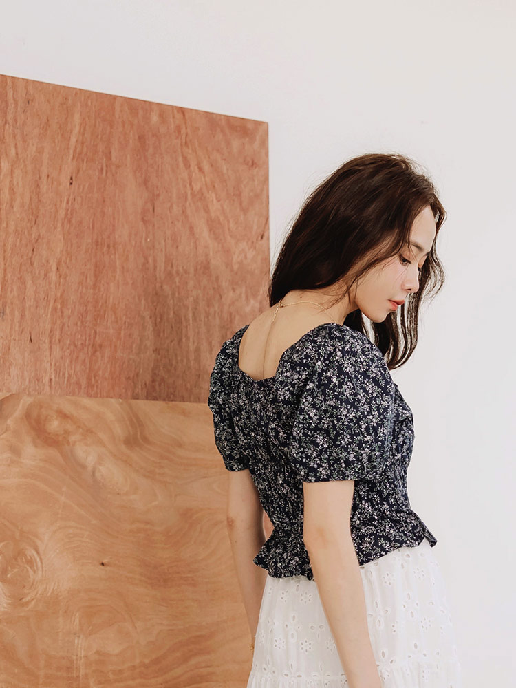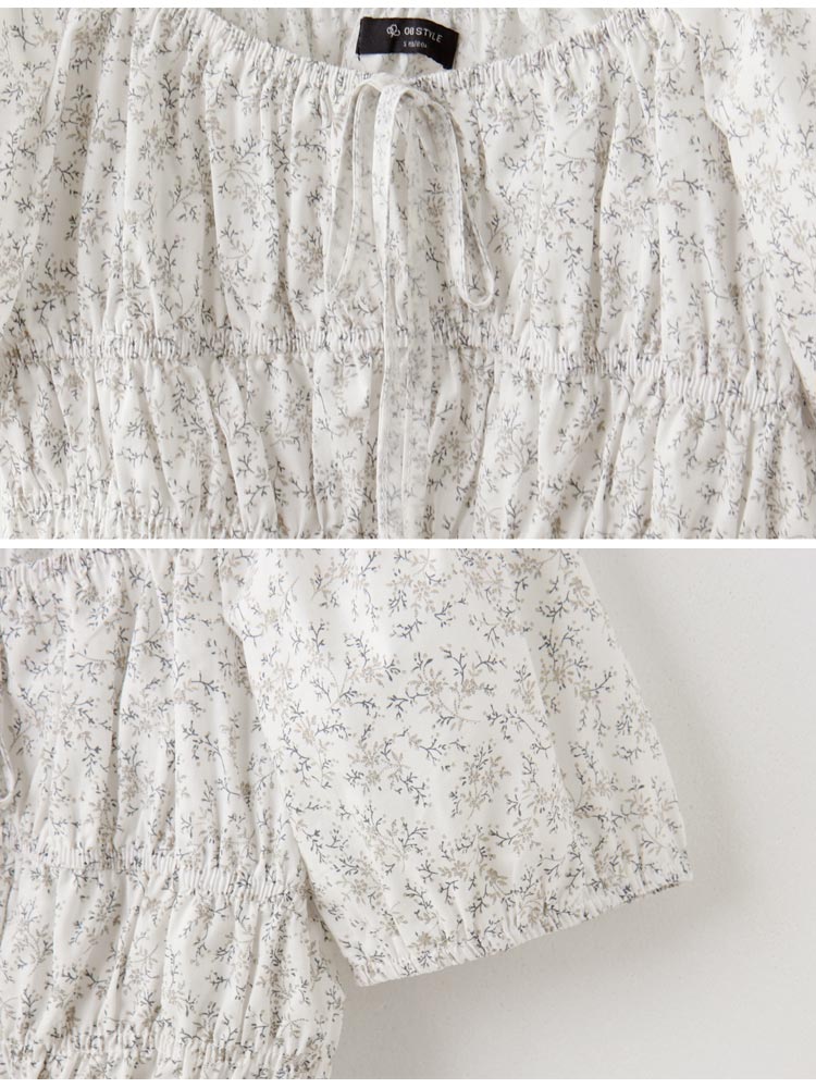 Product Feature: โ Crafted from breathable cotton, adorned with a delicate floral print. โ Features an elegant square neckline. โ Adjustable drawstring detail adds a touch of charm. โ Designed with elasticated cuffs and a flattering, gathered silhouette.