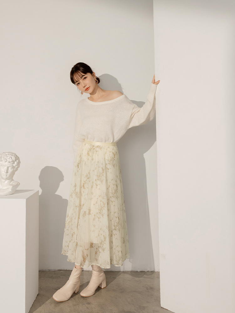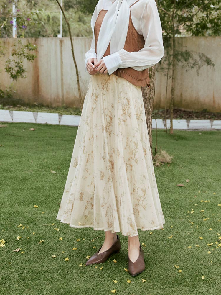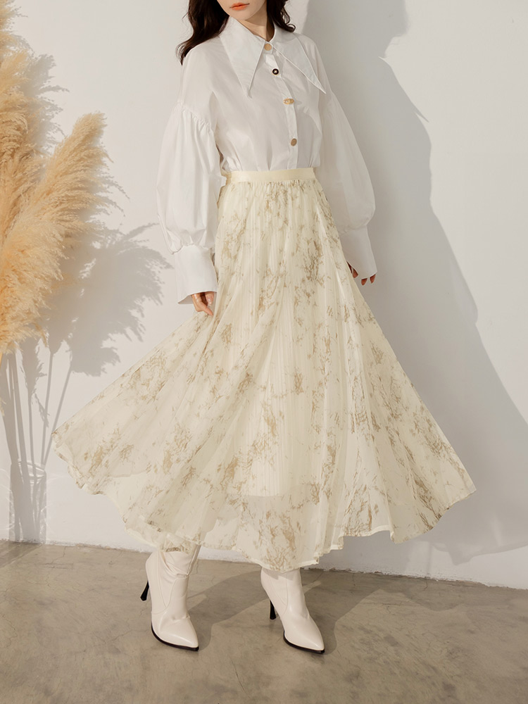 Printed Elastic Waist Pleated Skirt