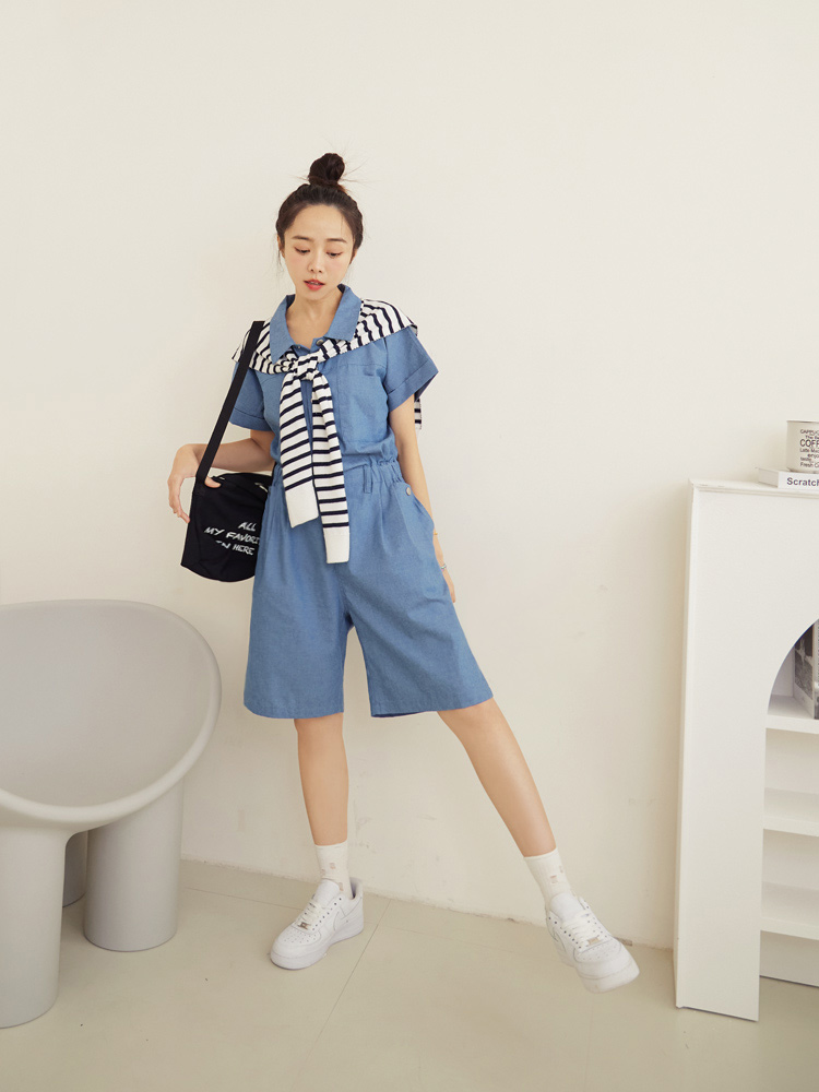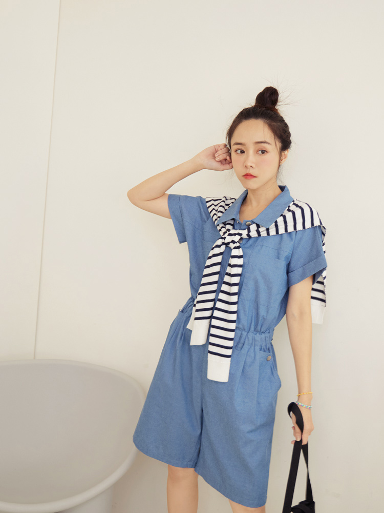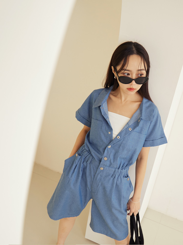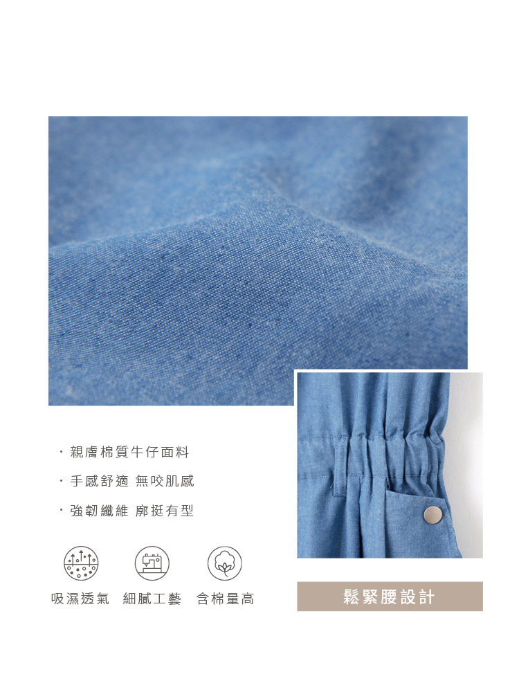 Product Feature: โ Crafted from soft, skin-friendly cotton denim โ Features a button-down design for a stylish look โ Comfortable elasticated waist โ Functional pockets