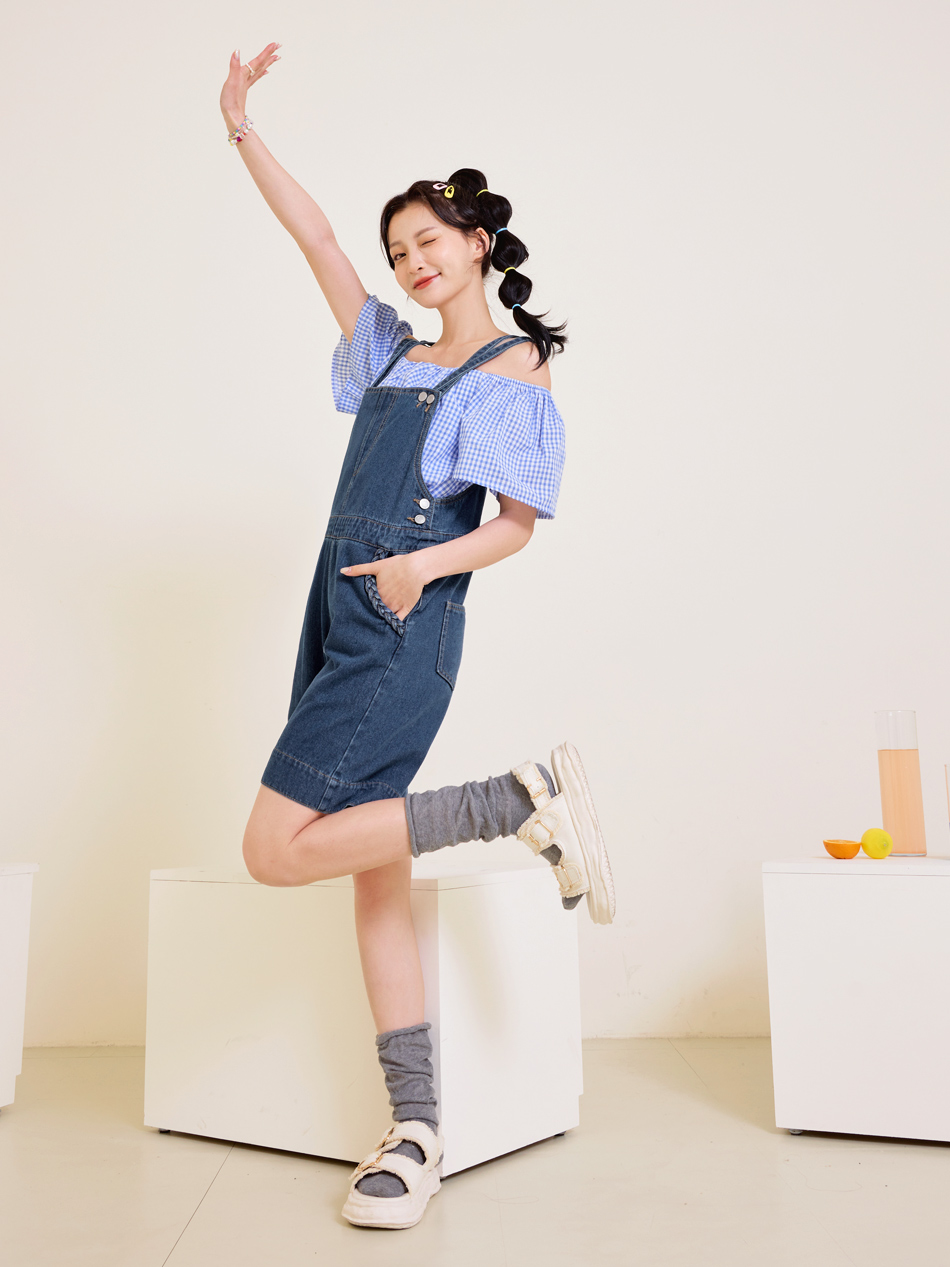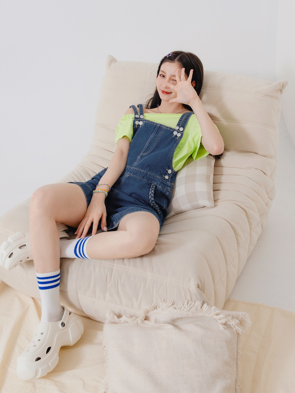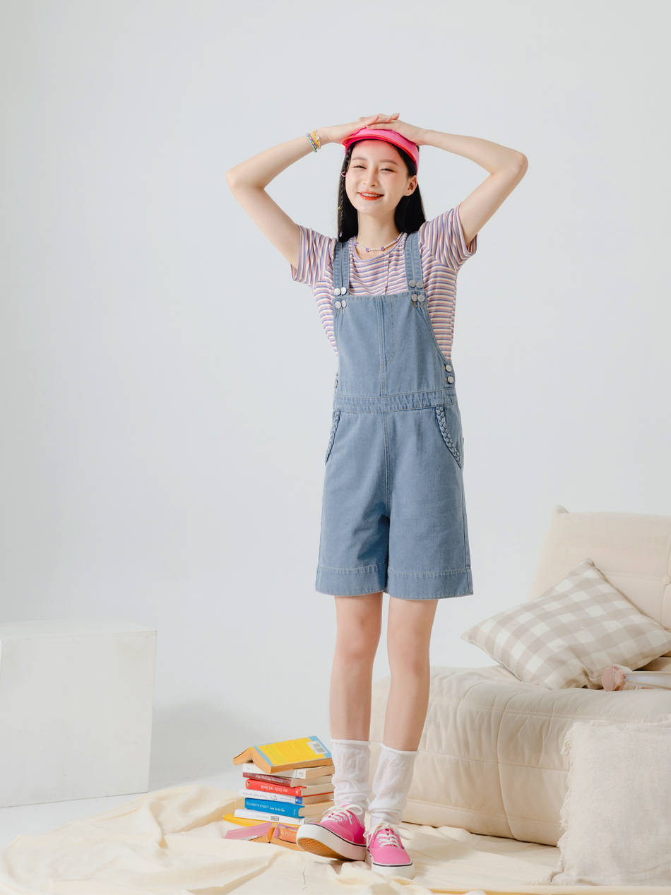 Product Feature: โ Crafted from breathable, skin-friendly pure cotton denim. โ Features a stylish woven design on the pocket openings. โ Adjustable shoulder straps for a perfect fit. โ Designed with a casual, versatile style.
