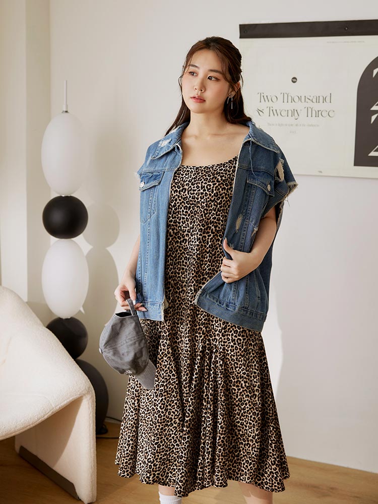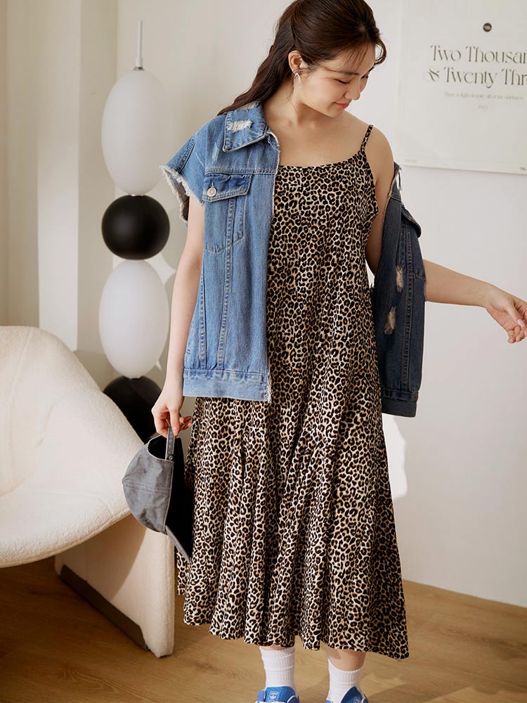 Printed Maxi Dress with Adjustable Straps (XL~3XL)