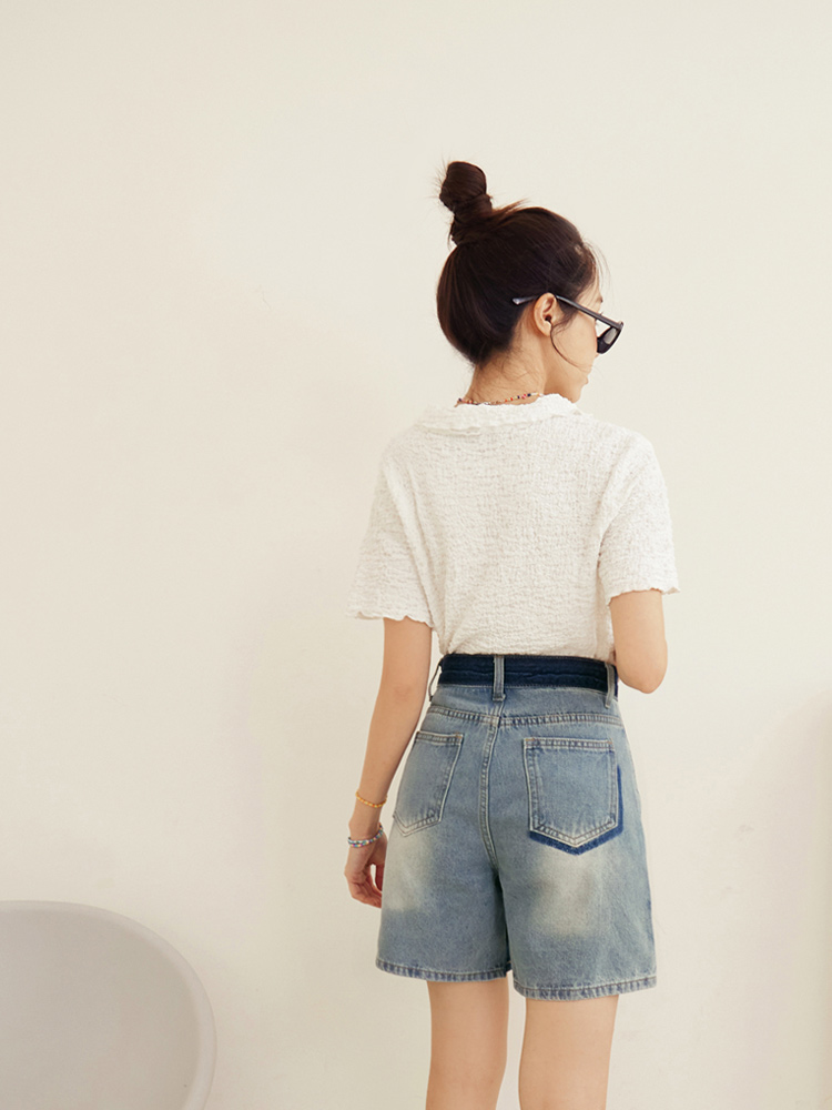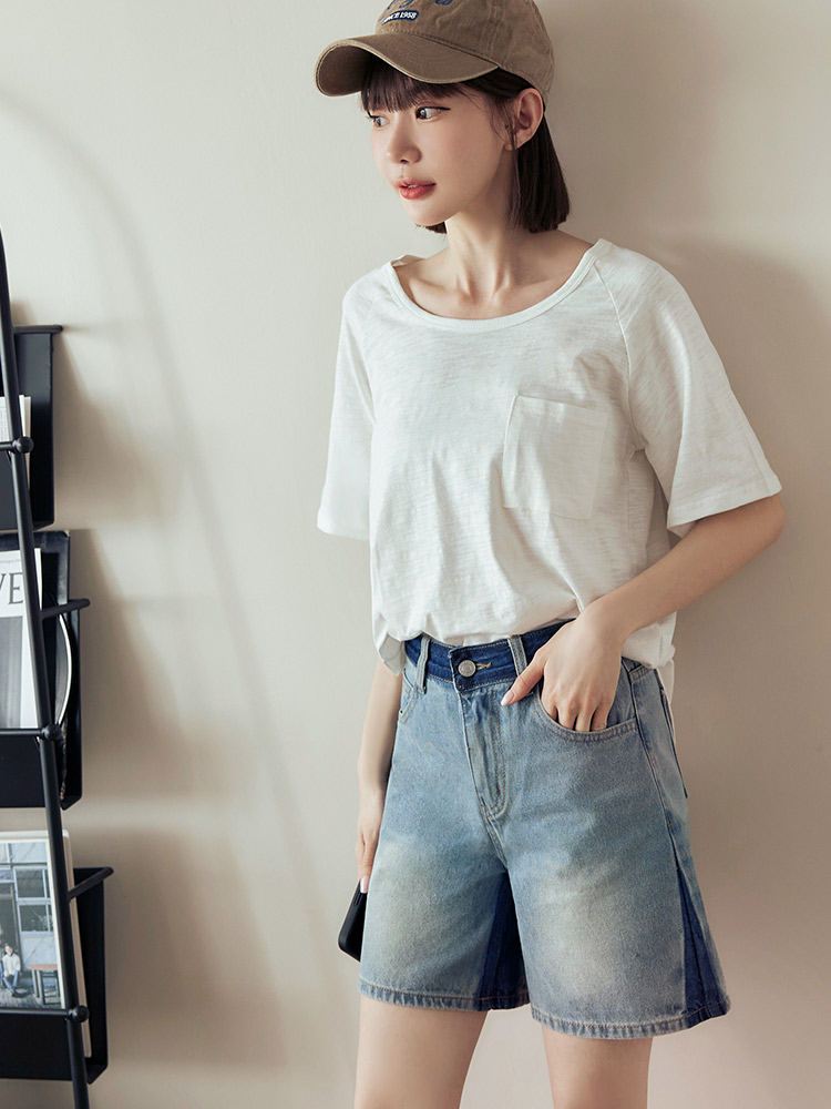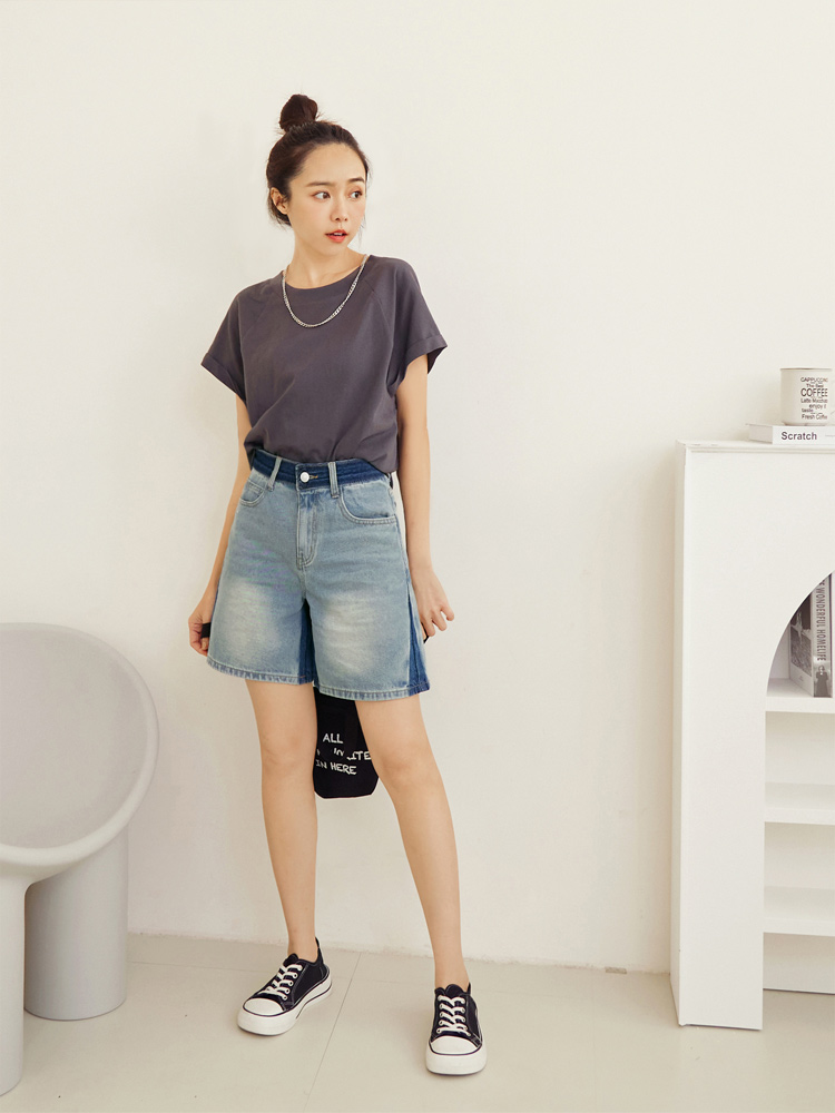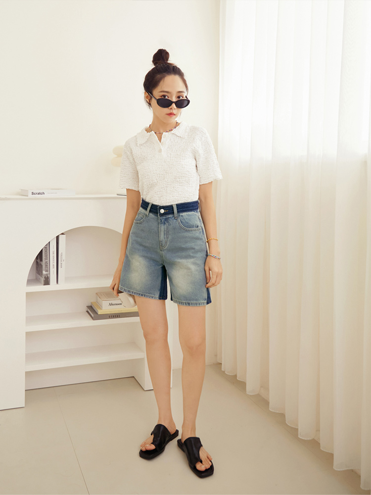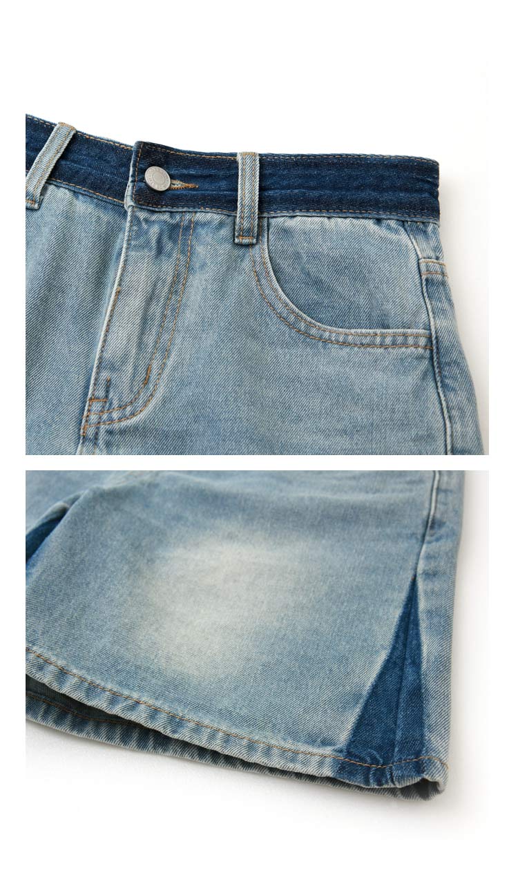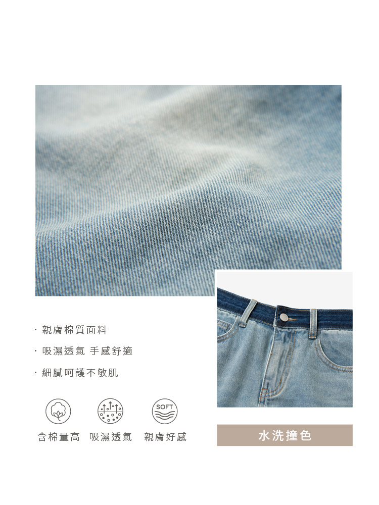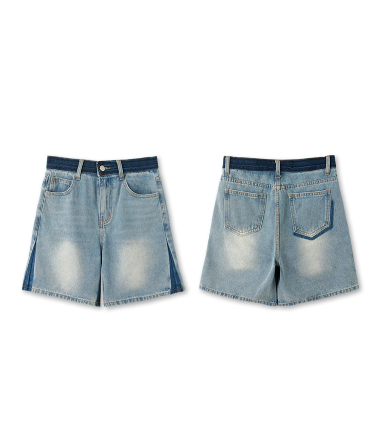 Product Feature: โ Crafted from soft, skin-friendly cotton denim. โ Washed colour-block design adds a touch of style. โ Classic button and zip closure. โ Features functional pockets for everyday use.