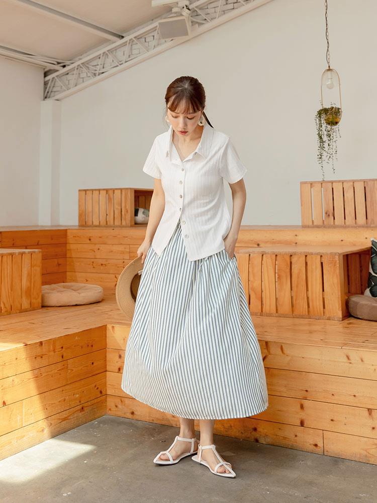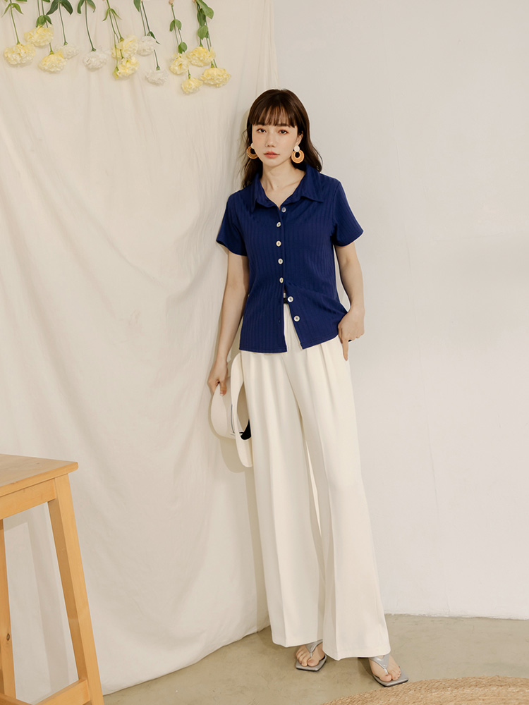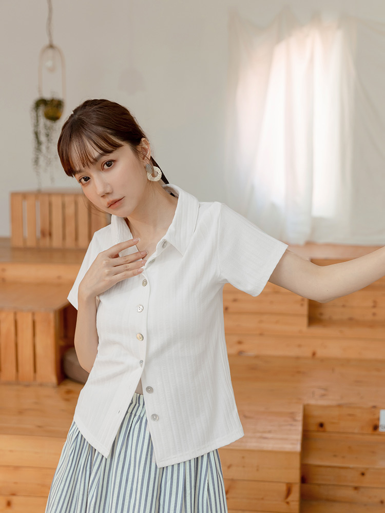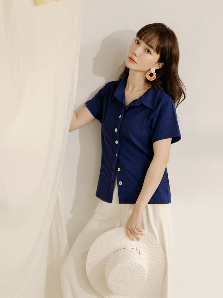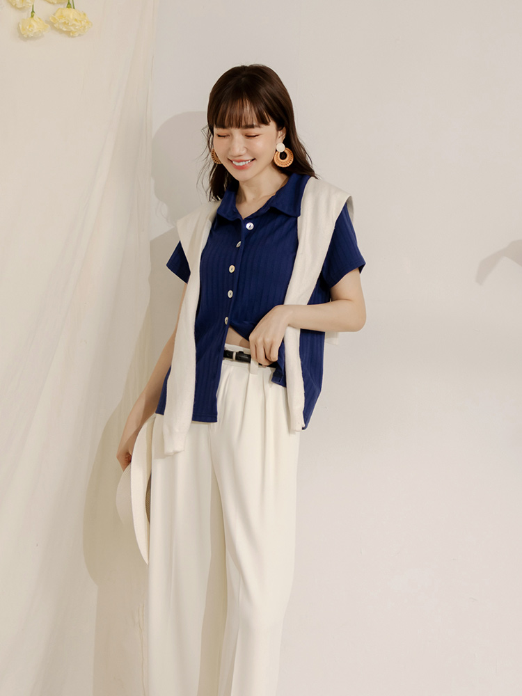 Ribbed Knit Shell Button-Up Top