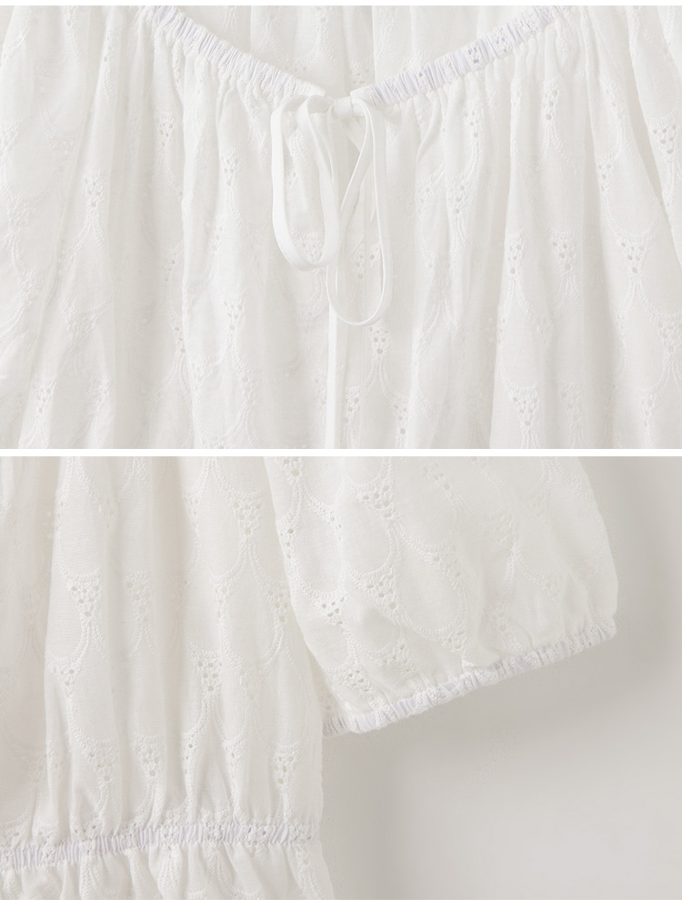 Product Feature: โ Crafted from breathable, soft cotton. โ Delicate embroidered detailing adds a touch of elegance. โ Features an adjustable drawstring waist for a flattering fit. โ Designed with a comfortable, elastic neckline.
