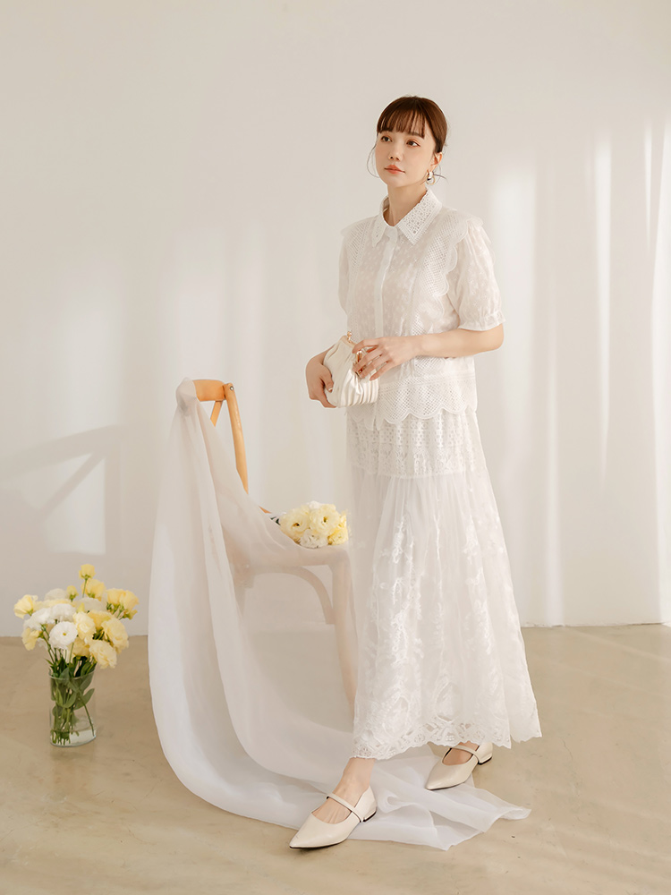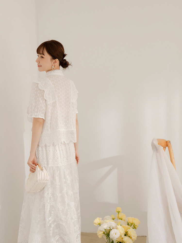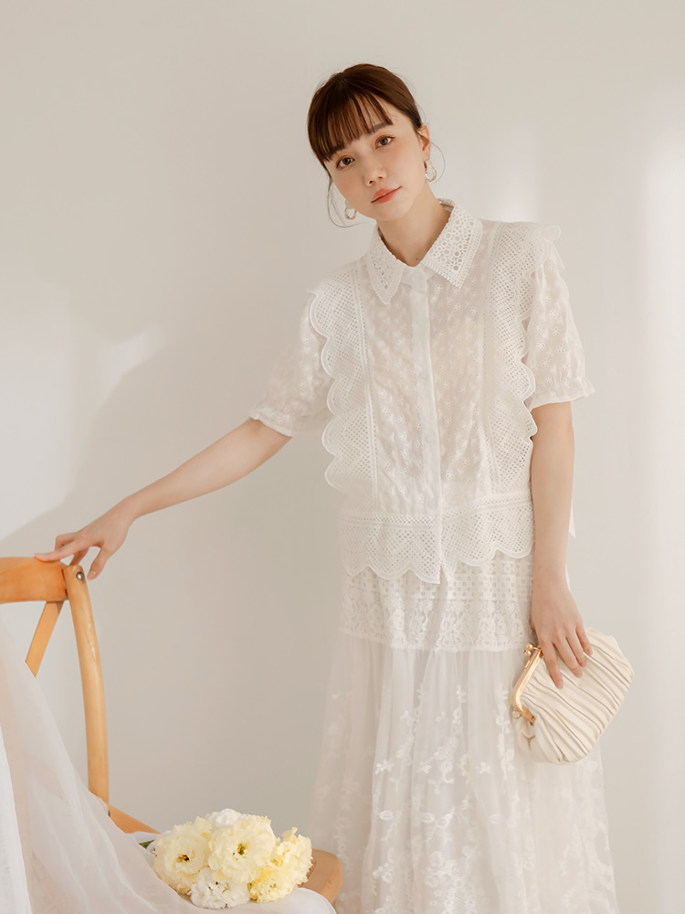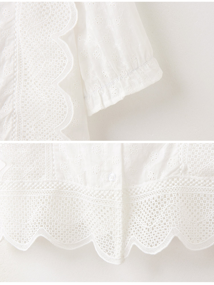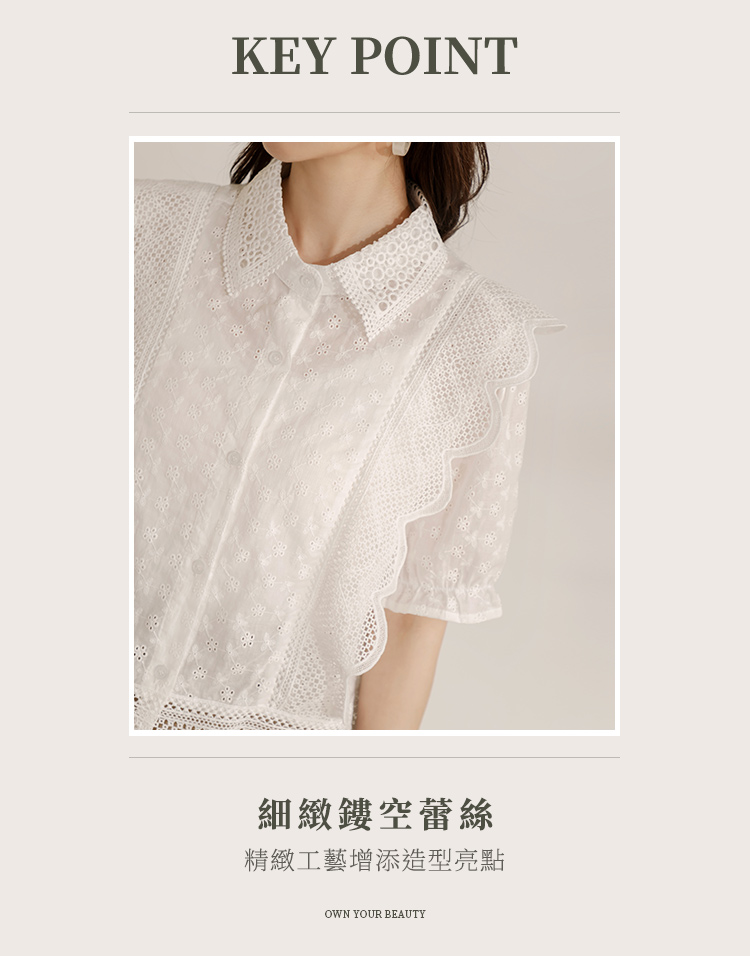 Product Feature: โ Crafted from delicate, skin-friendly lace. โ Features a flattering wave-cut design. โ Button-up style. โ Suitable for dates or weddings.