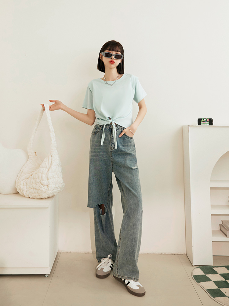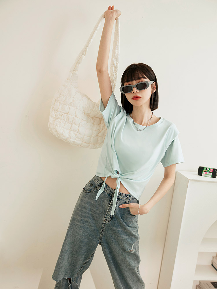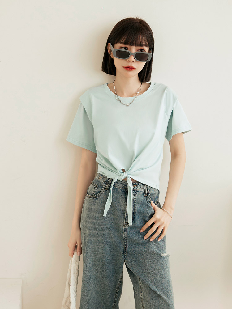 Product Feature: โ Made from soft, skin-friendly cotton โ Stylish shoulder-cut design โ Cropped length to elongate the legs โ Adjustable tie detail