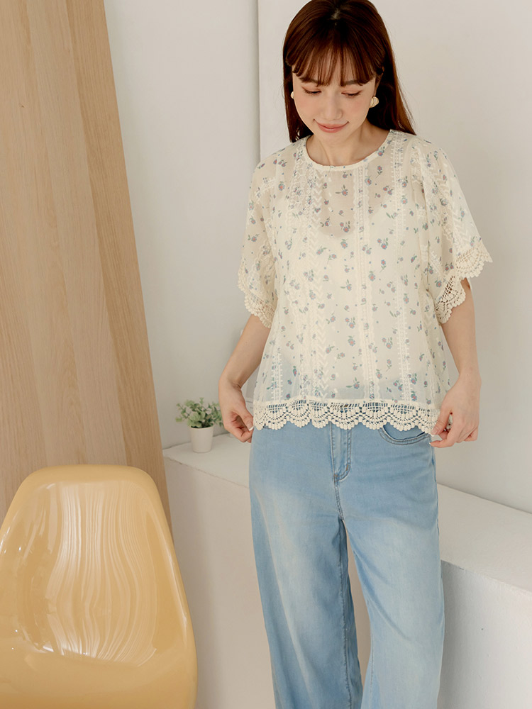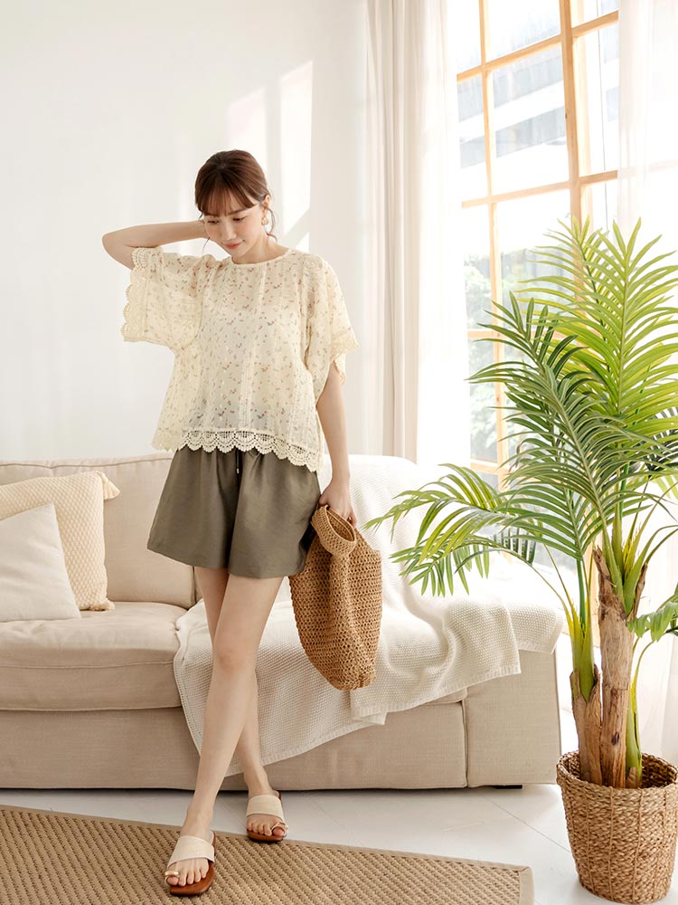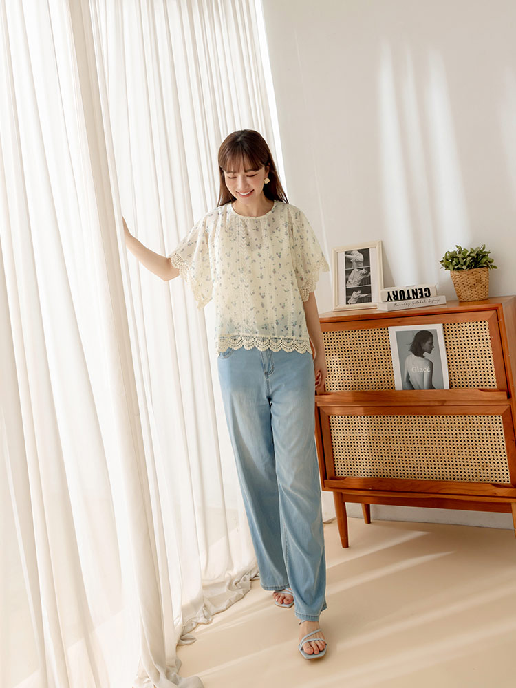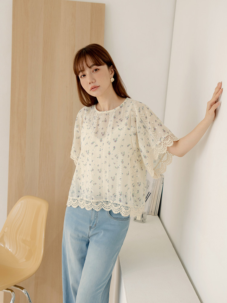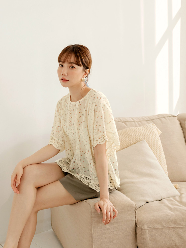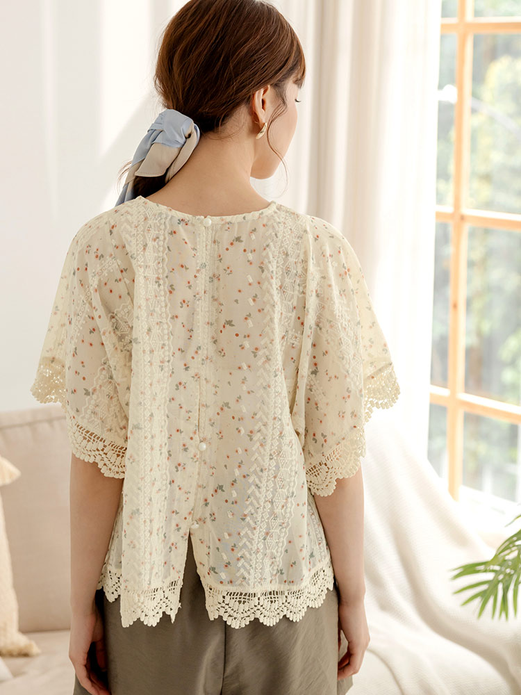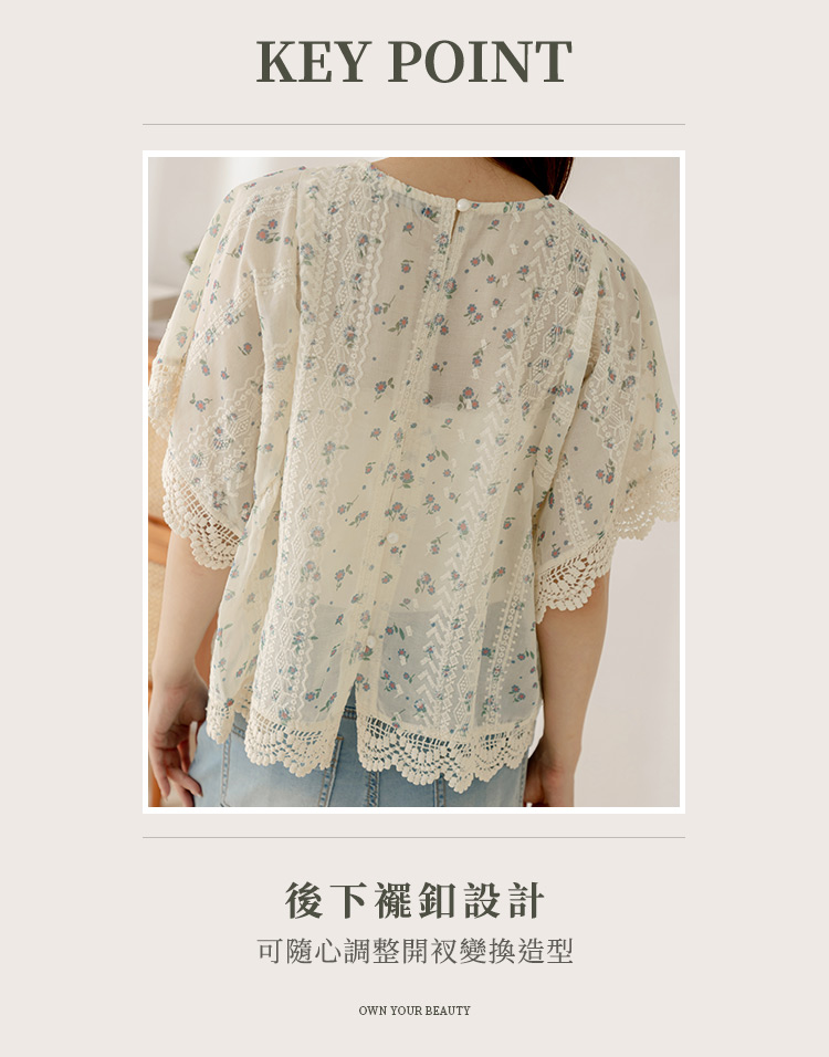 Product Feature: โ Crafted from delicate, embroidered lace. โ Features a flattering, relaxed fit. โ Split-back design adds a touch of elegance. โ Button closure at back neck and hem for versatile styling.