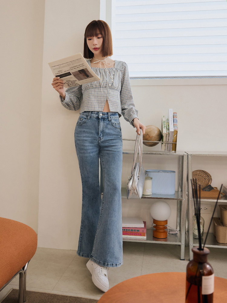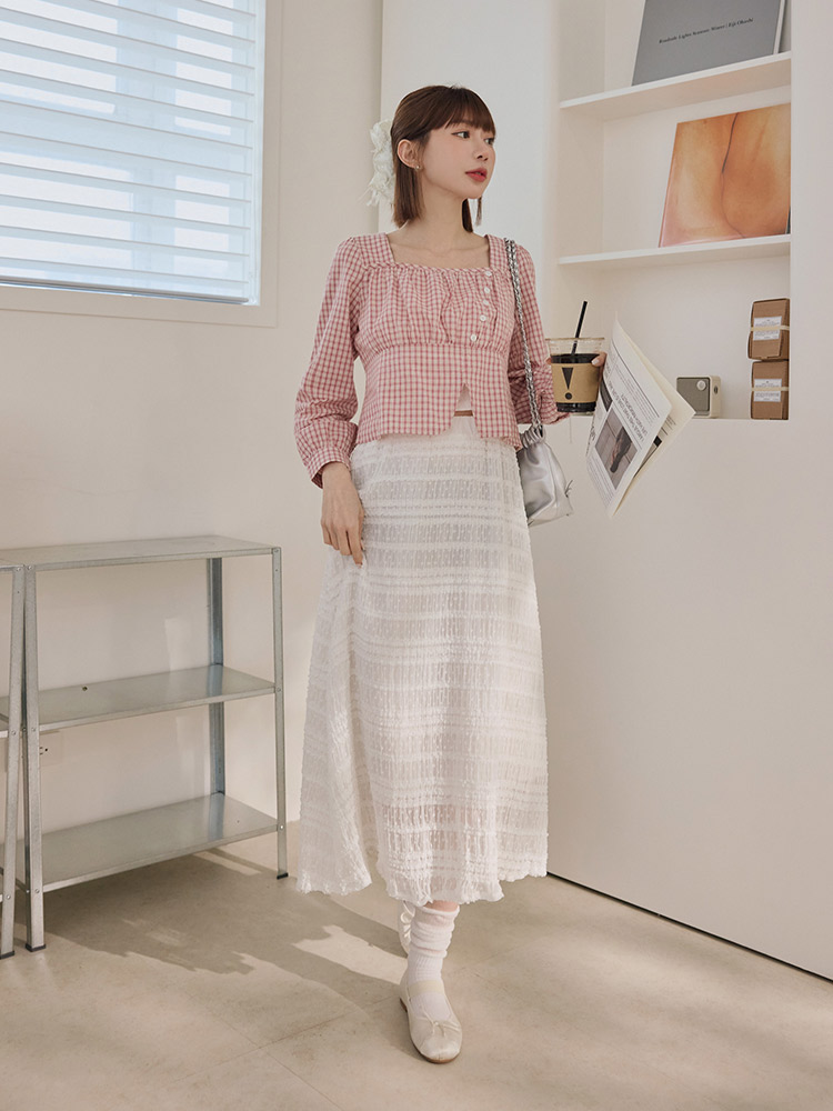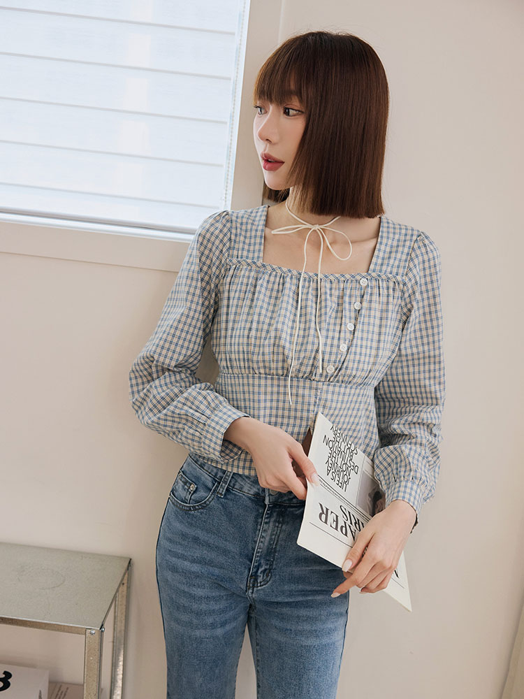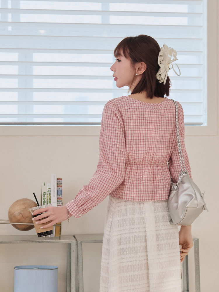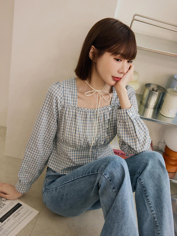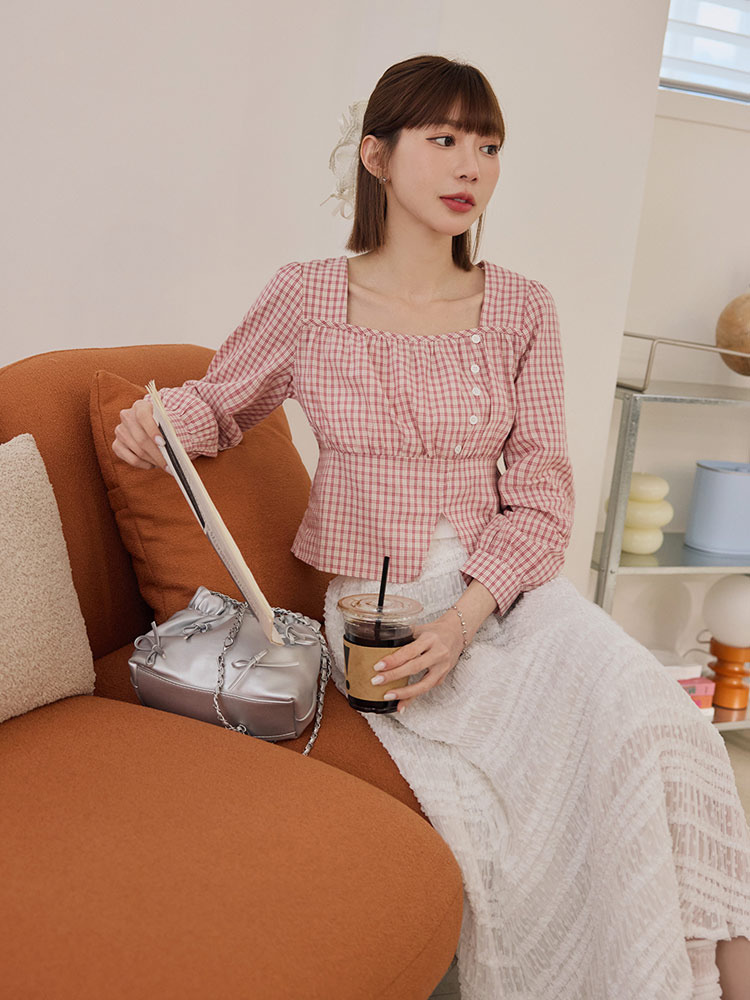 Product Feature: โ Crafted from soft, breathable cotton. โ Features a flattering square neckline with gathered detailing. โ Designed with a short, figure-enhancing cut. โ Classic checkered pattern.