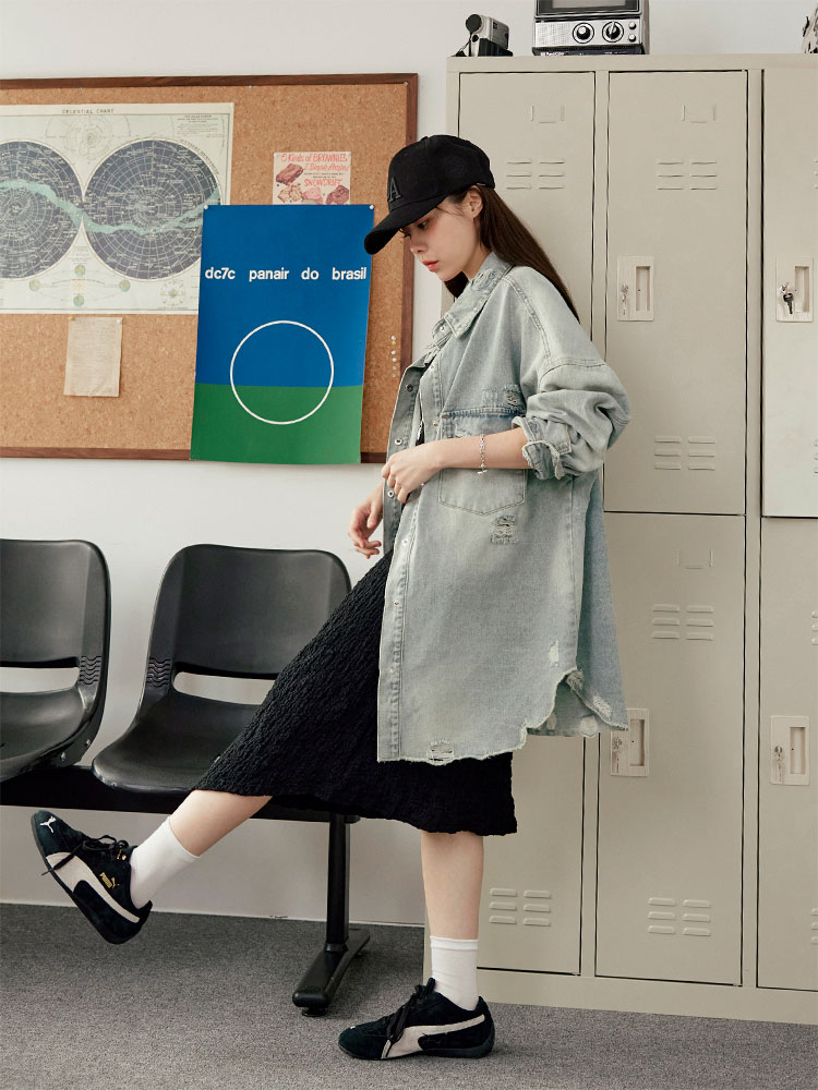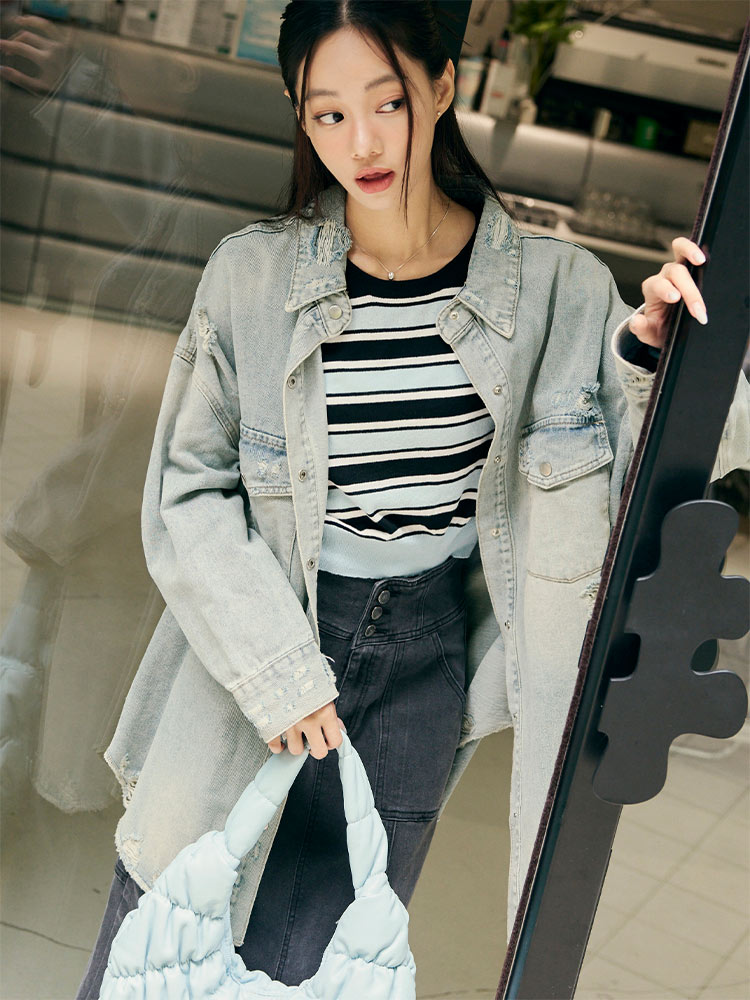 Product Feature: โ Crafted from breathable, heavyweight cotton denim. โ Features stylish ripped detailing for a casual look. โ Designed with functional front pockets. โ Button-up front for easy wear.