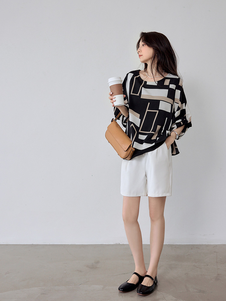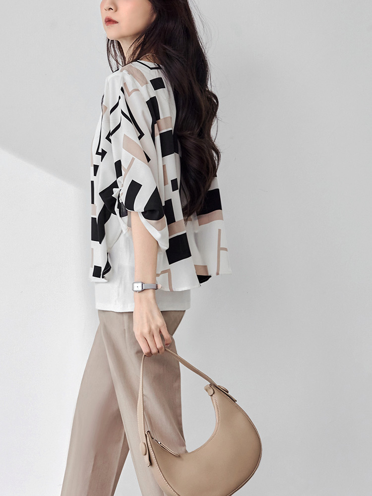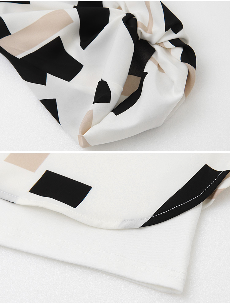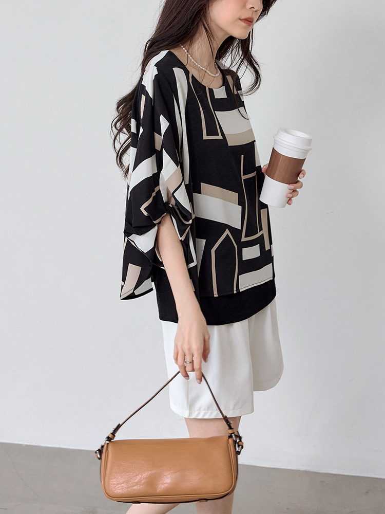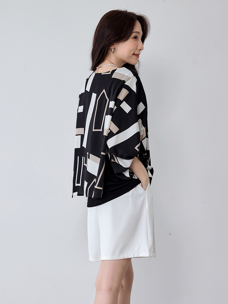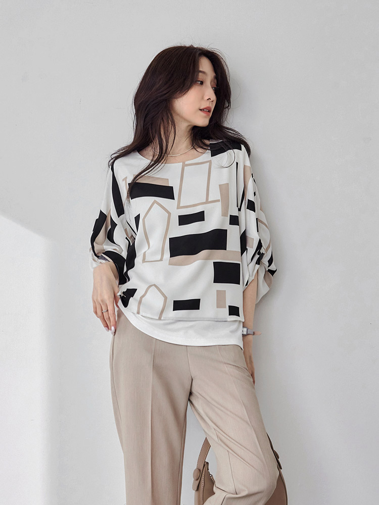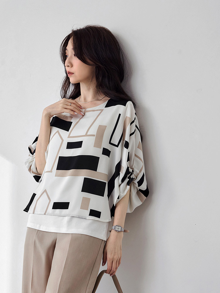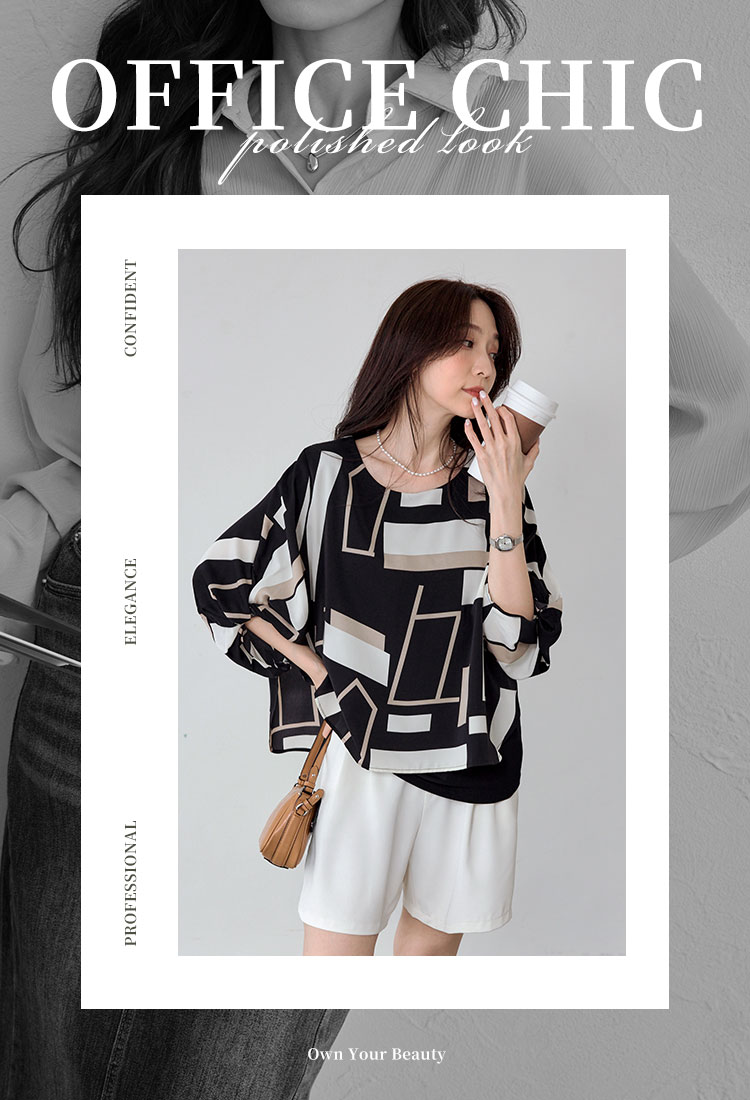 Product Feature: โ Features a striking geometric print. โ Crafted from a lightweight, comfortable fabric. โ Designed with an inner lining. โ The gathered sleeve cuffs add a touch of style.