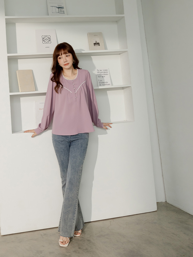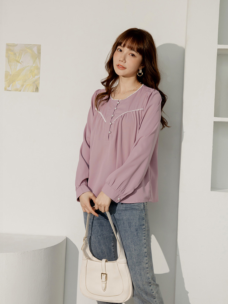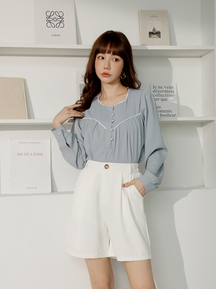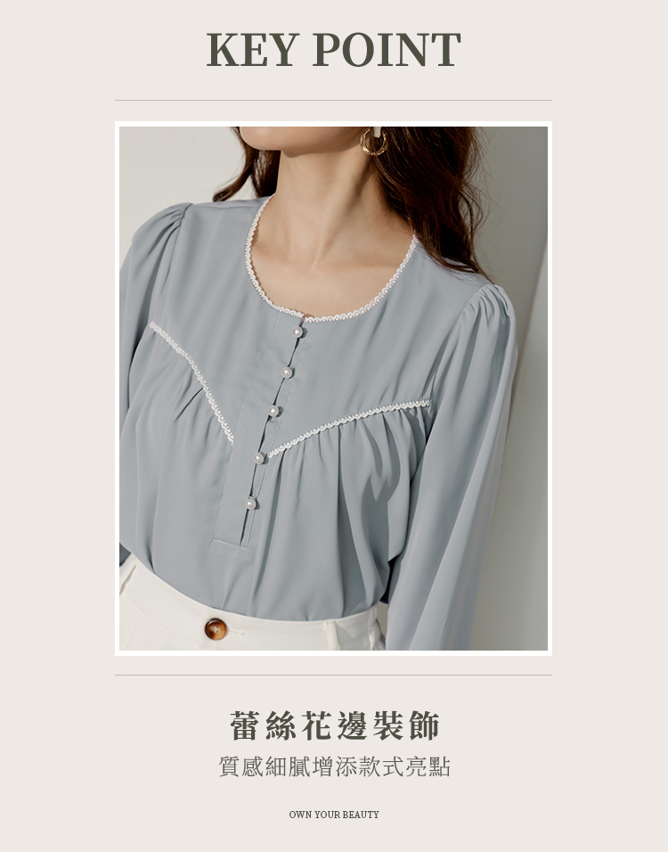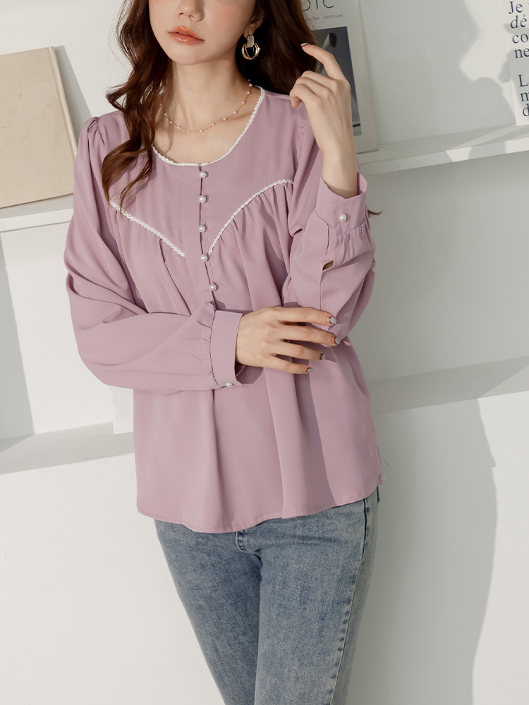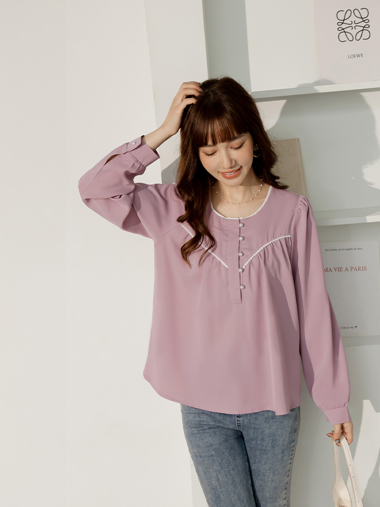 Product Feature: โ Features delicate lace trim for added elegance โ Designed with a flattering, relaxed fit โ Adorned with chic pearl buttons โ Crafted from smooth, skin-friendly fabric
