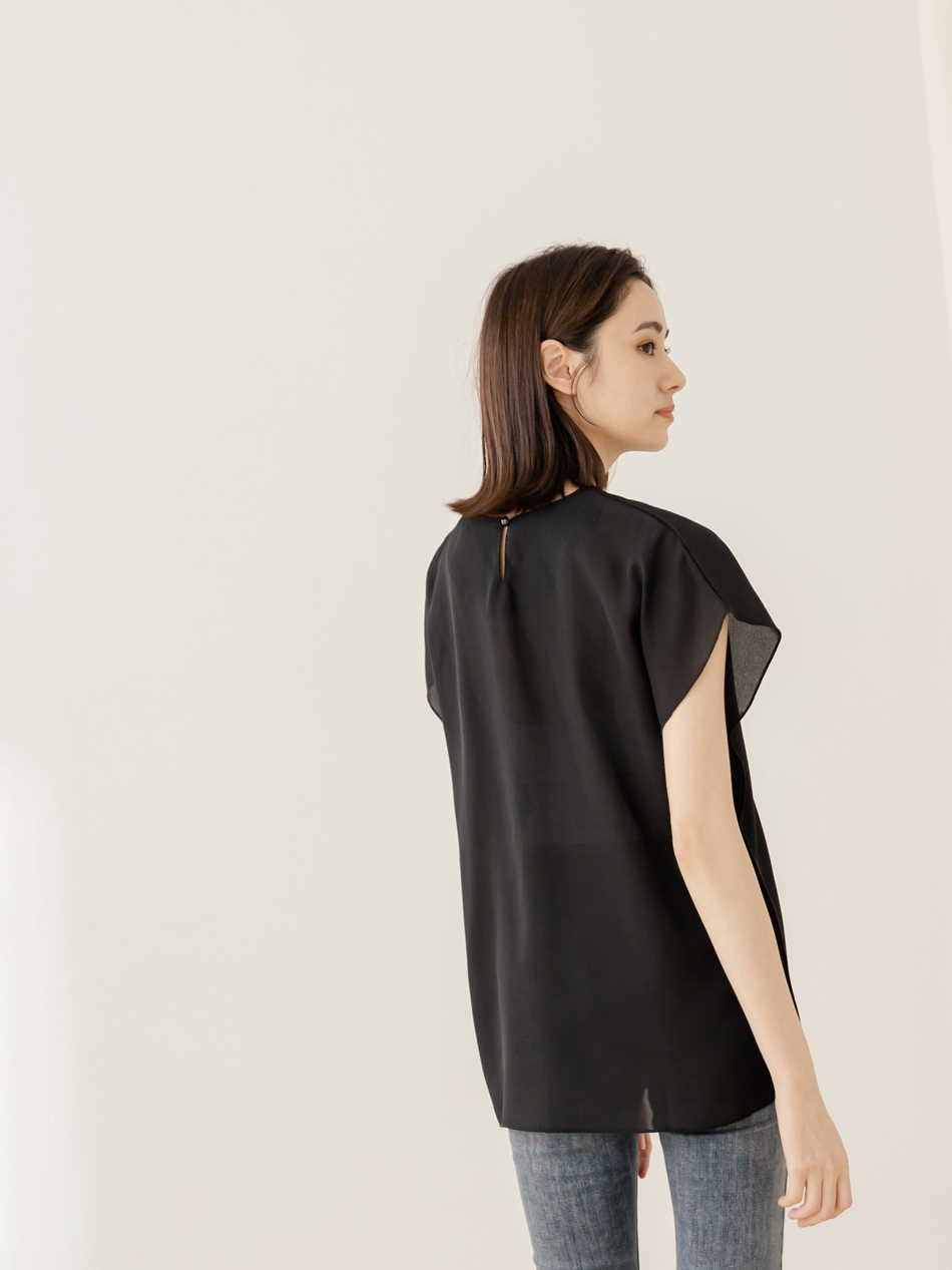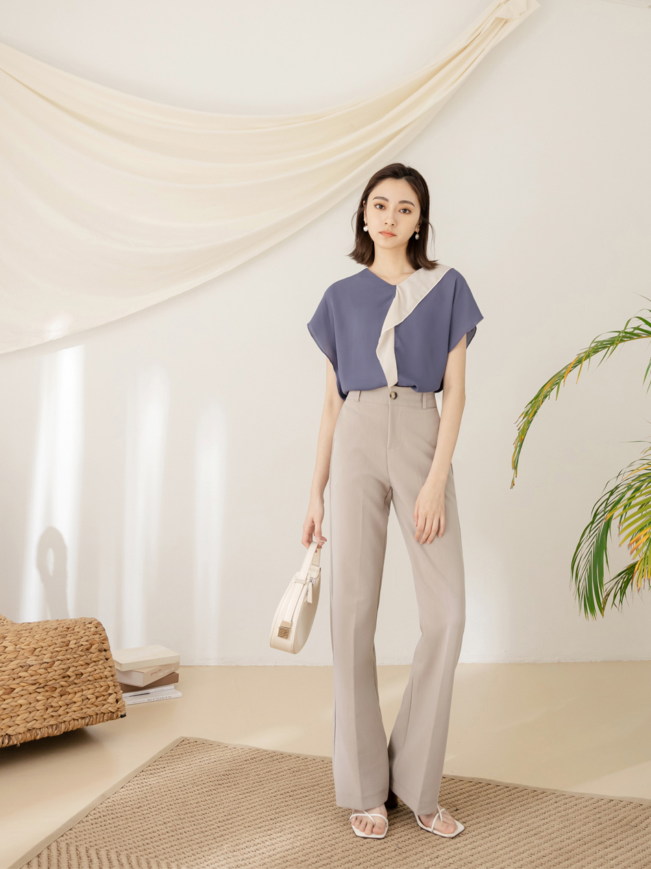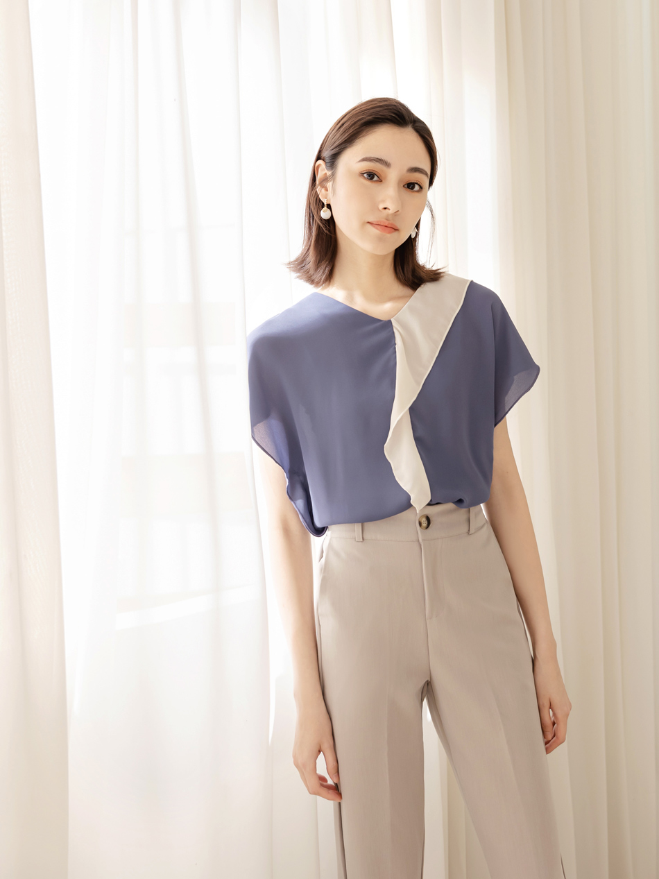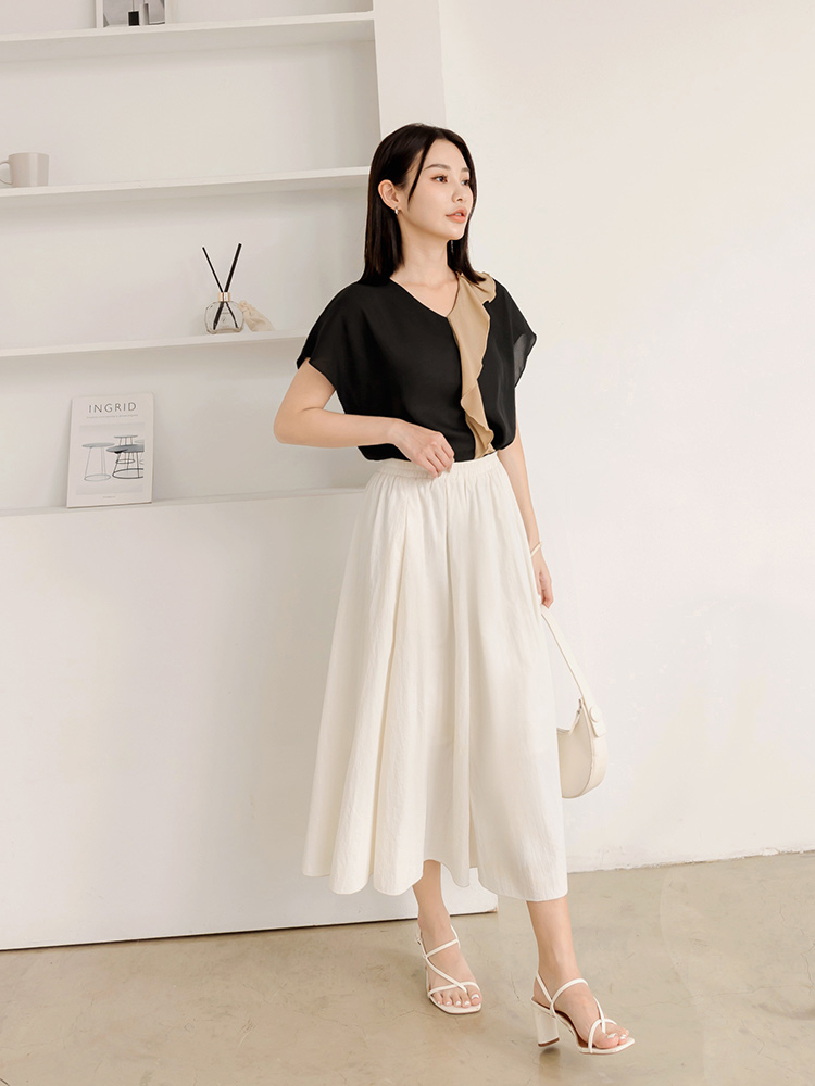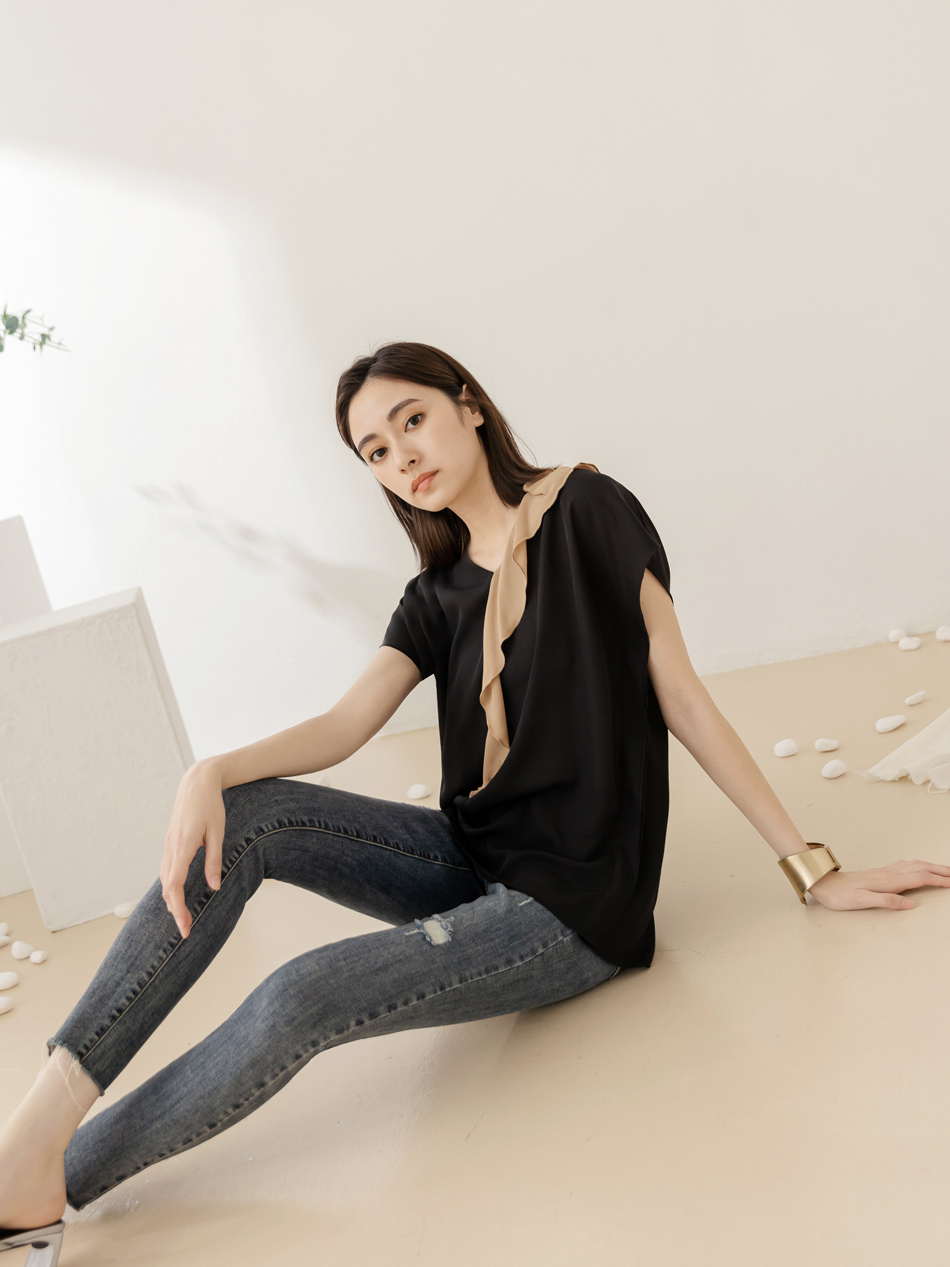 Product Feature: โ Crafted from smooth, skin-friendly fabric โ Flattering V-neck design to lengthen the neckline โ Features a stylish colour-block ruffle trim โ Relaxed fit suitable for all body types