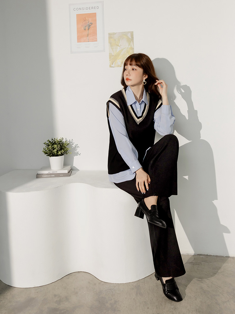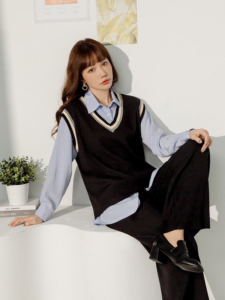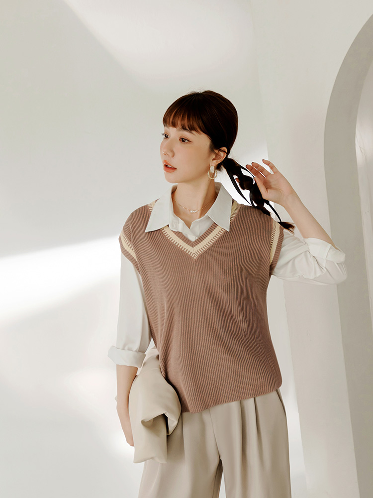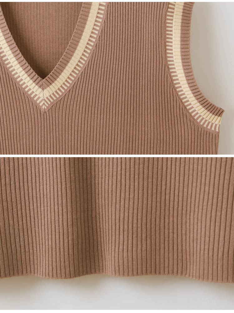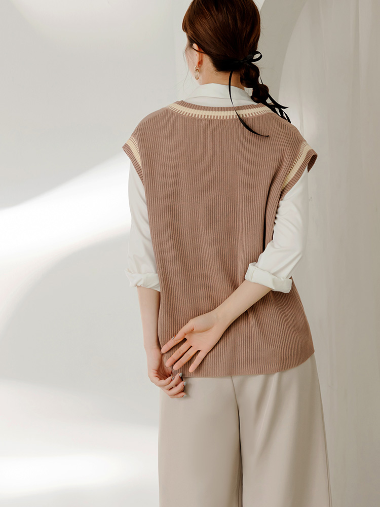 Ribbed Knit Colour-Block Trim Vest (2XL~3XL)