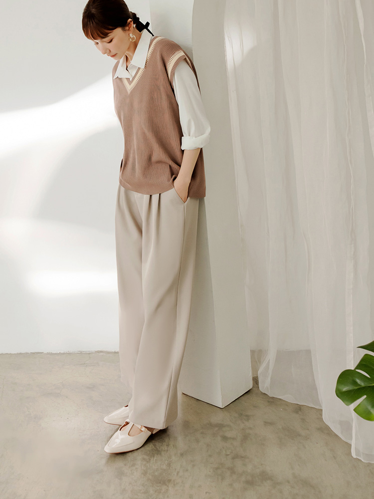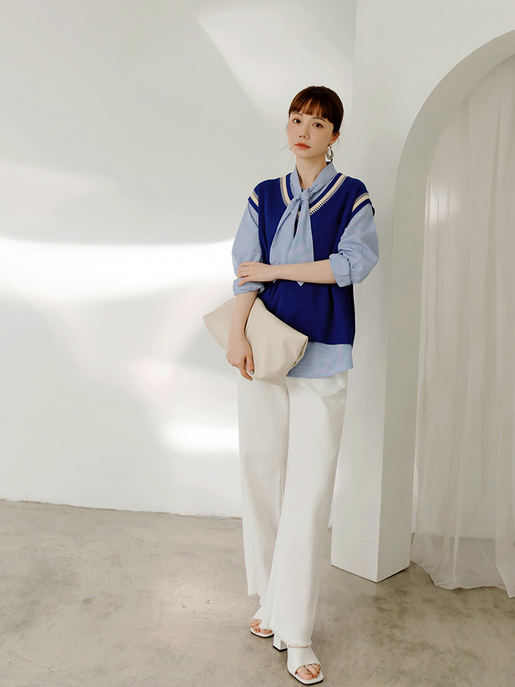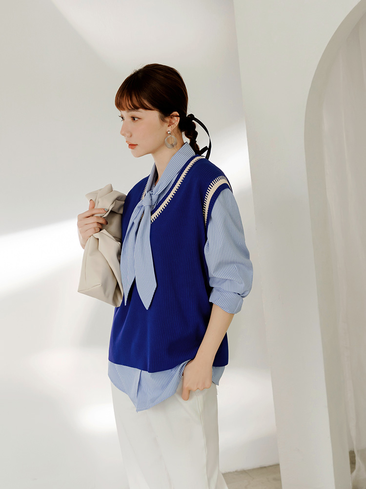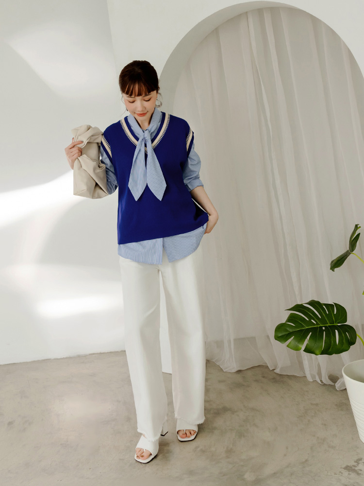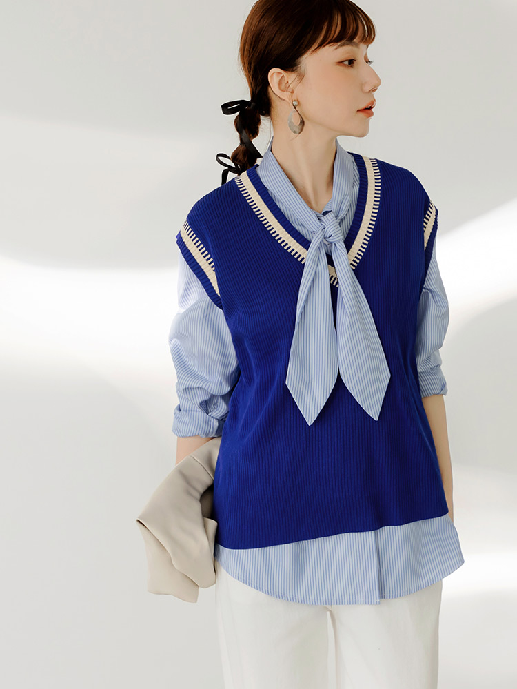 Ribbed Knit Colour-Block Trim Vest (2XL~3XL)