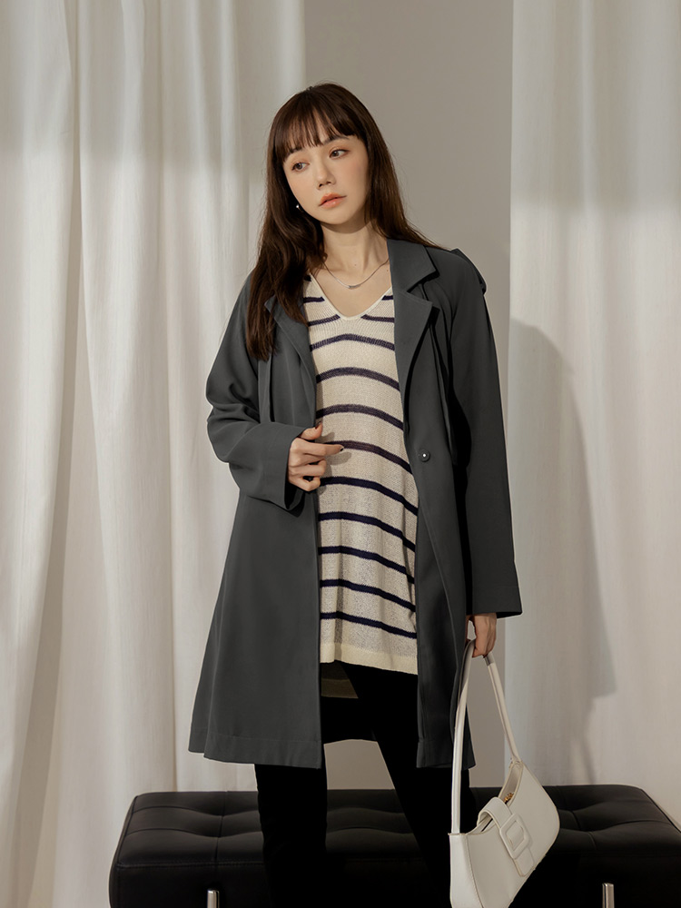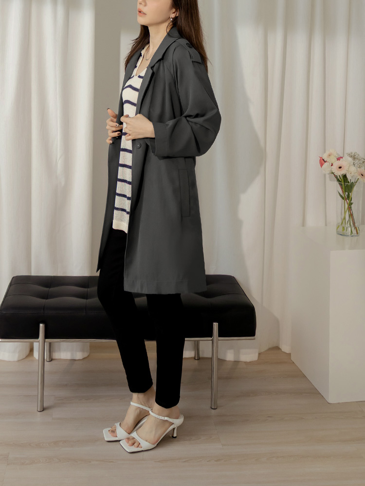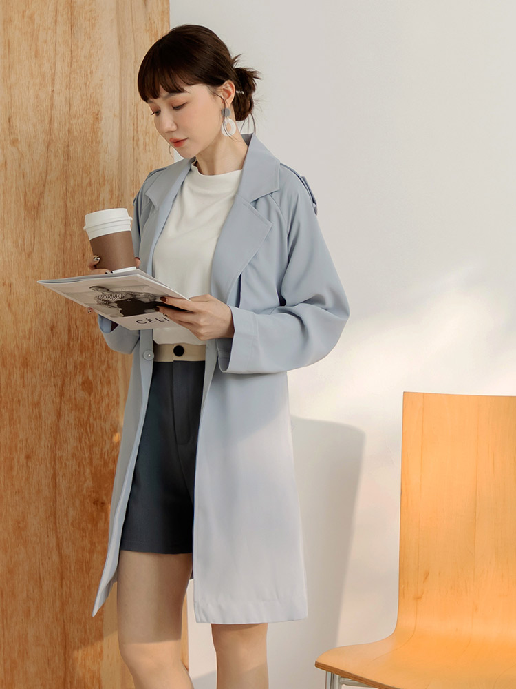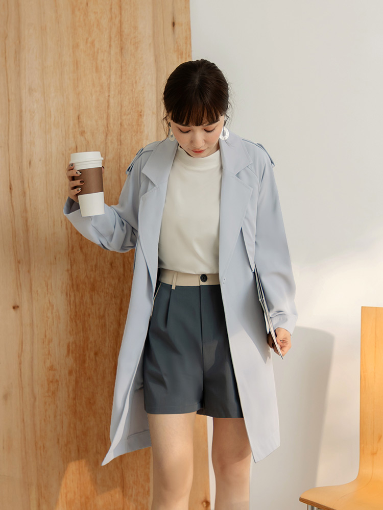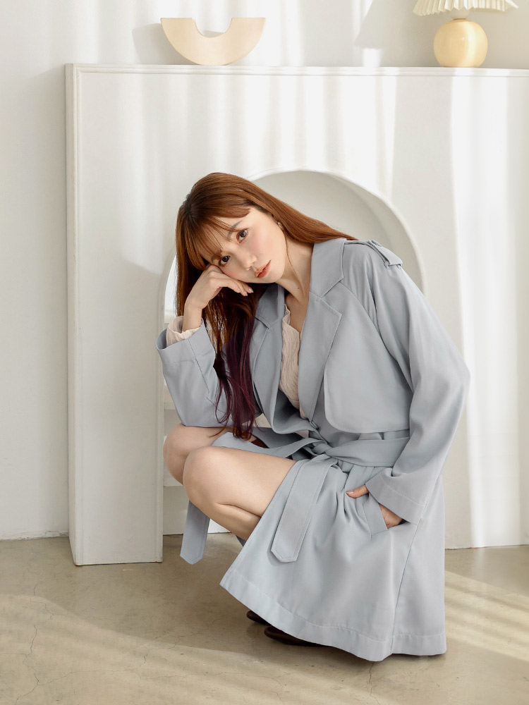 Belted Trench Coat with Flap Collar