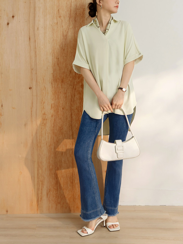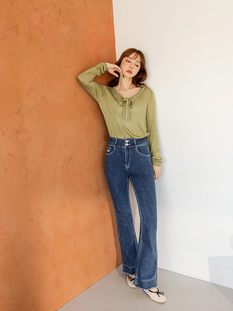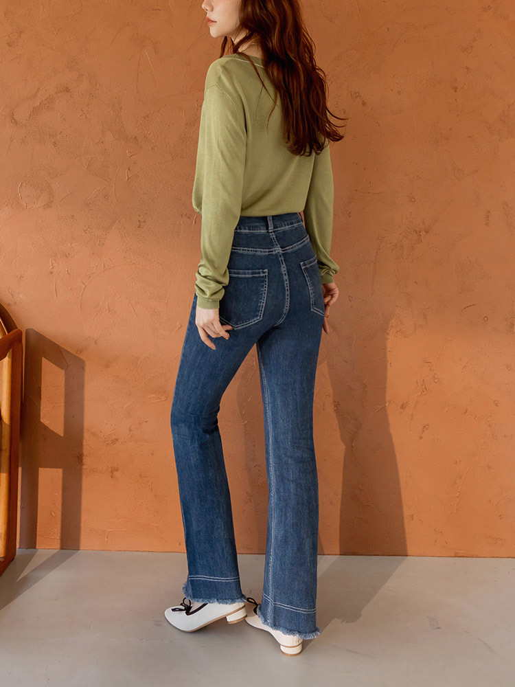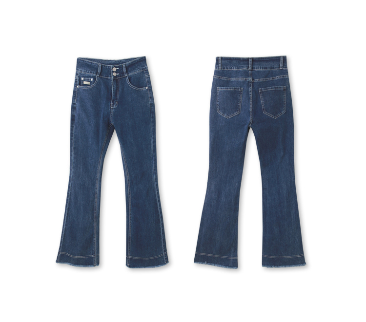 Product Feature: โ Crafted from a soft cotton blend with a touch of stretch for comfort. โ Features a wide waistband with double button closure to flatter your figure. โ Classic flare design to visually slim the legs. โ Designed with functional front and back pockets.