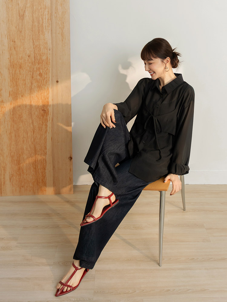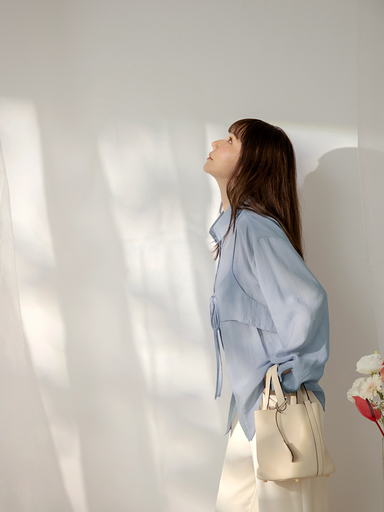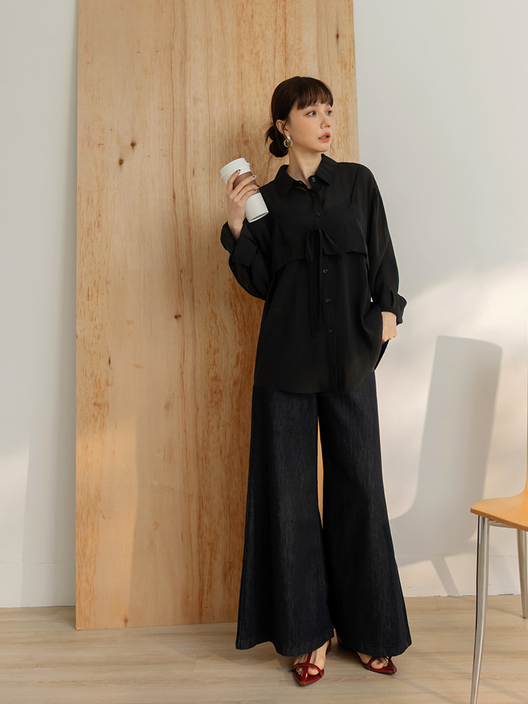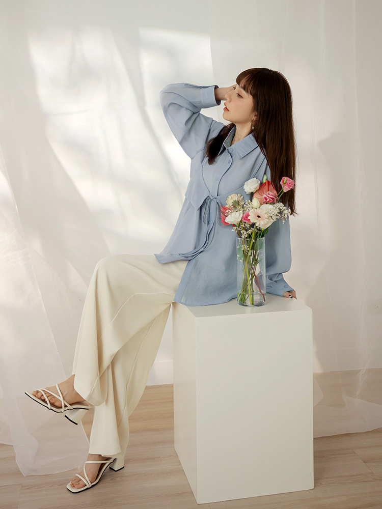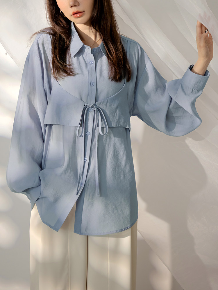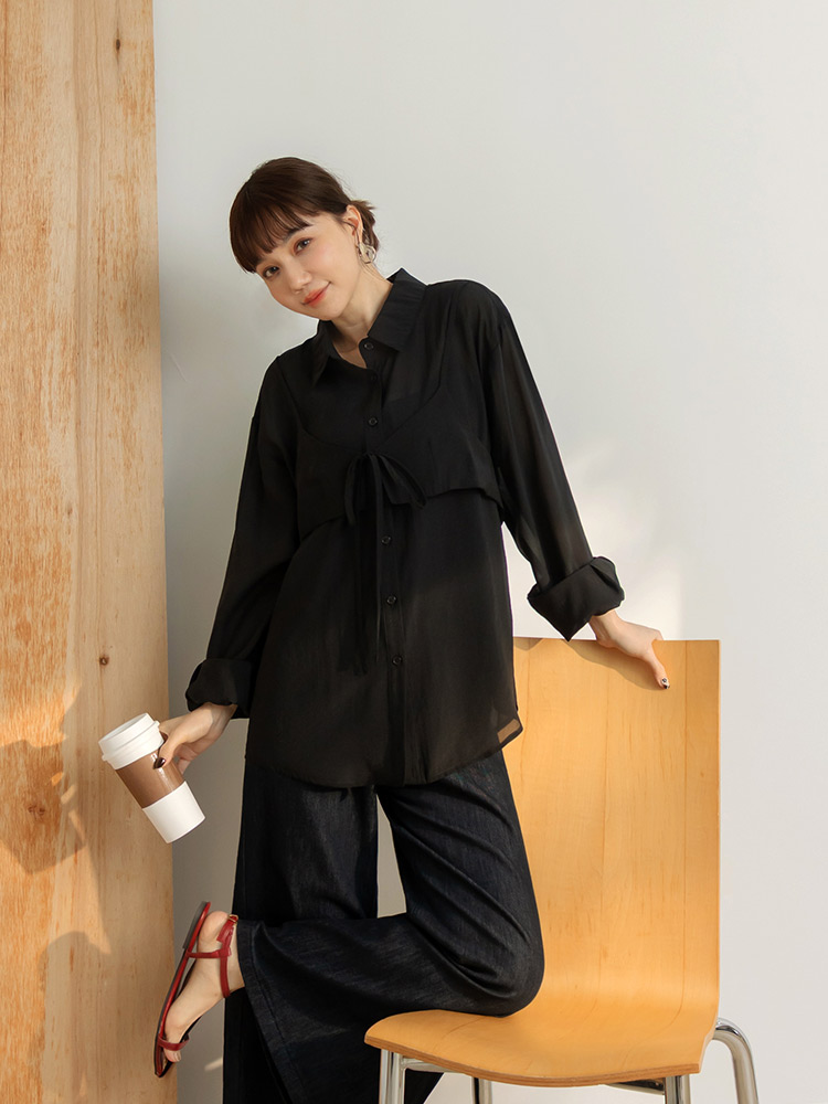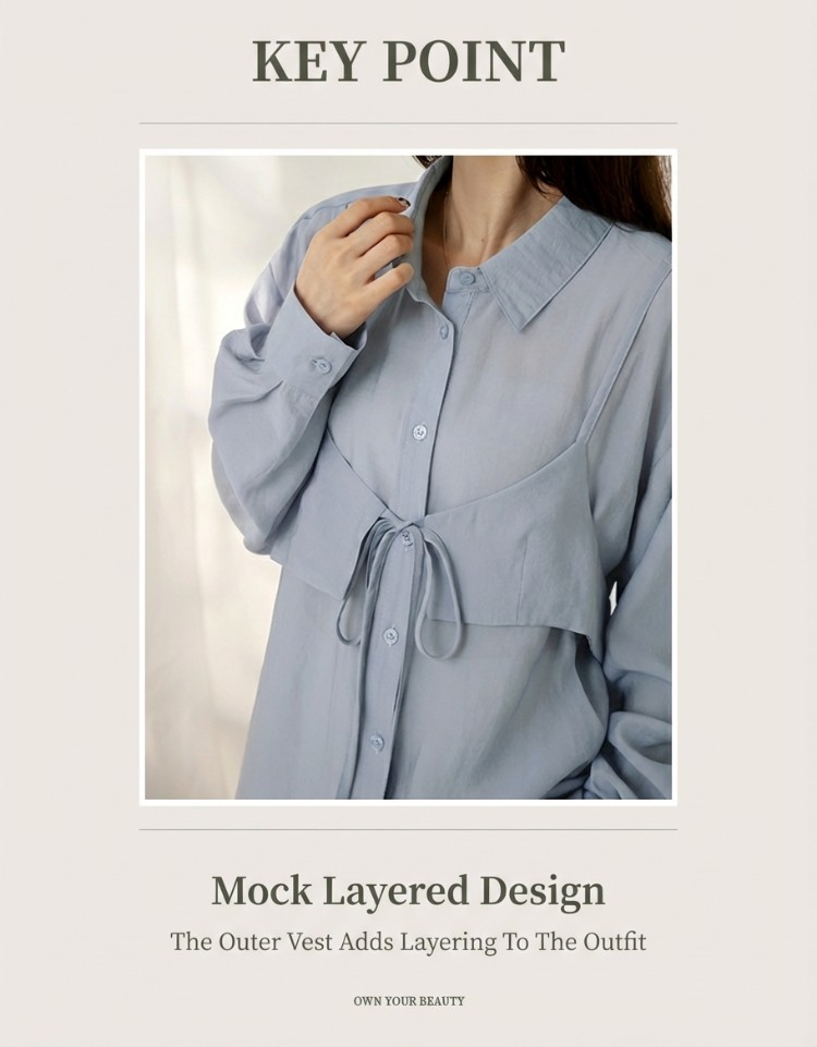 Product Feature: โ Features a subtle sheen with a semi-sheer fabric. โ Designed with a two-piece effect for layered styling. โ Longline cut to flatter the figure. โ Adjustable tie detail.