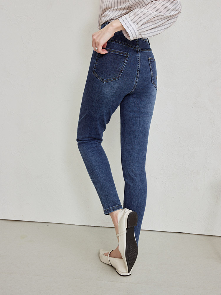 Product Feature: โ Crafted from a stretchy cotton blend for comfort and fit. โ Features classic front and back pockets. โ Stylish stitch detailing on the pockets. โ Designed with a slim fit to elongate your legs.