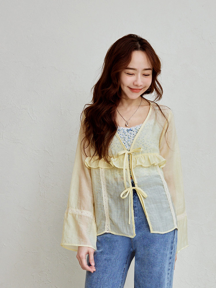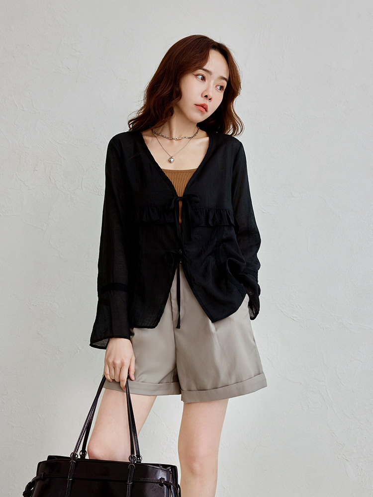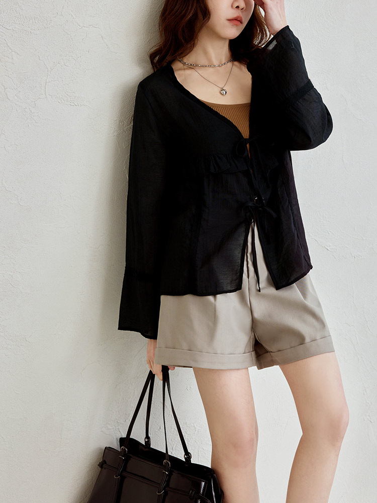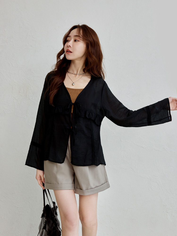 Sheer Ruffle Tie-Front Top (2XL~3XL)