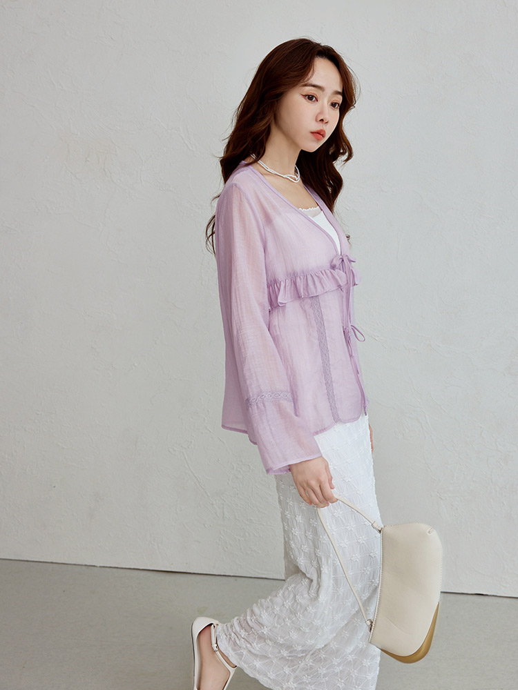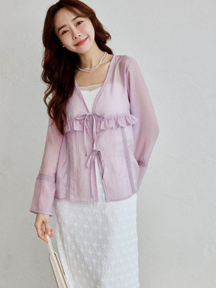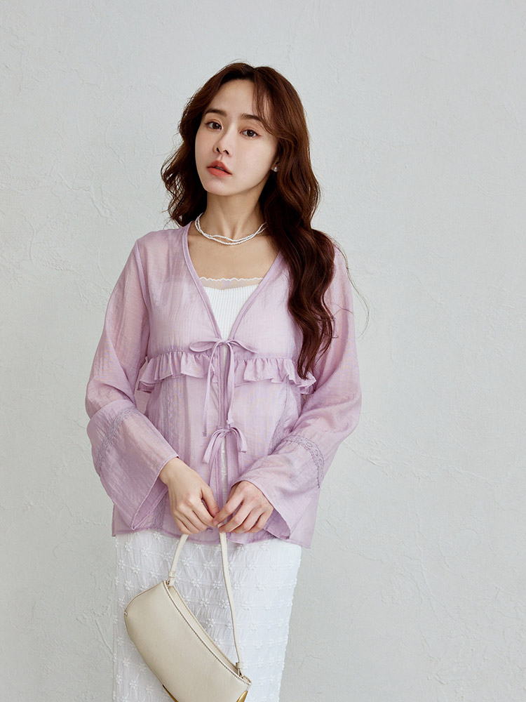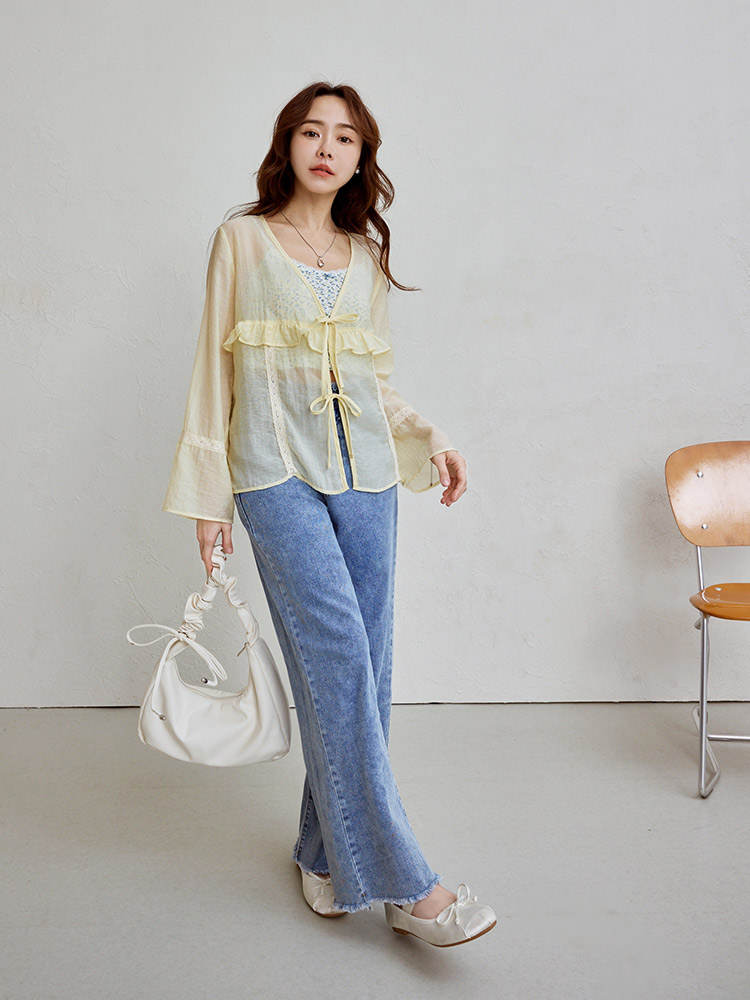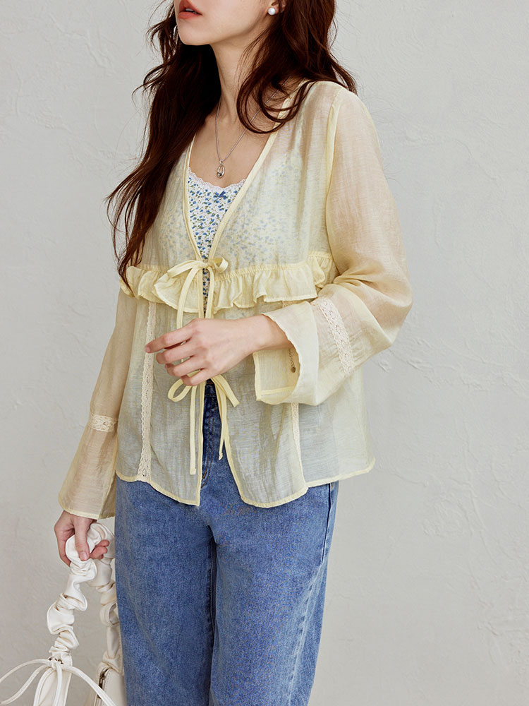 Sheer Ruffle Tie-Front Top (2XL~3XL)