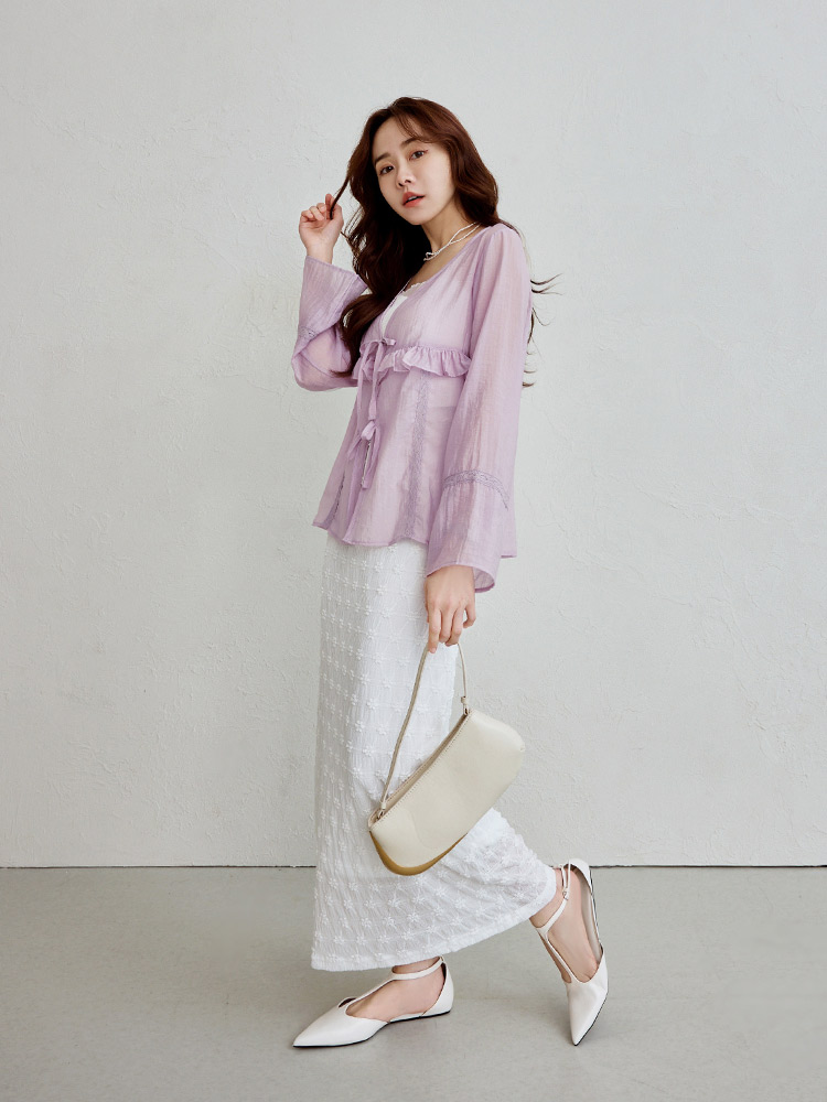 โ—† Features elegant ruffled sleeves.