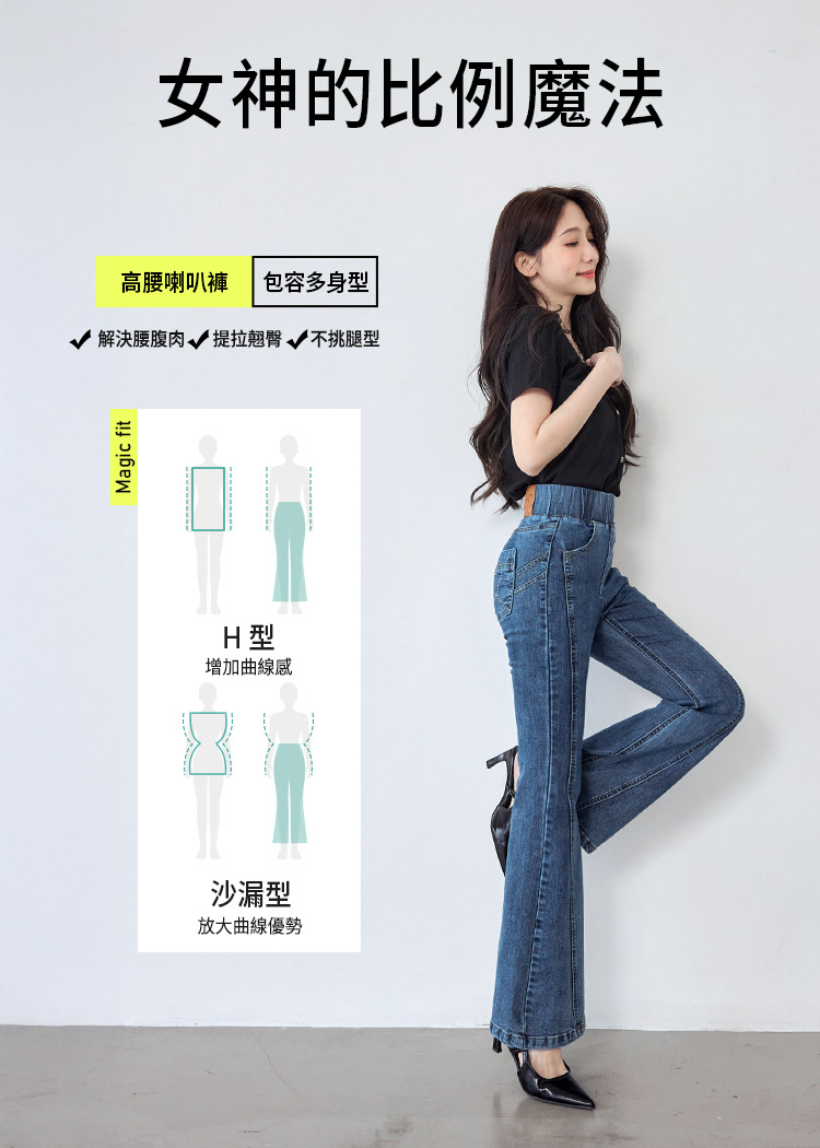 -5KG High-Waist Flare Jeans with Tummy Control (2XL~5XL)