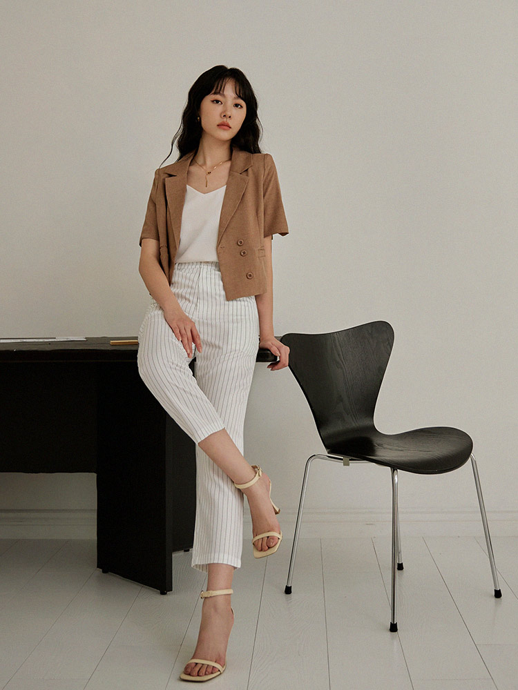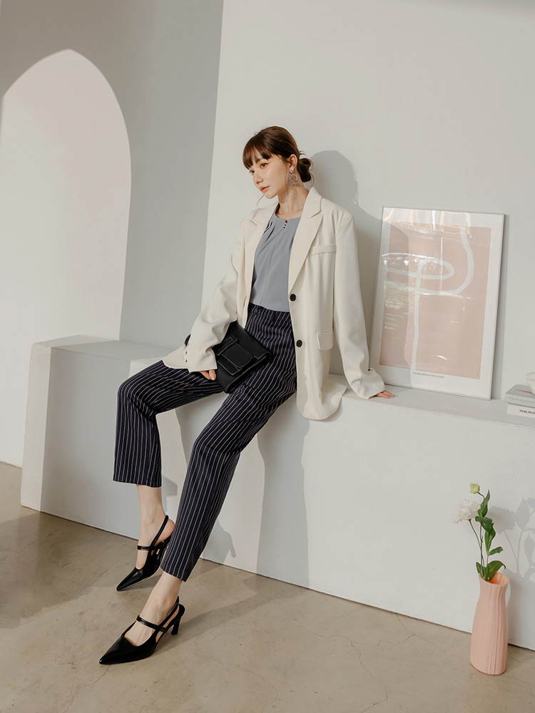 Product Feature: โ Classic striped design for a timeless look โ Features a single-button closure and functional pockets โ Fully lined for added comfort and a smooth fit โ Versatile style, suitable for both formal and casual wear