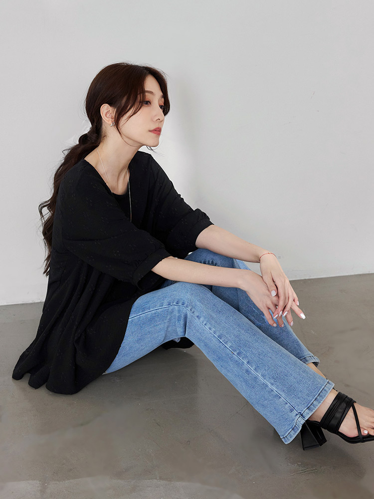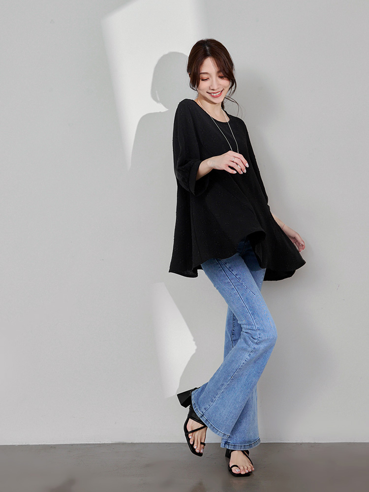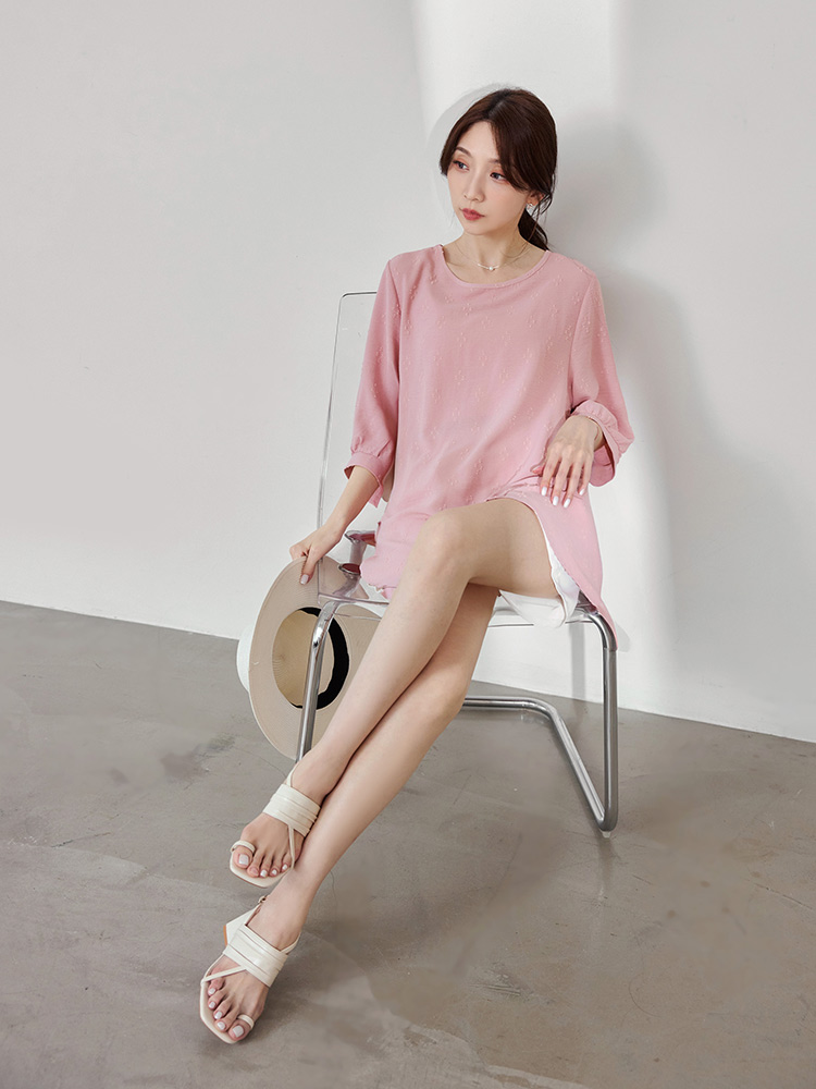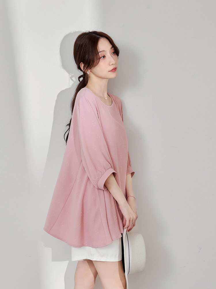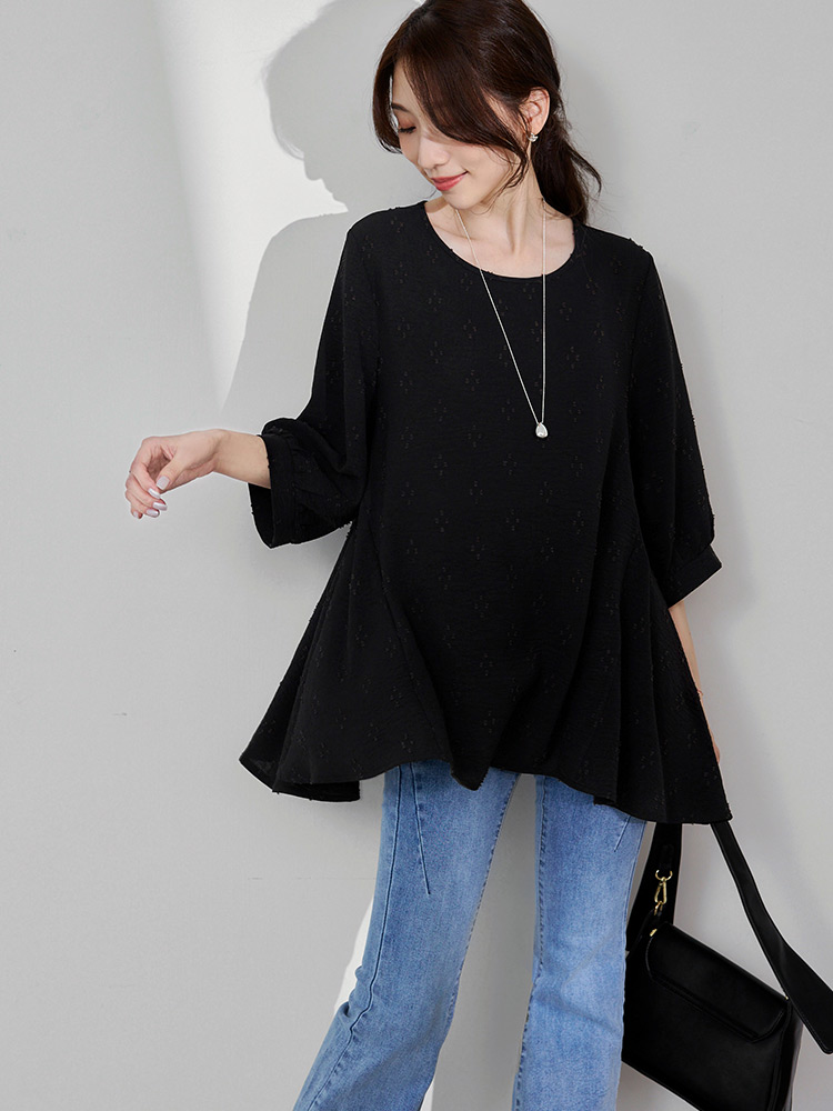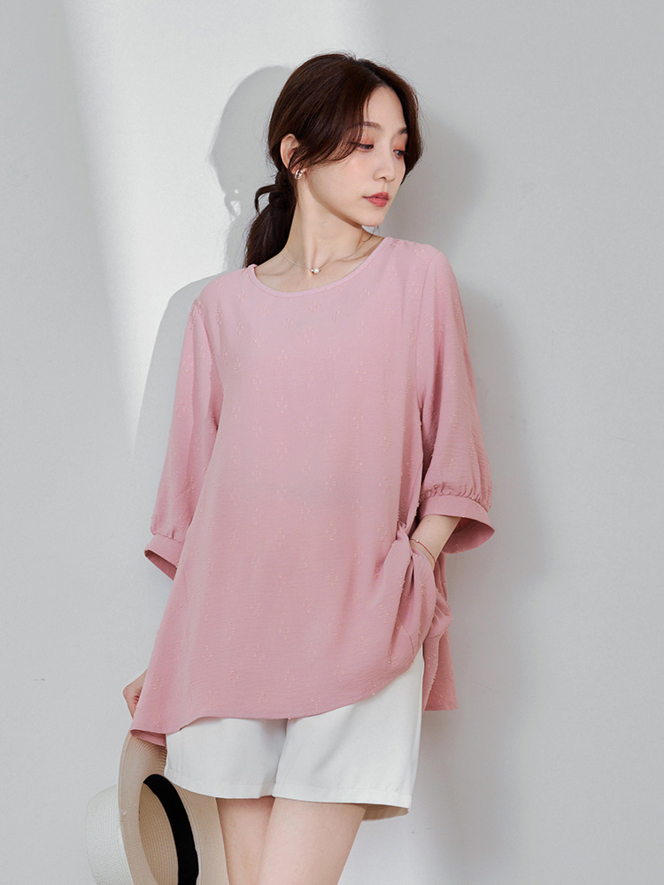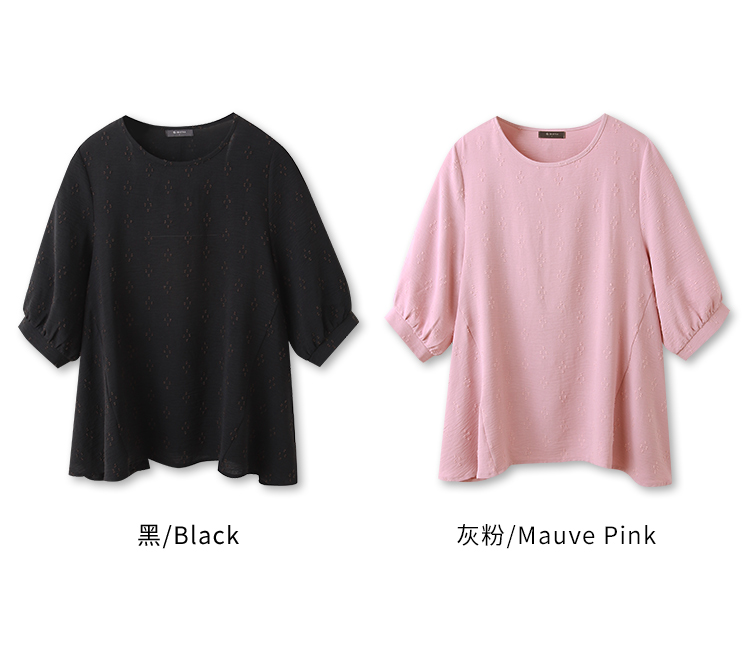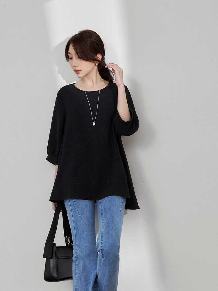 Product Feature: โ Crafted from breathable, easy-care textured fabric. โ Features a unique textured pattern. โ Designed with flattering bubble sleeves. โ Asymmetrical hemline to shape your silhouette.