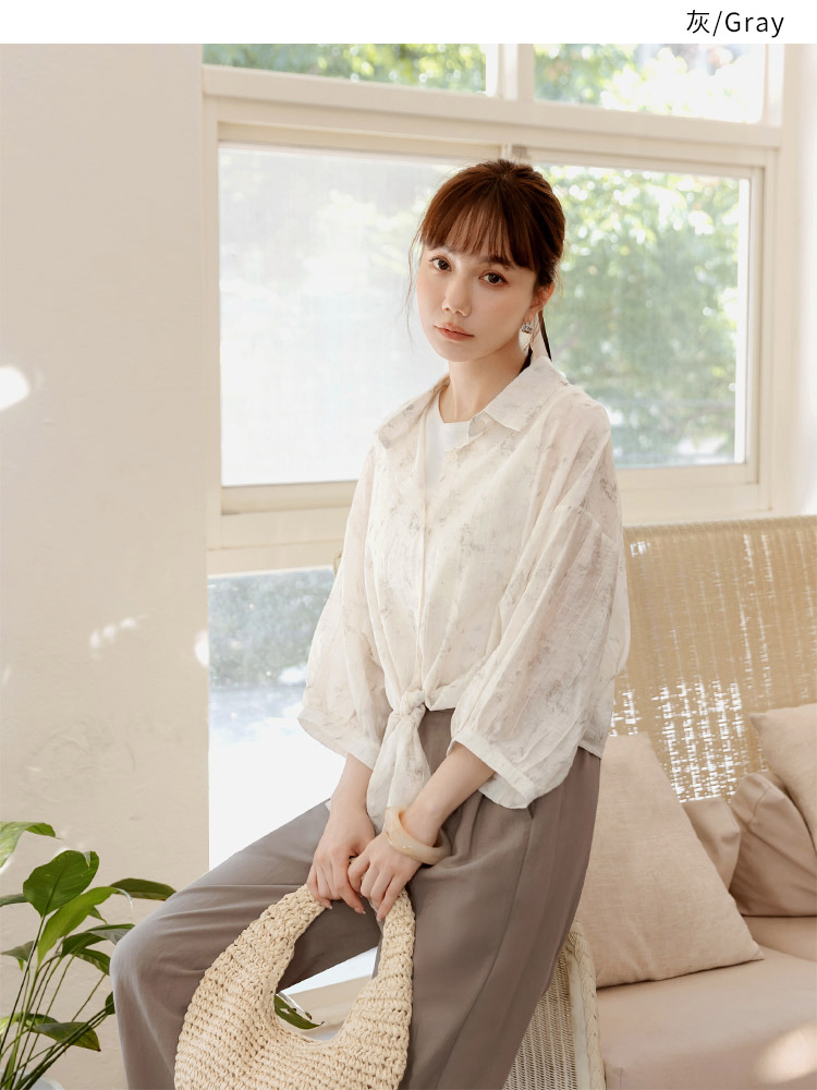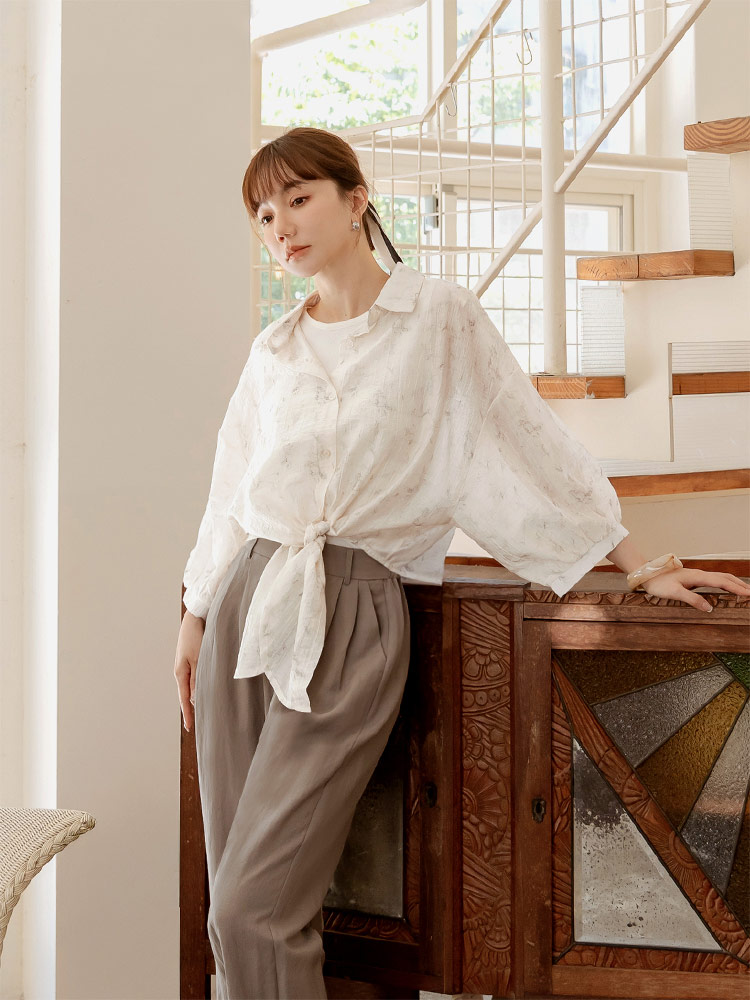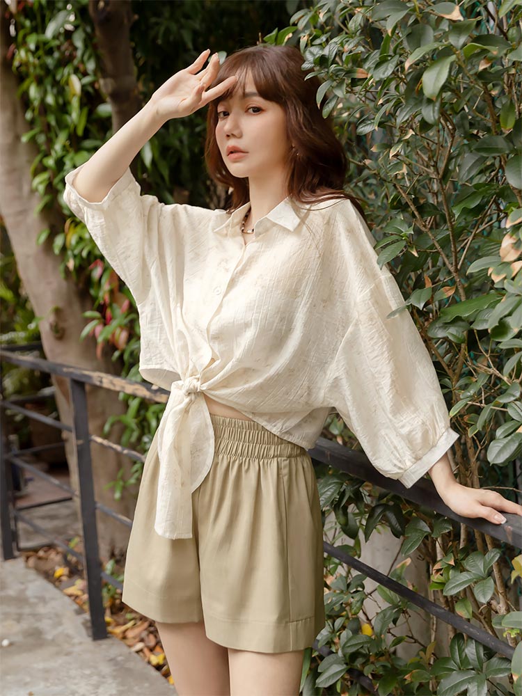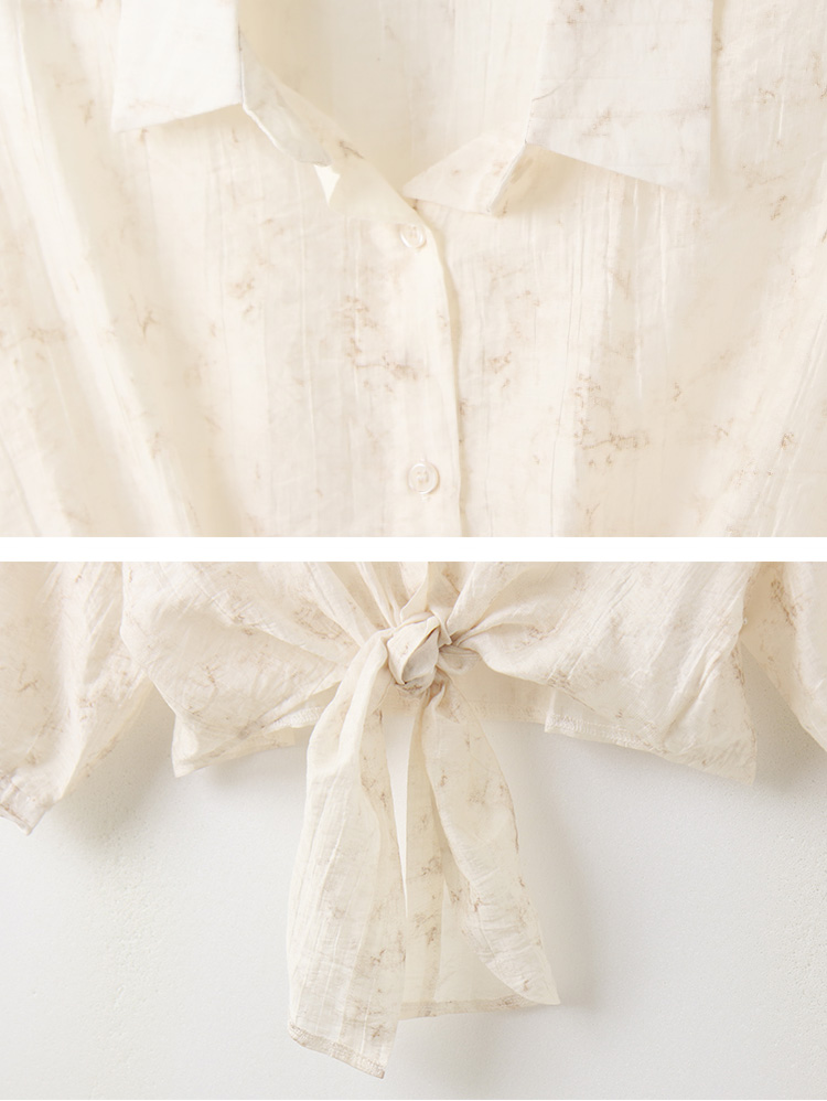 Product Feature: โ Crafted from a subtly textured, lightweight fabric with a semi-sheer finish โ Features a stylish tie-front detail at the hem โ Designed with a flattering cropped length โ Button-up front for versatile styling