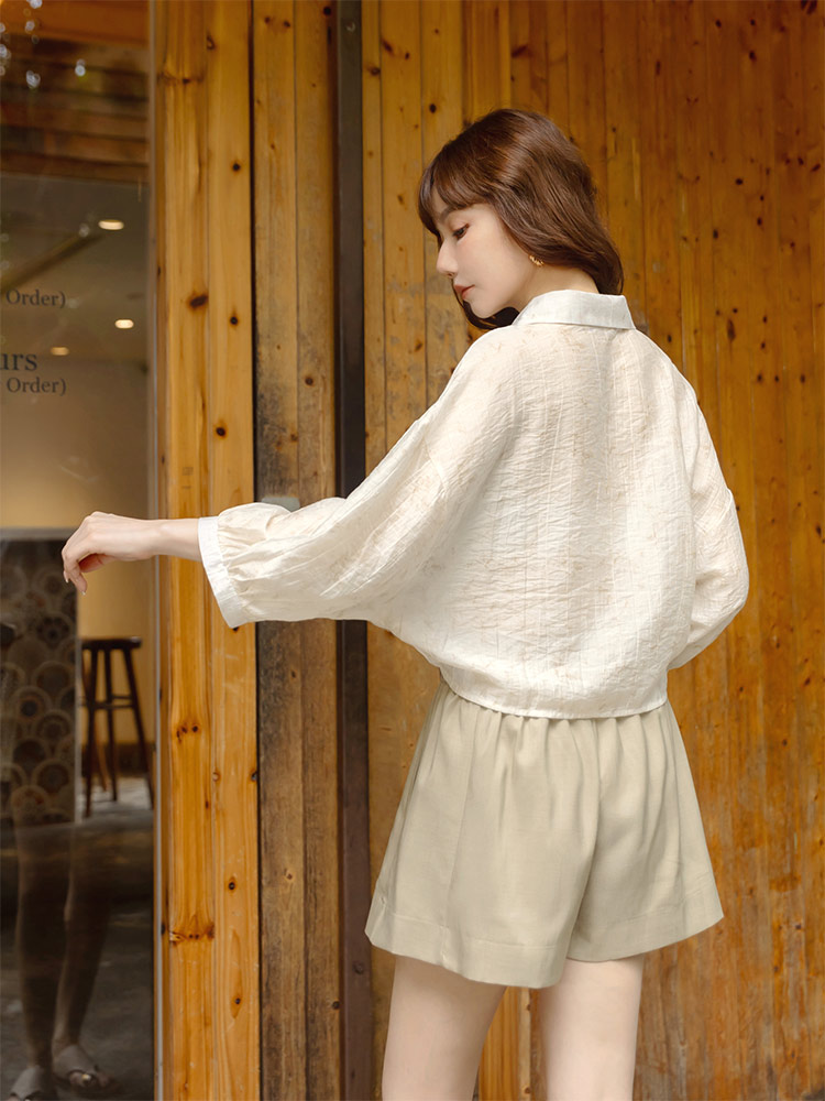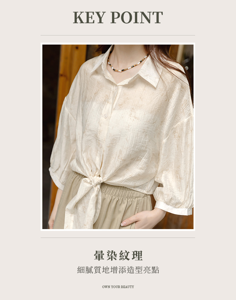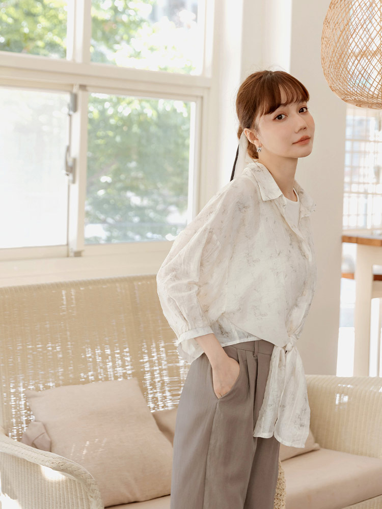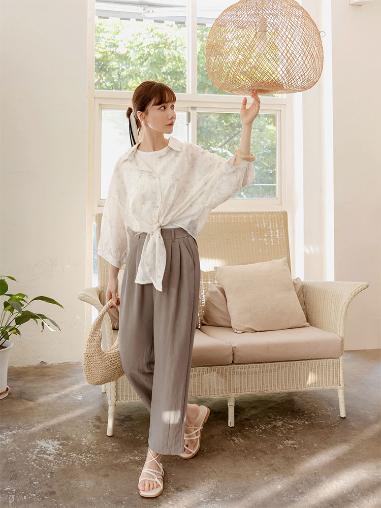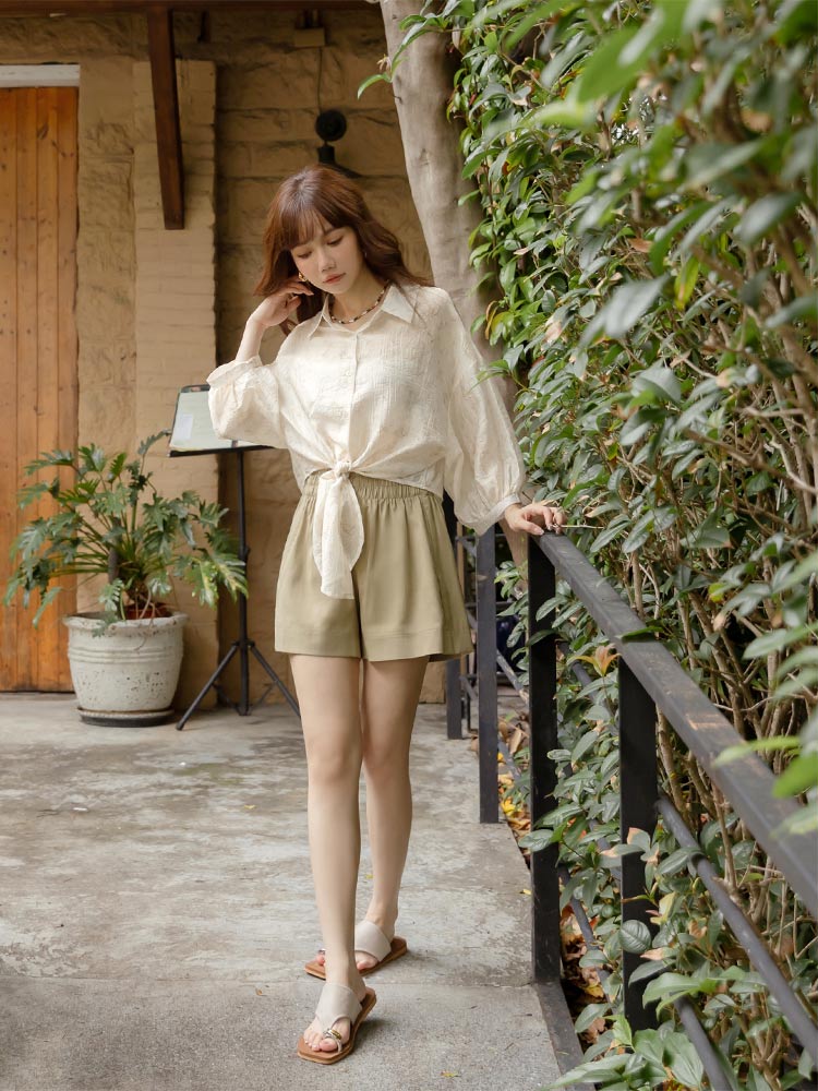 Product Feature: โ Crafted from a subtly textured, lightweight fabric with a semi-sheer finish โ Features a stylish tie-front detail at the hem โ Designed with a flattering cropped length โ Button-up front for versatile styling