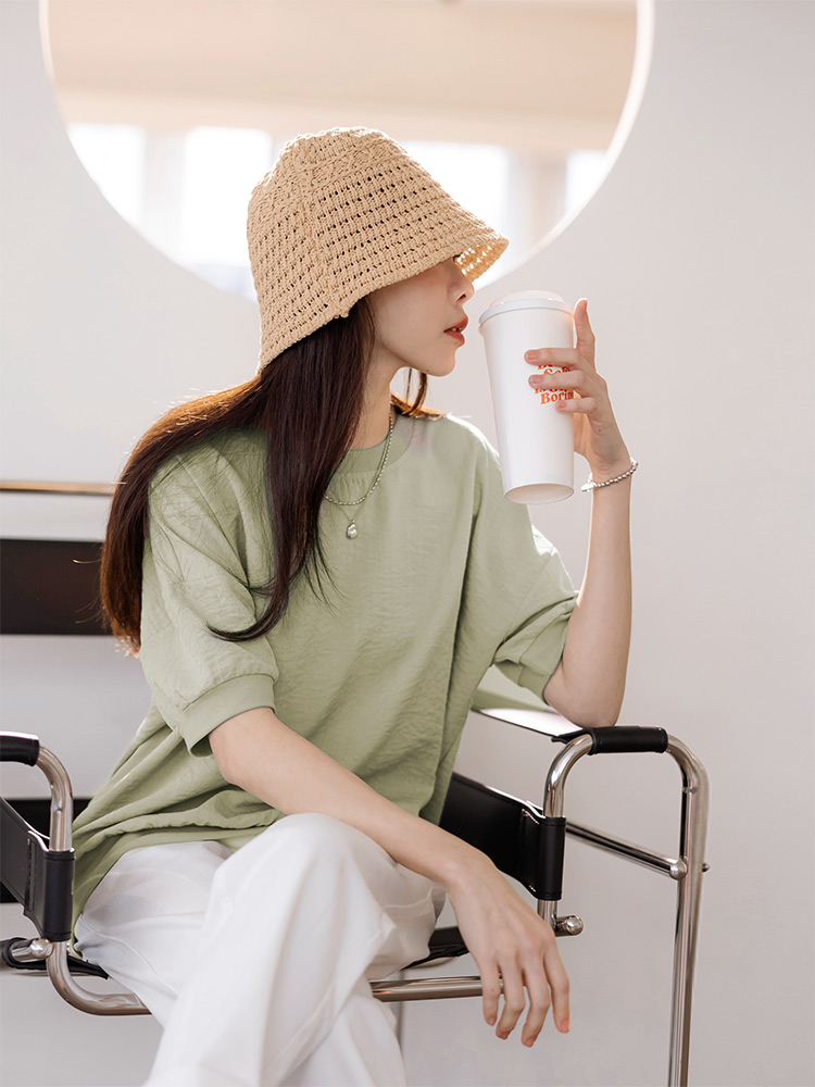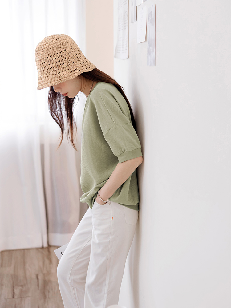 Product Feature: โ Crafted from a blend of rayon, polyester, and nylon โ Features a classic ribbed round neck โ Designed with a relaxed, oversized fit for comfort and ease โ Distinctive sleeve stitching detail