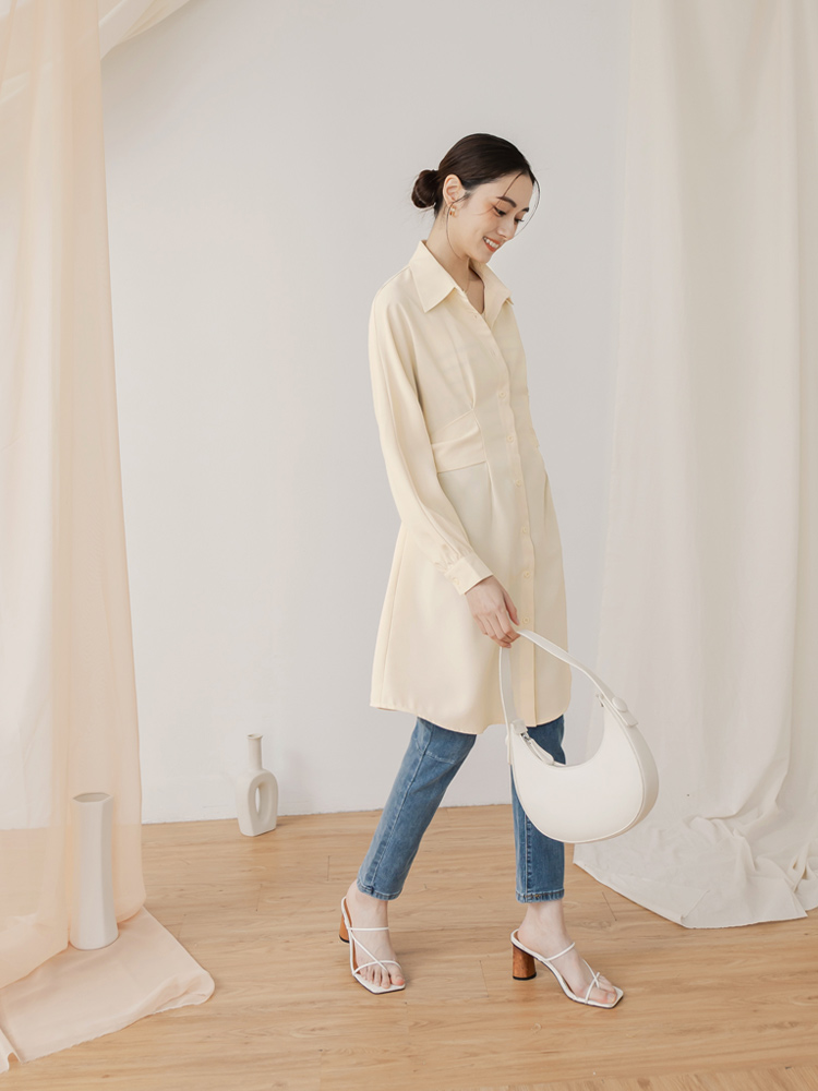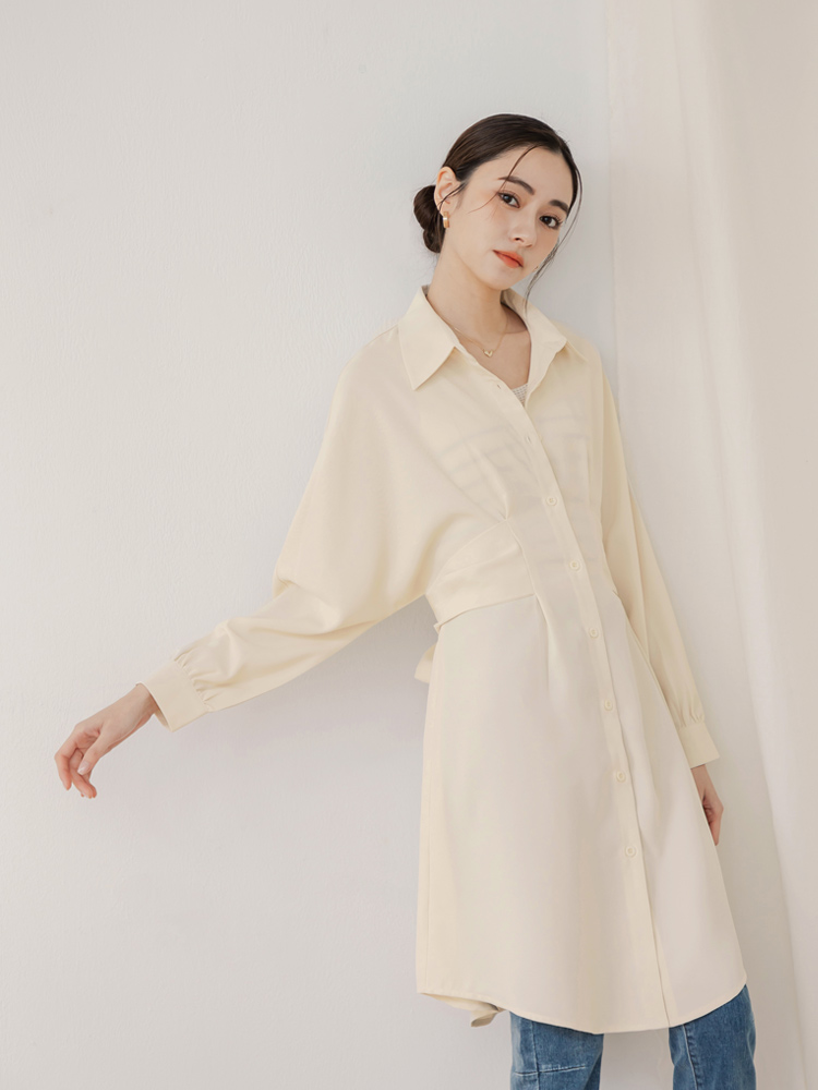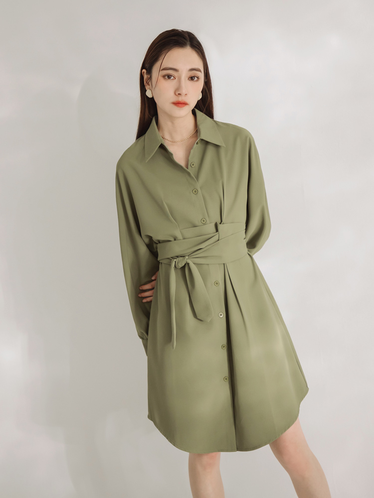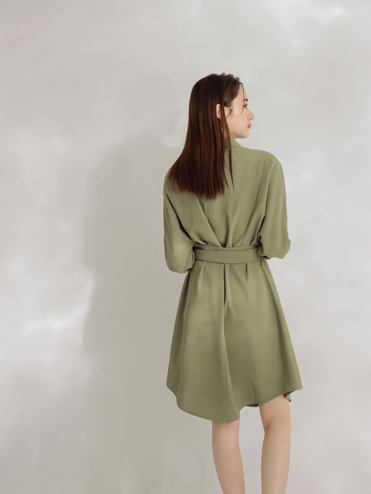 Product Feature: โ Features a flattering waist-cinching tie belt. โ Elegant collared neckline. โ Can be worn alone or layered. โ Designed with buttoned front and sleeves