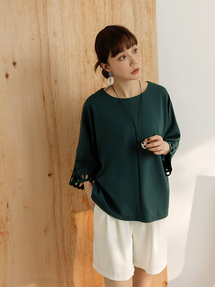 Open-Sleeve Cotton Blend Loose Top