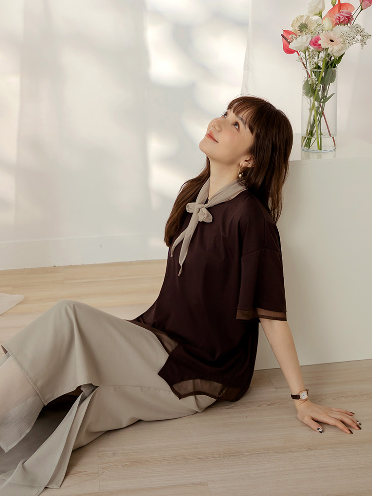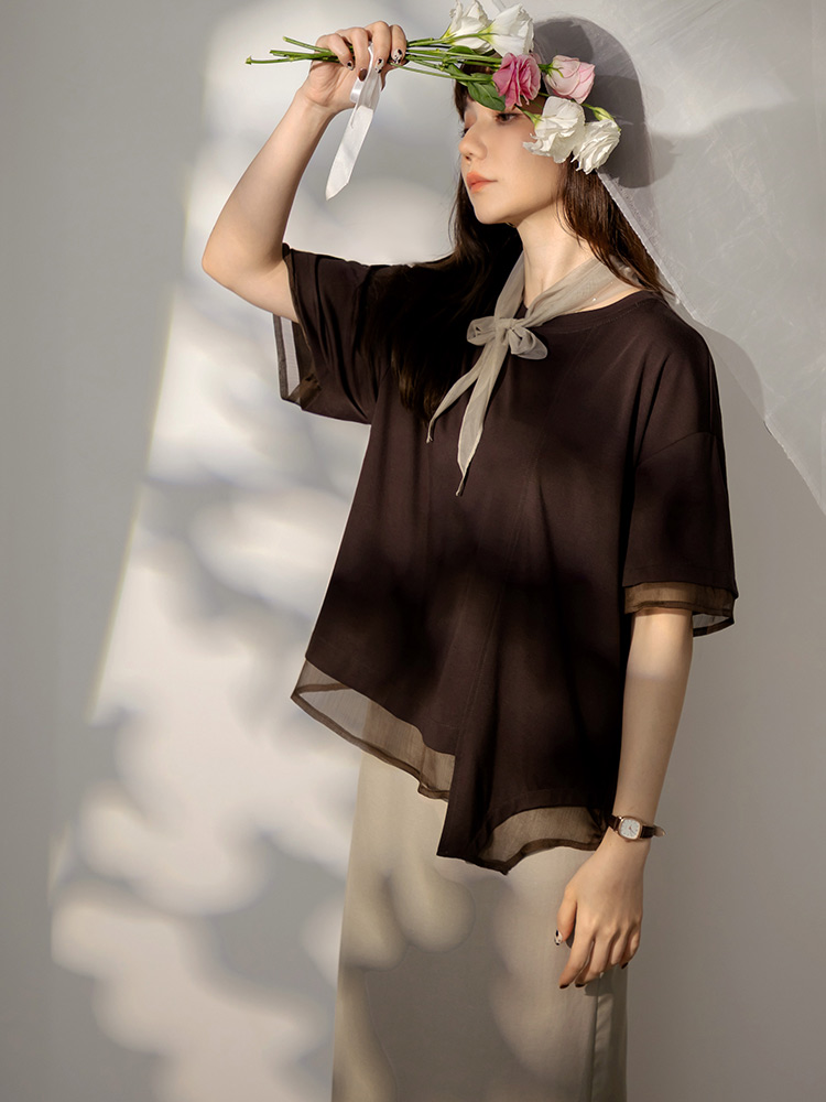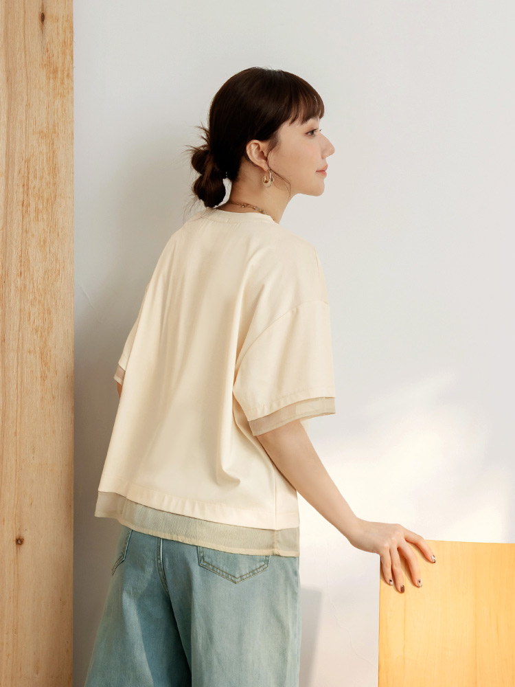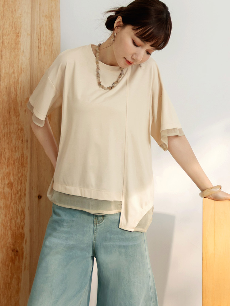 Mesh-Panel Asymmetrical Hem Top (F~3XL)