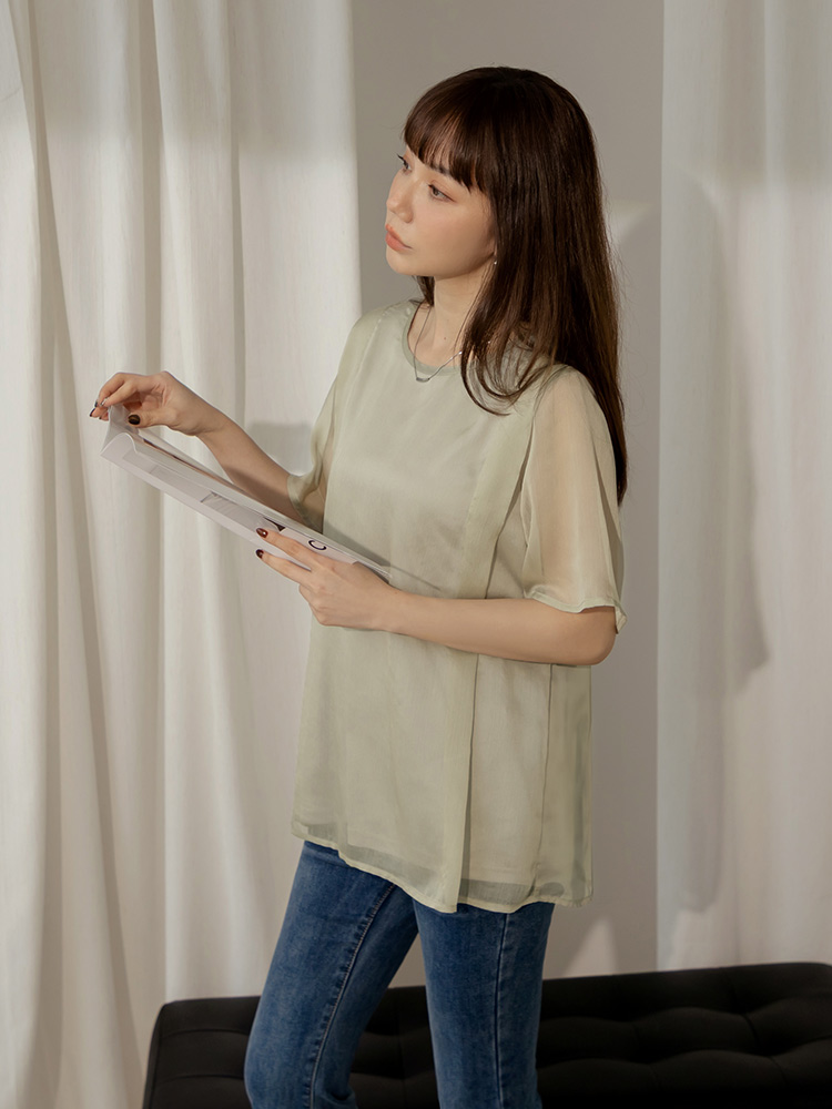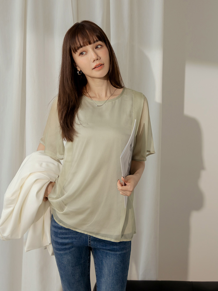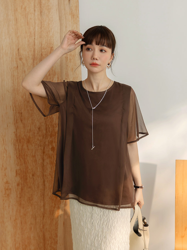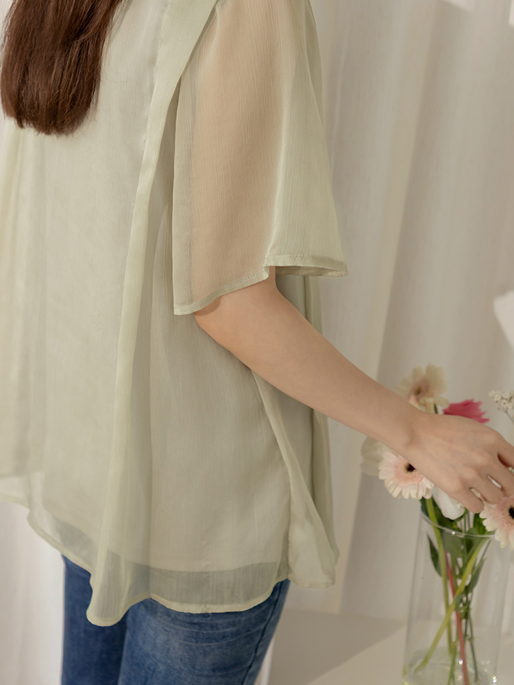 Product Feature: โ Crafted from delicate, textured mesh fabric. โ Features a layered design for an ethereal look. โ Airy, loose sleeves for comfortable movement. โ Includes an inner lining for added coverage.