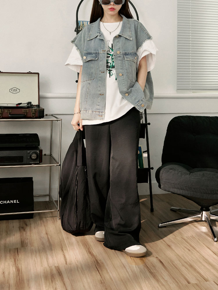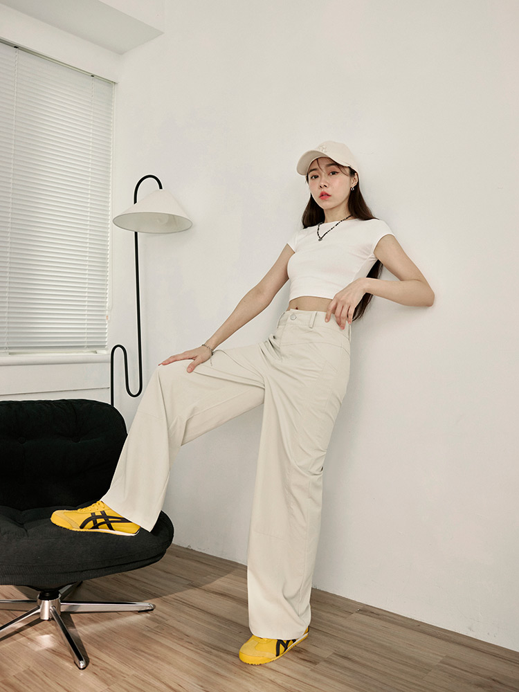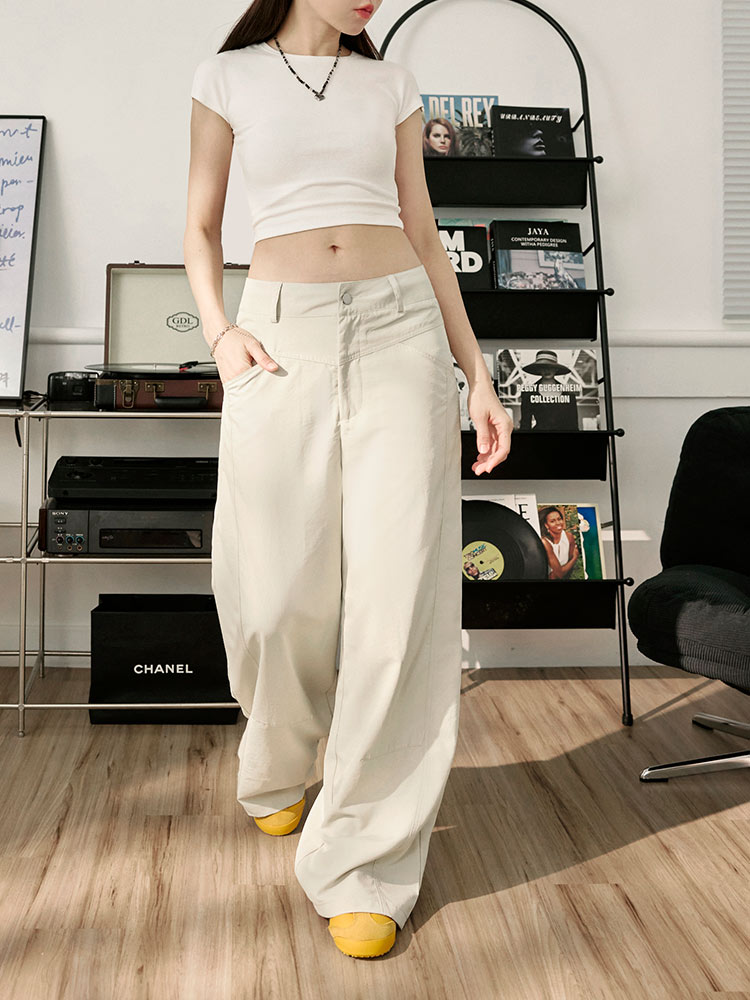Product Feature: โ Crafted from soft, skin-friendly fabric for all-day comfort โ Classic wide-leg cut for a flattering silhouette โ Features a front V-line design that creates a slimming effect โ Designed with functional front and back pockets, and a zip and button closure