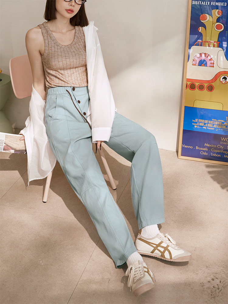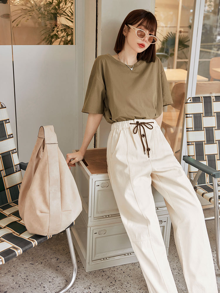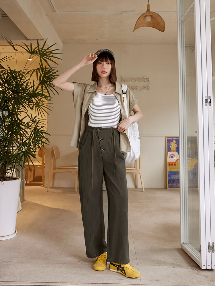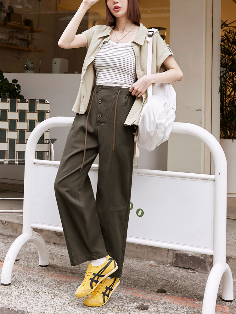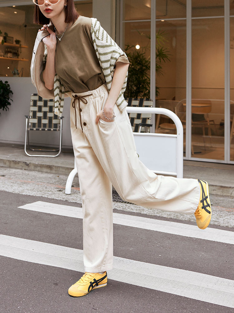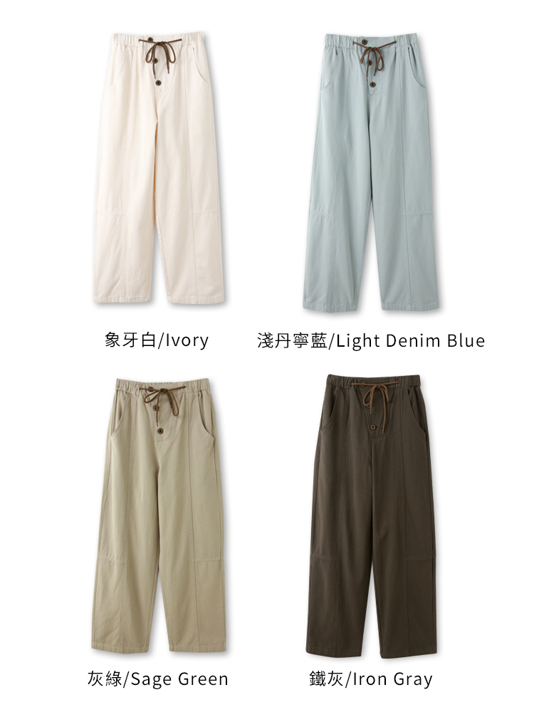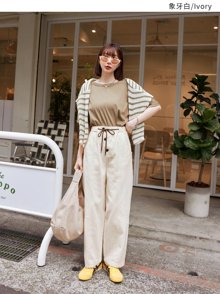 Product Feature: โ Crafted from soft, breathable cotton โ Features a comfortable elasticated waistband with adjustable drawstring โ Designed with functional pockets โ Flattering wide-leg fit for a relaxed silhouette