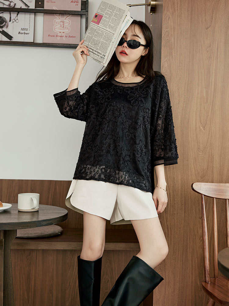 Product Feature: โ Crafted from delicate, textured lace โ Features a subtle, sheer design for layered looks โ Comfortable, loose fit that flatters all figures โ Includes a full lining