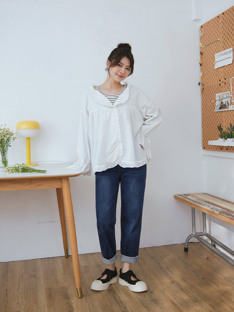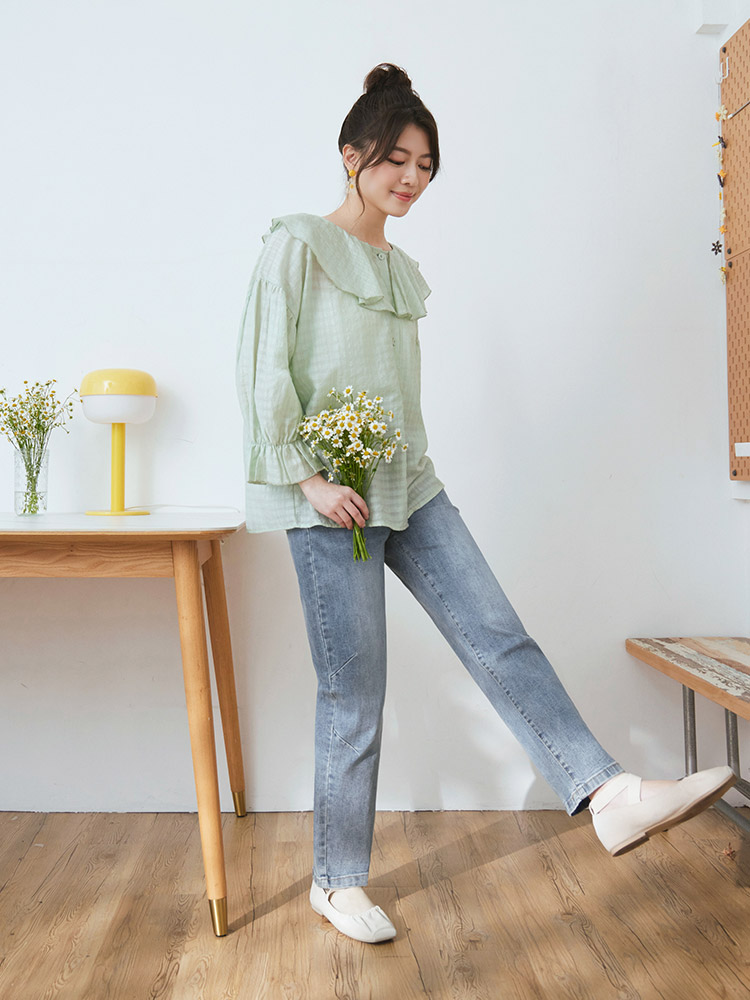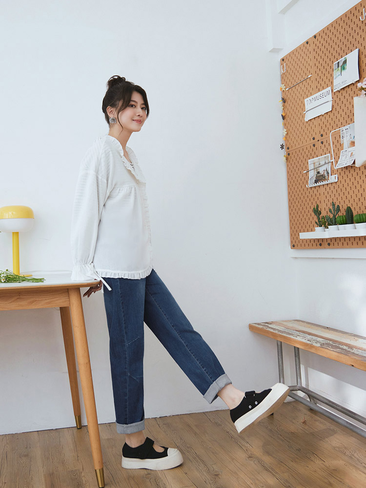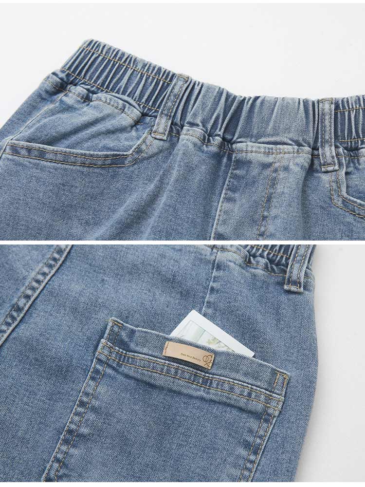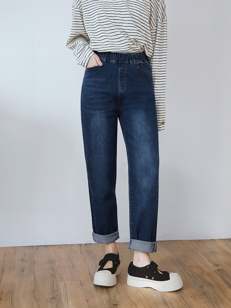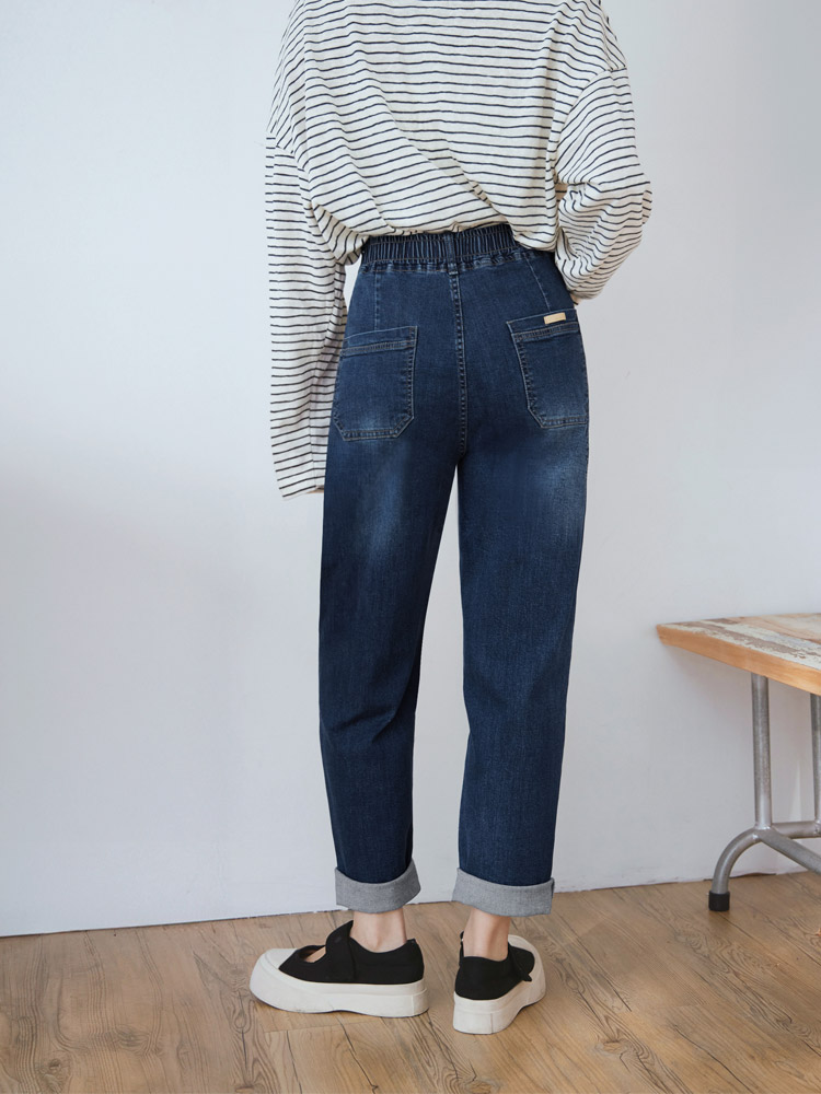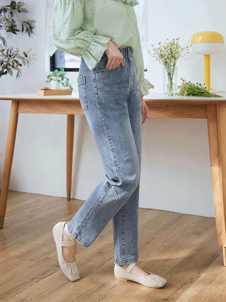 Product Feature: โ Crafted from soft, stretchy denim. โ Features an elasticated waistband for a comfortable fit. โ Stylish washed effect for a casual look. โ Designed with a straight-leg cut to flatter the figure.