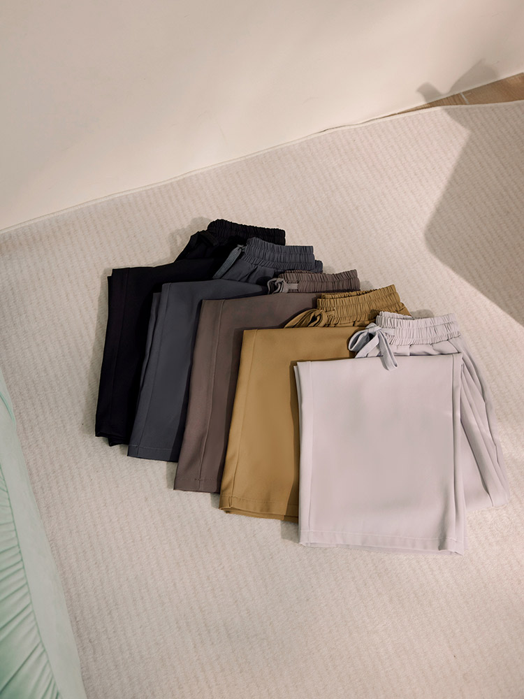 Product Feature: โ Crafted from a wrinkle-resistant fabric for easy care. โ Features a comfortable, elasticated waistband with an adjustable drawstring. โ Designed with functional side pockets. โ Relaxed, straight-leg cut for a flattering silhouette.
