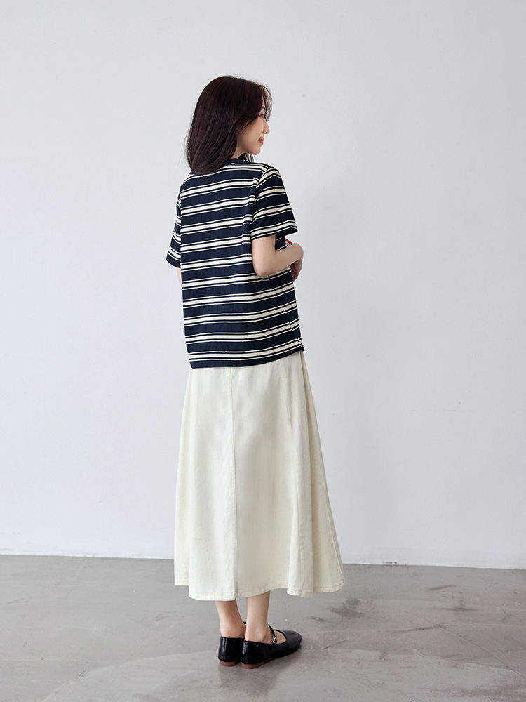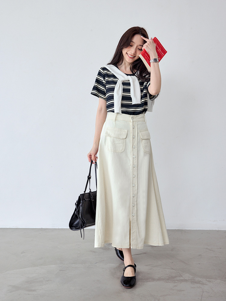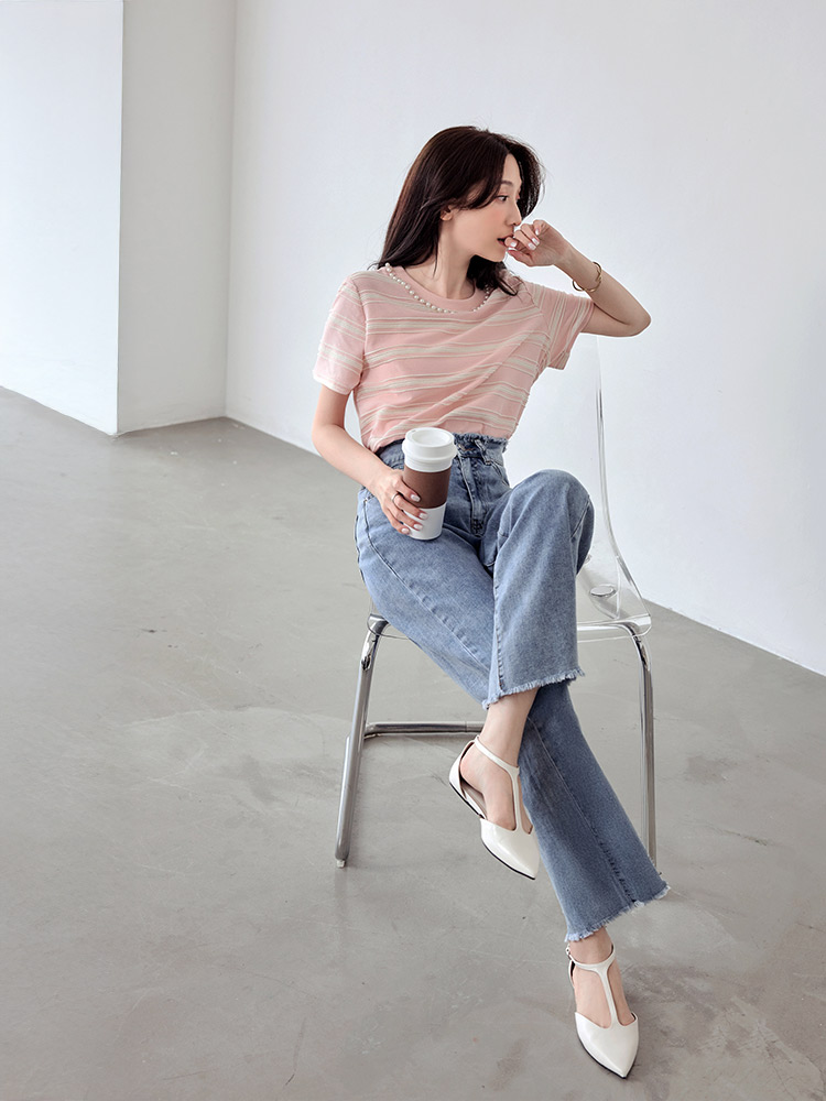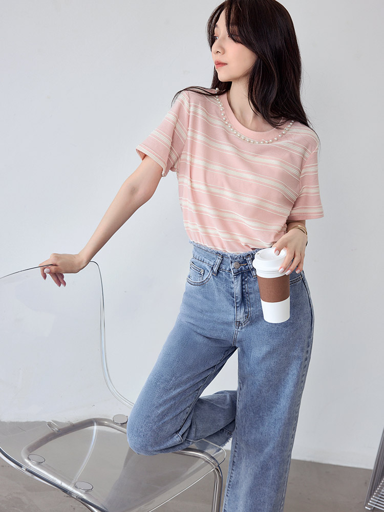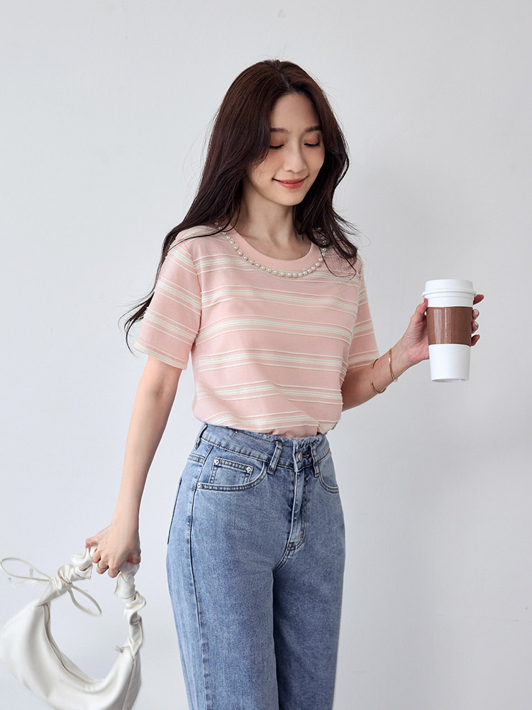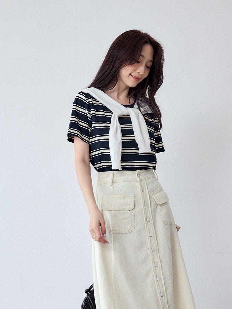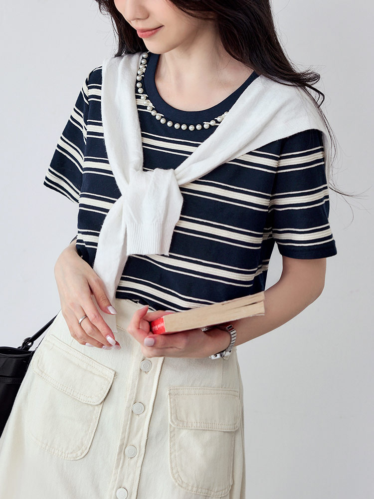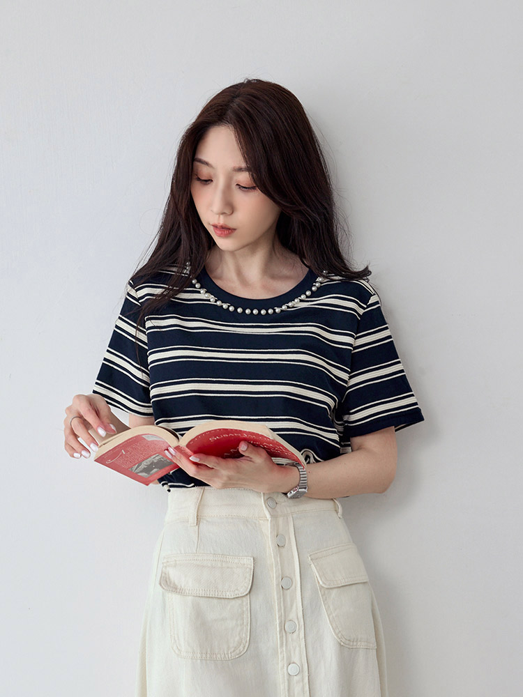Product Feature: โ Crafted from breathable cotton with a unique textured weave. โ Features a chic colour-block design. โ Elegant pearl trim neckline adds a touch of sophistication.